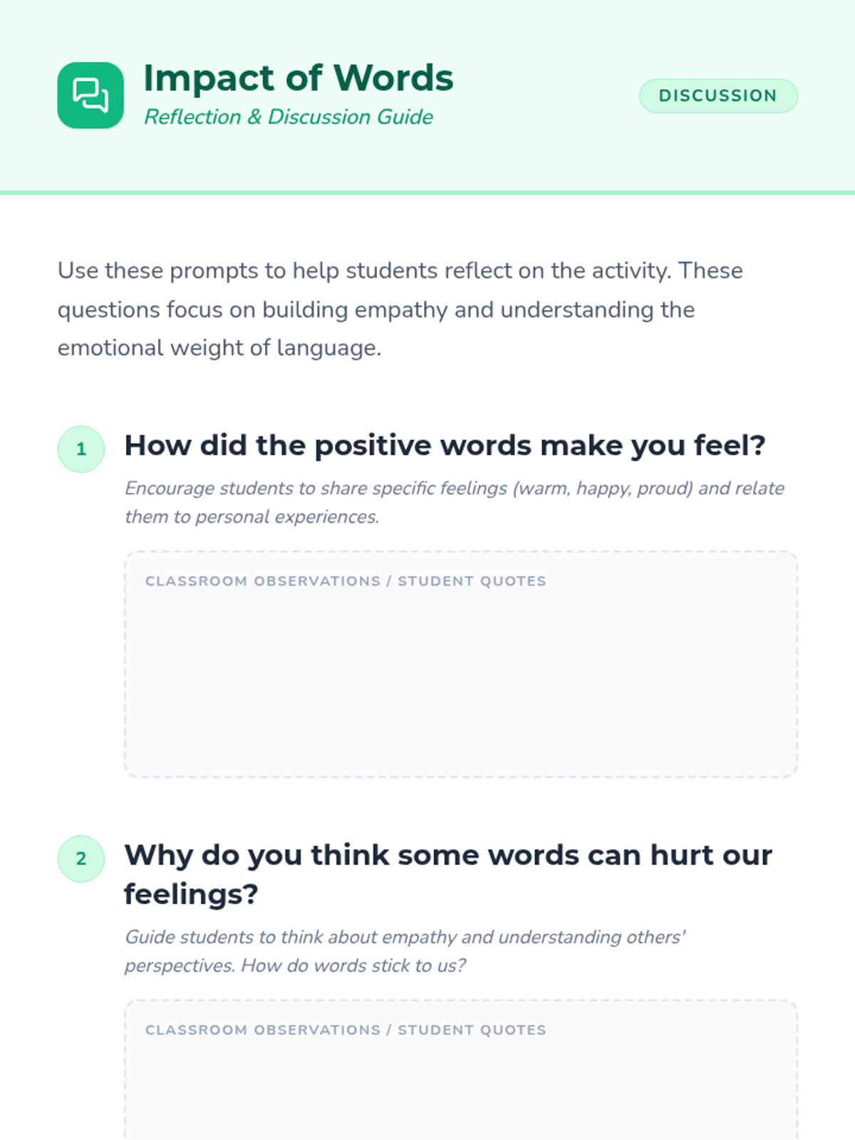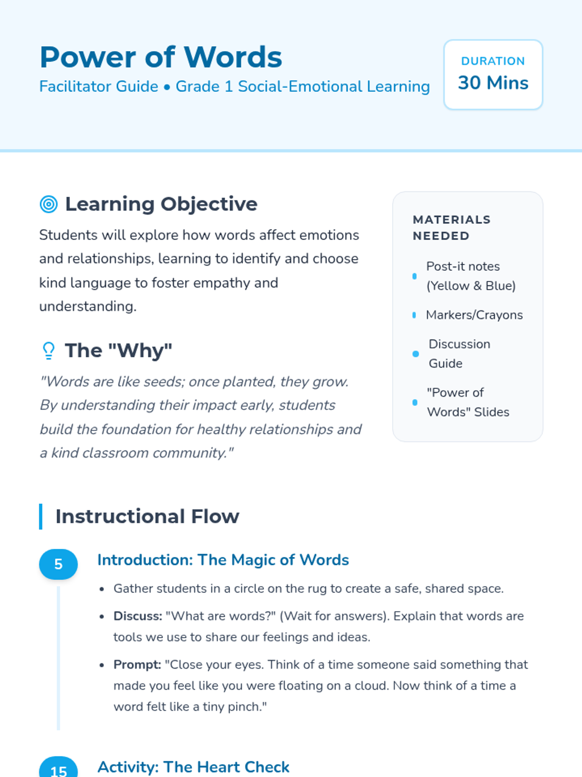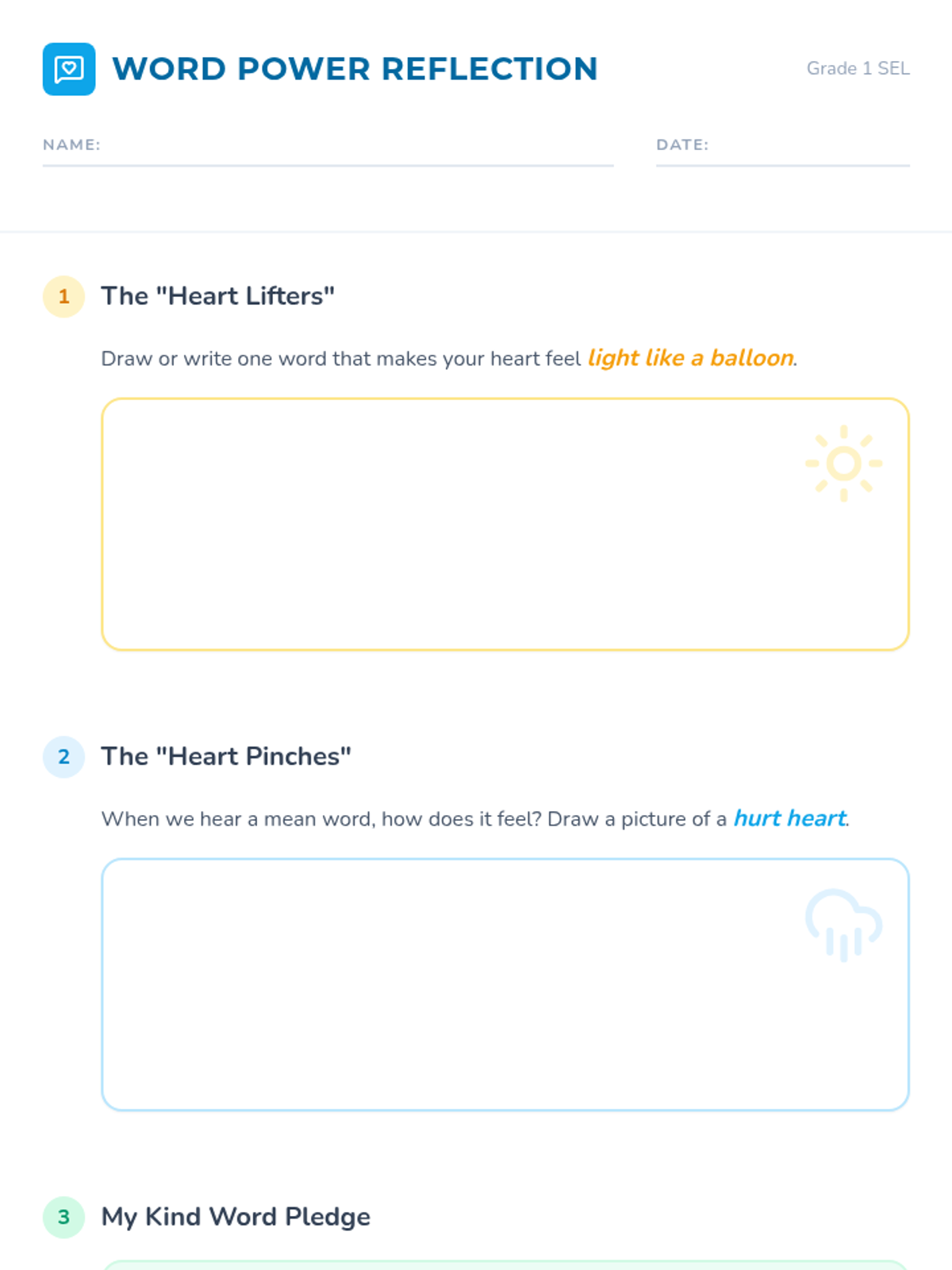 A social-emotional learning lesson for 1st graders to understand the emotional impact of their words and practice using kind language.