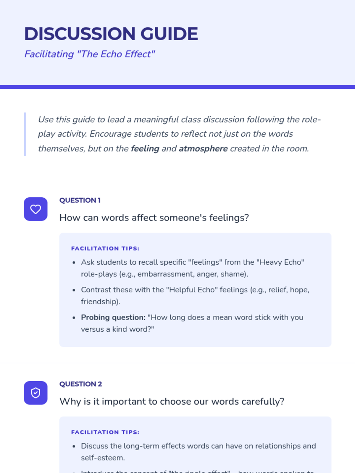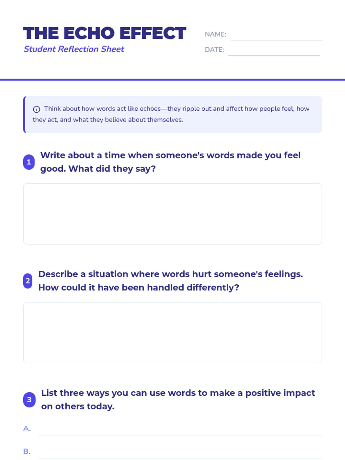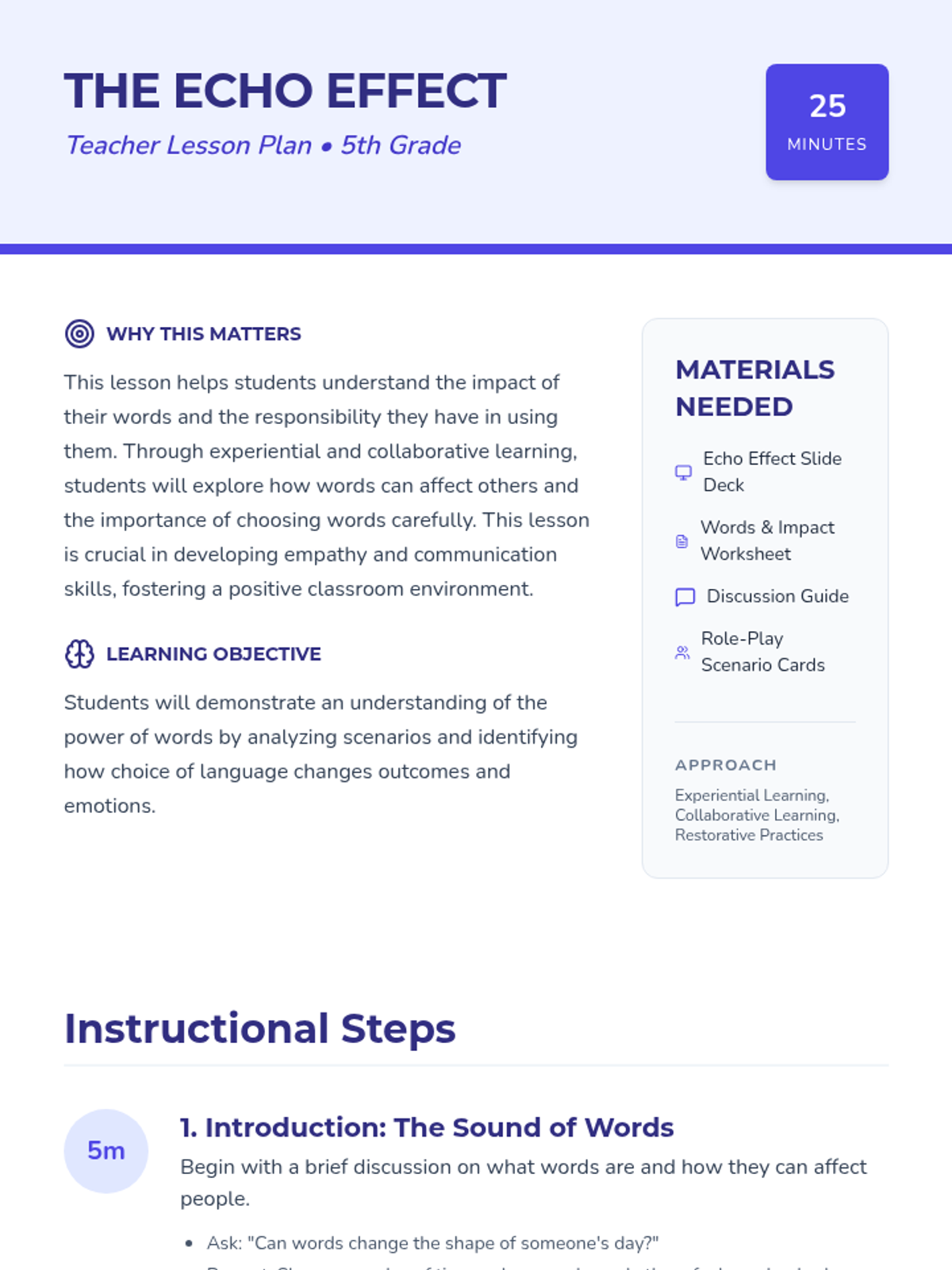 A 25-minute experiential lesson for 5th graders on the impact of their words, using role-play and reflection to foster empathy and responsible communication.