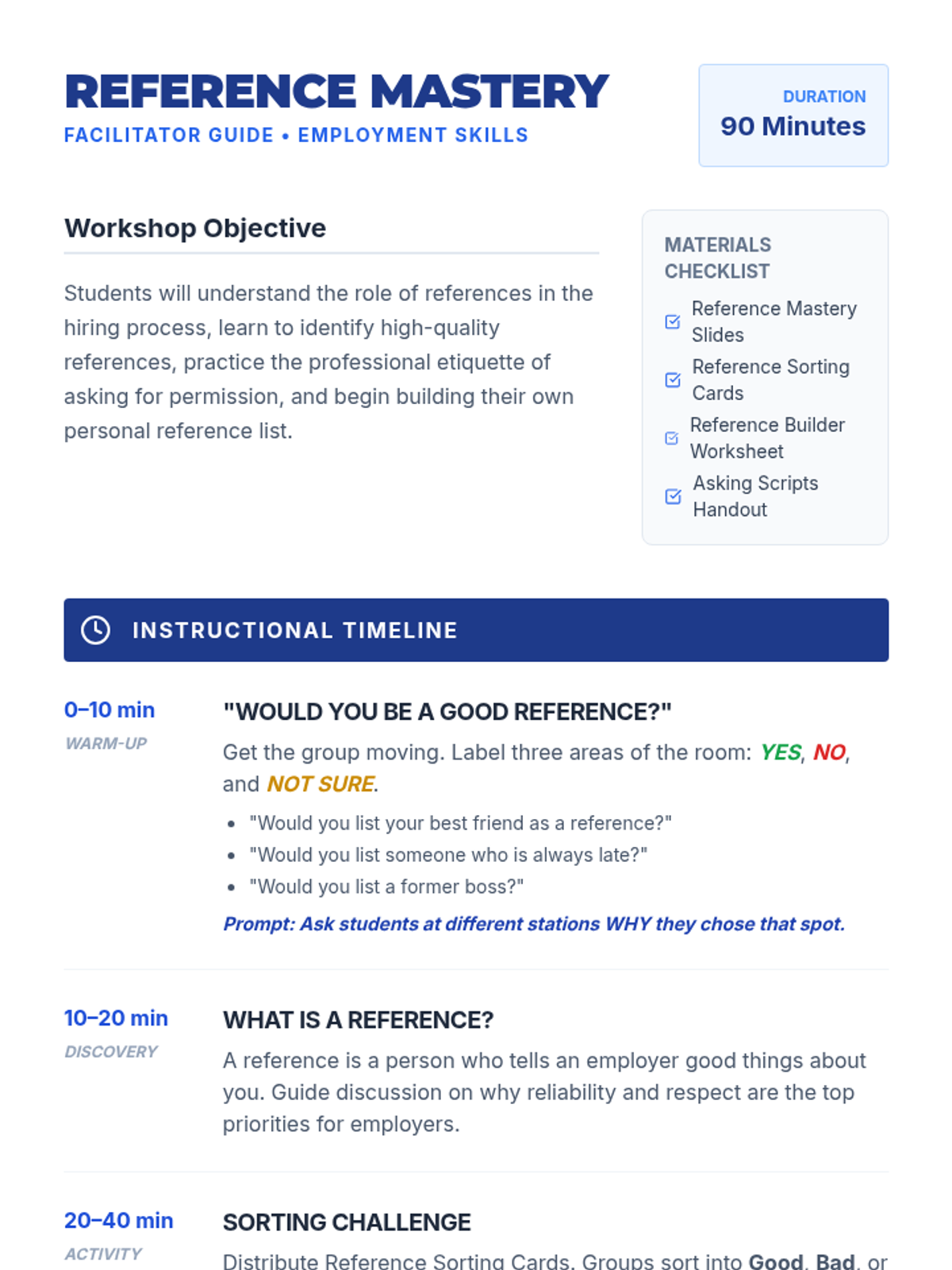 A comprehensive 90-minute workshop on understanding, selecting, and asking for professional references to secure employment.