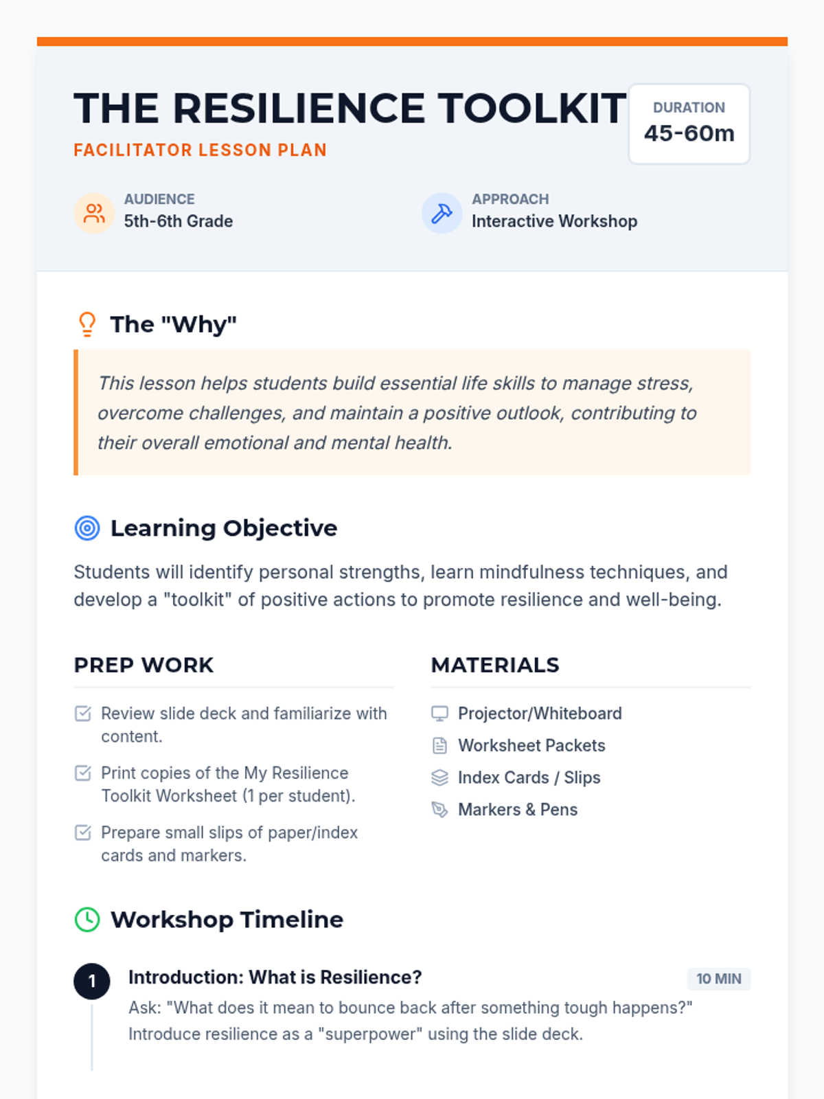 This lesson for 5th-6th graders equips students with practical coping strategies to navigate challenges and setbacks using a 'toolkit' metaphor.