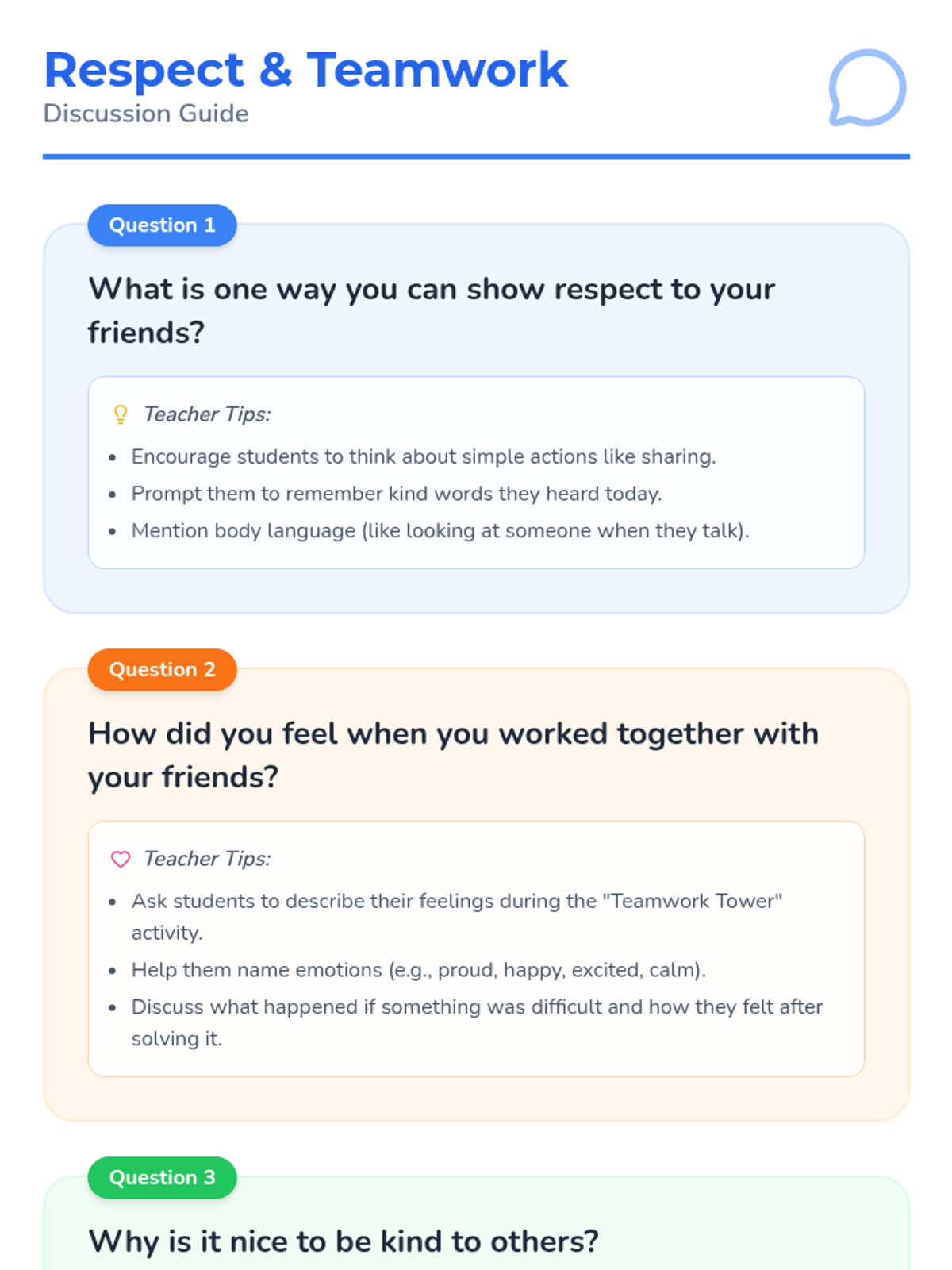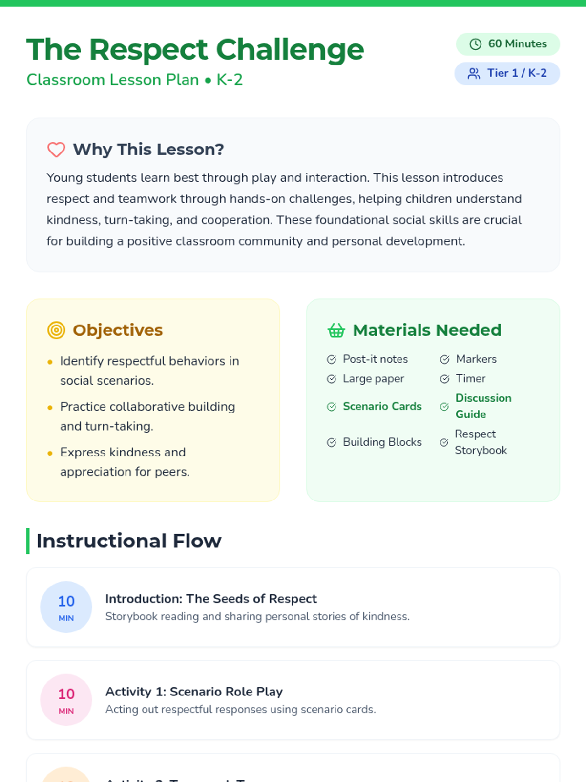 A fun, interactive lesson for K-2 students to learn about respect and teamwork through play, stories, and collaborative challenges.