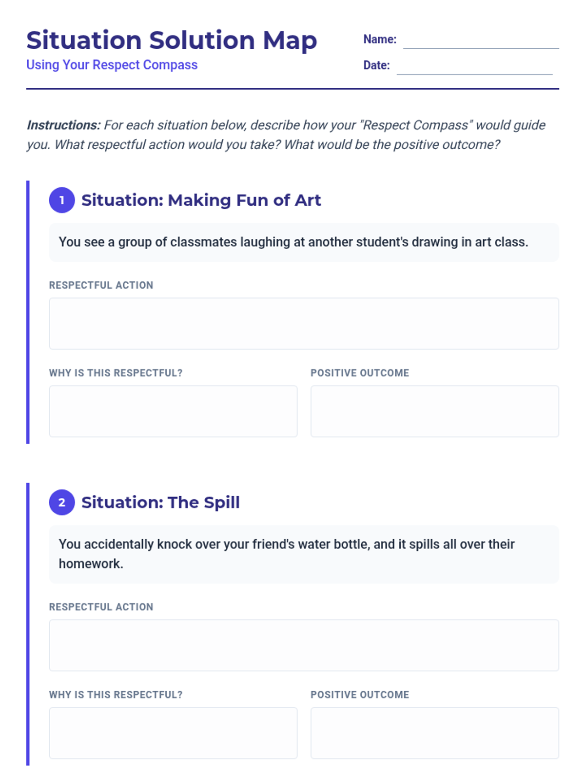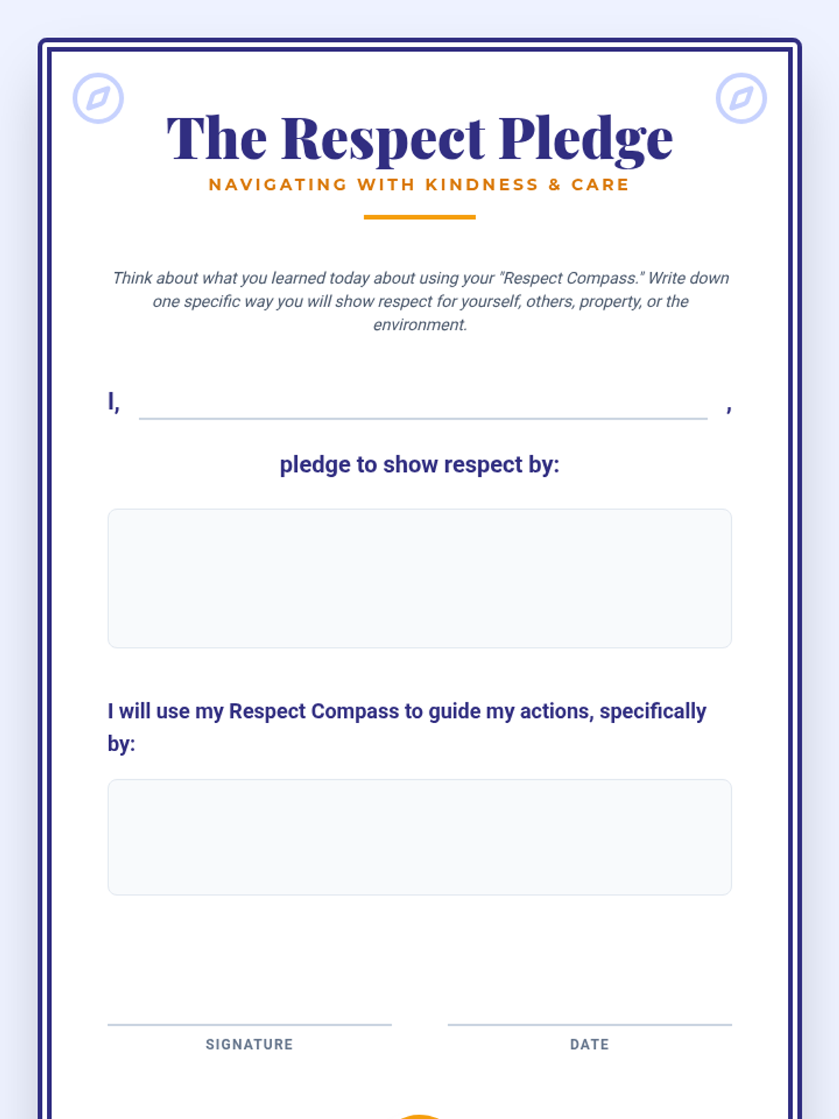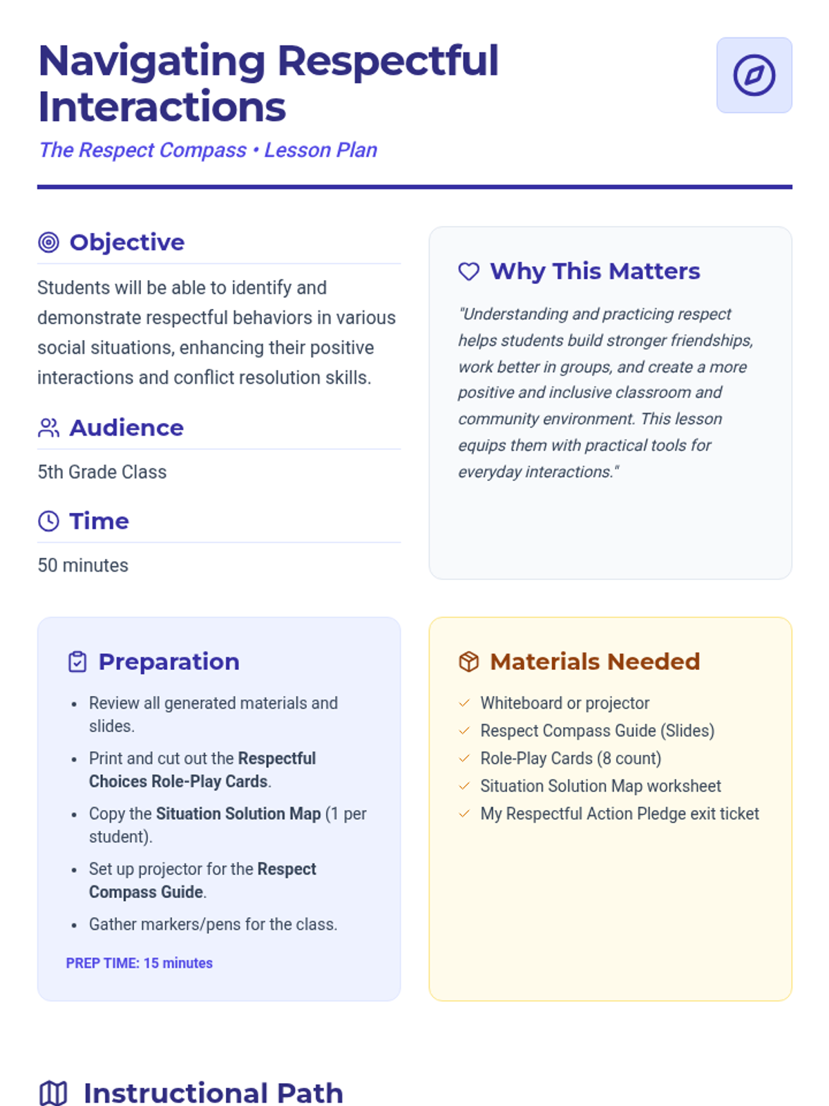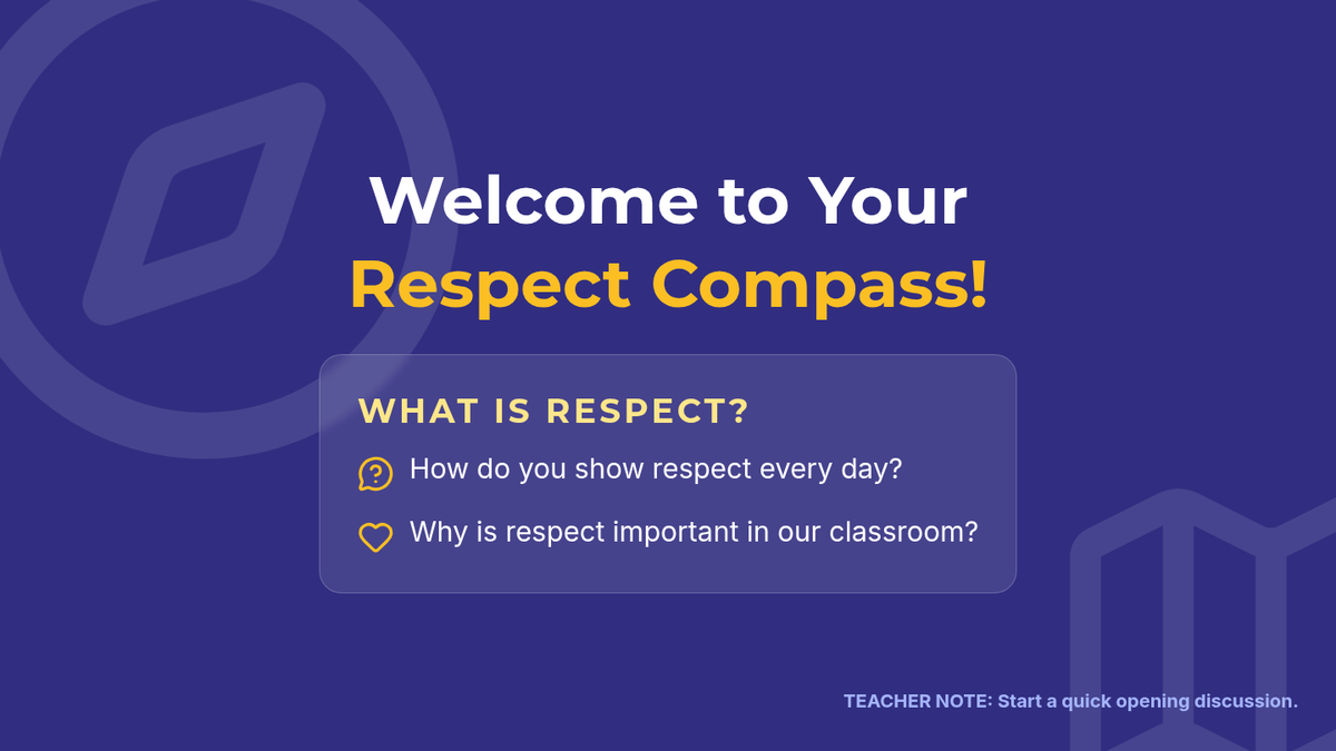 A comprehensive 5th-grade lesson that uses a 'Respect Compass' metaphor to teach students how to navigate social situations with respect for self, others, property, and the environment.