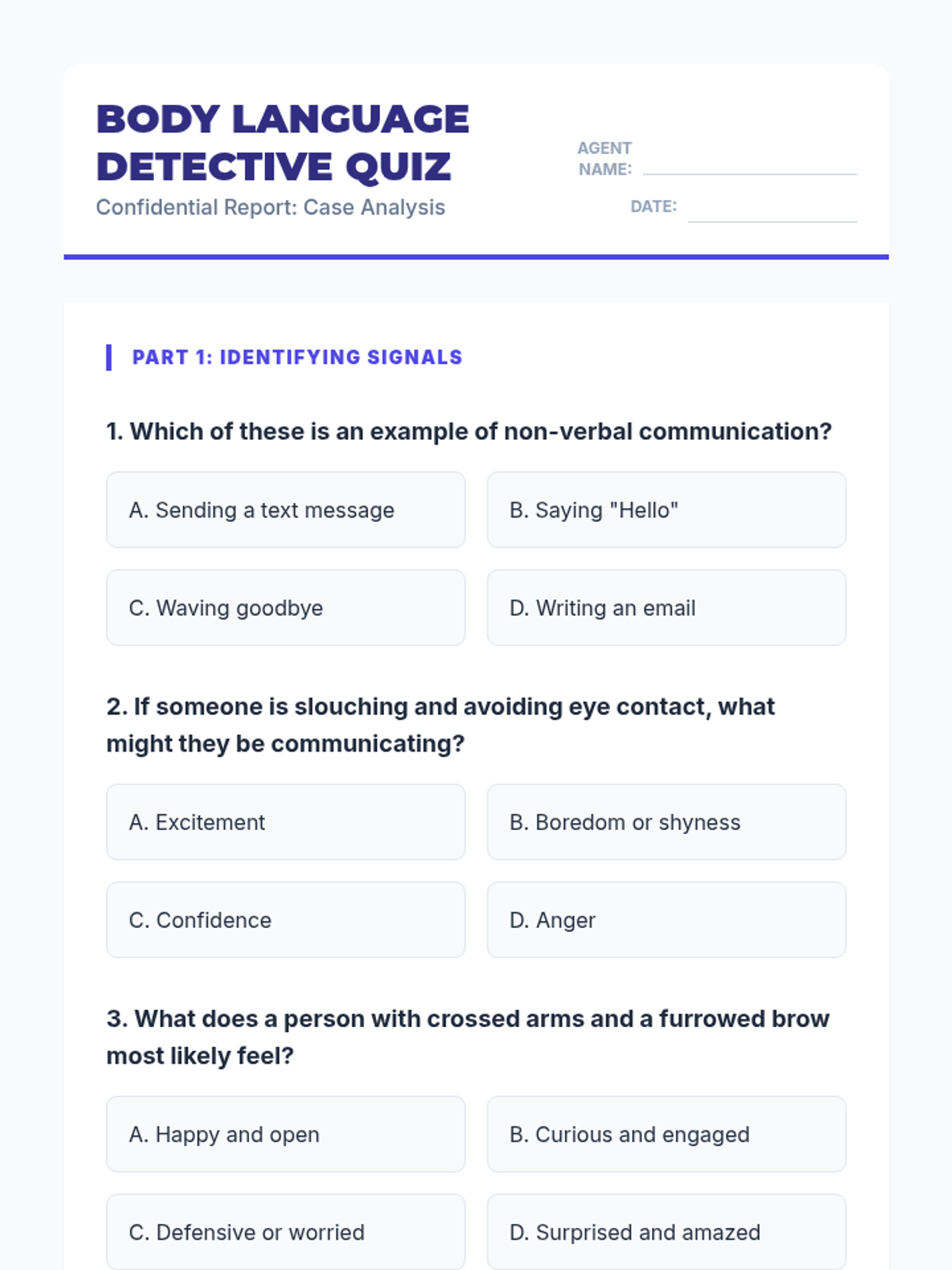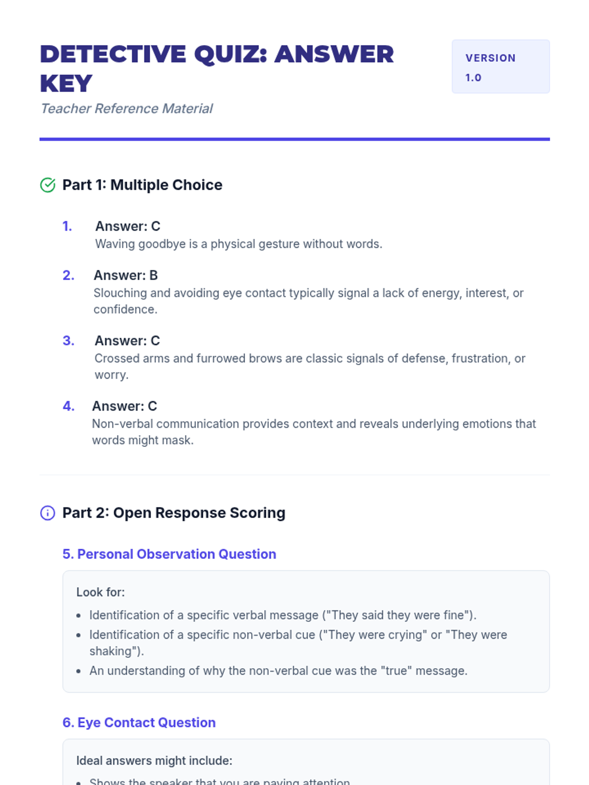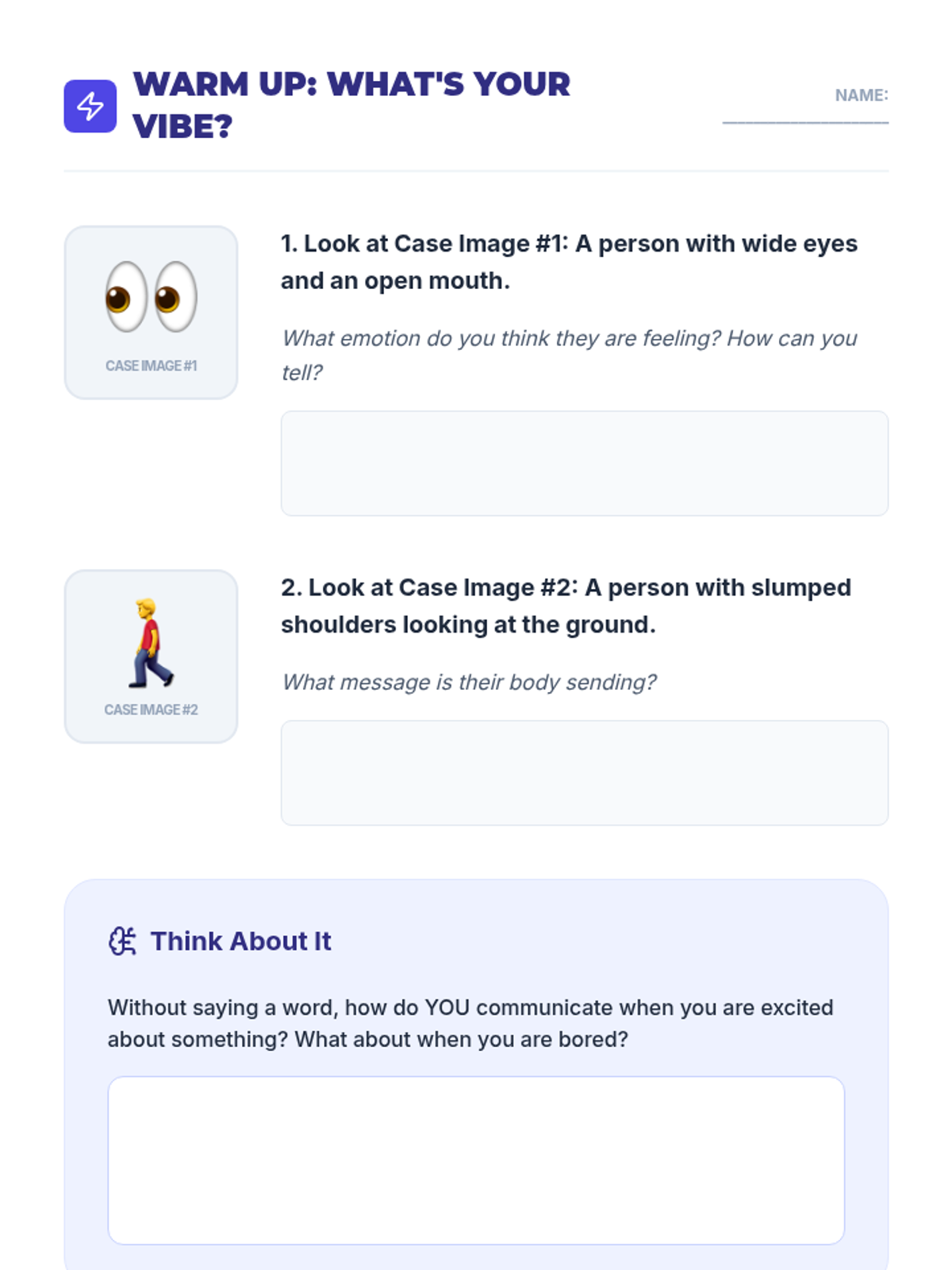 A 60-minute lesson for 6th graders to understand non-verbal communication, 'reading' social cues, and effectively using body language to communicate feelings.