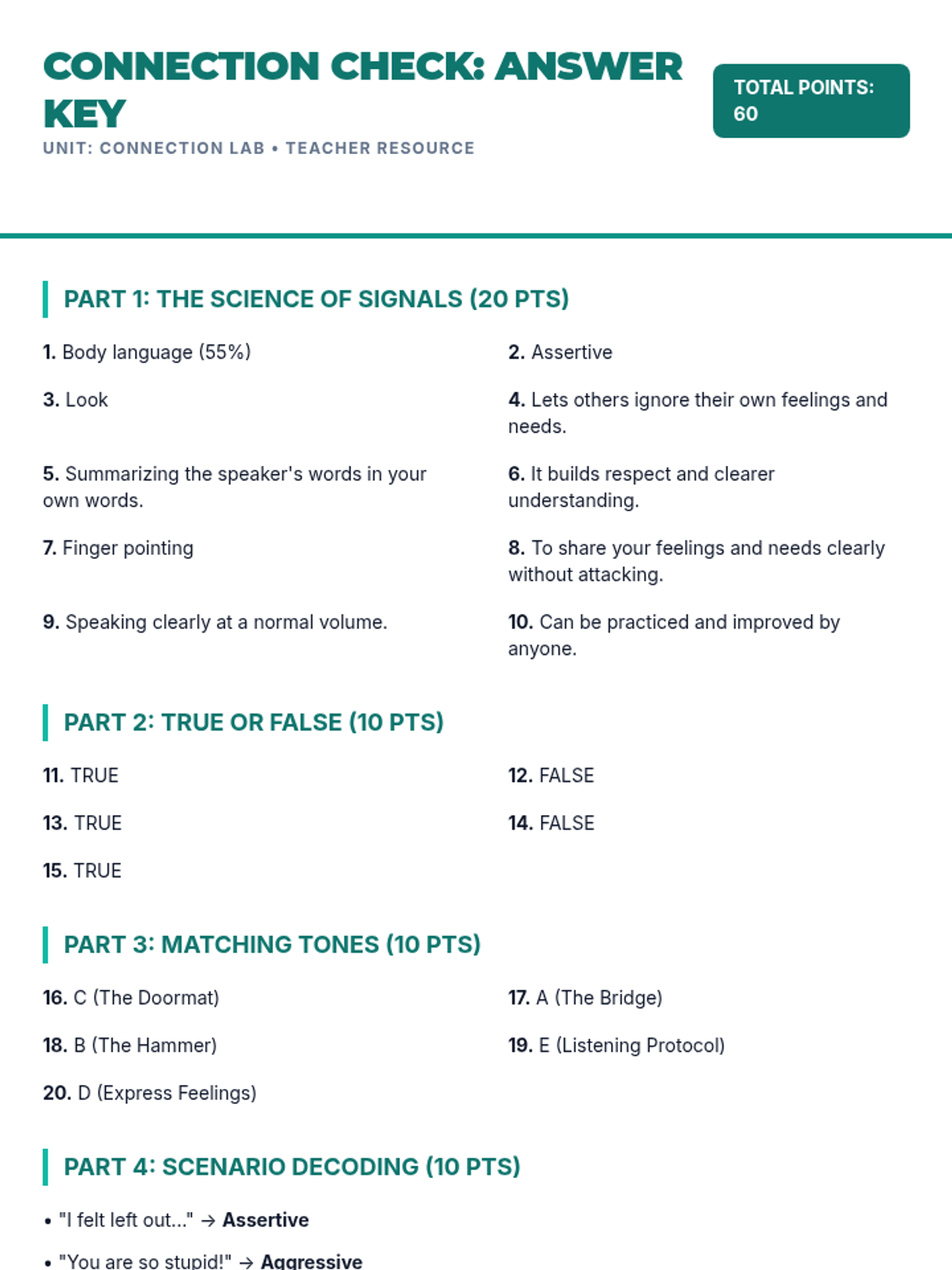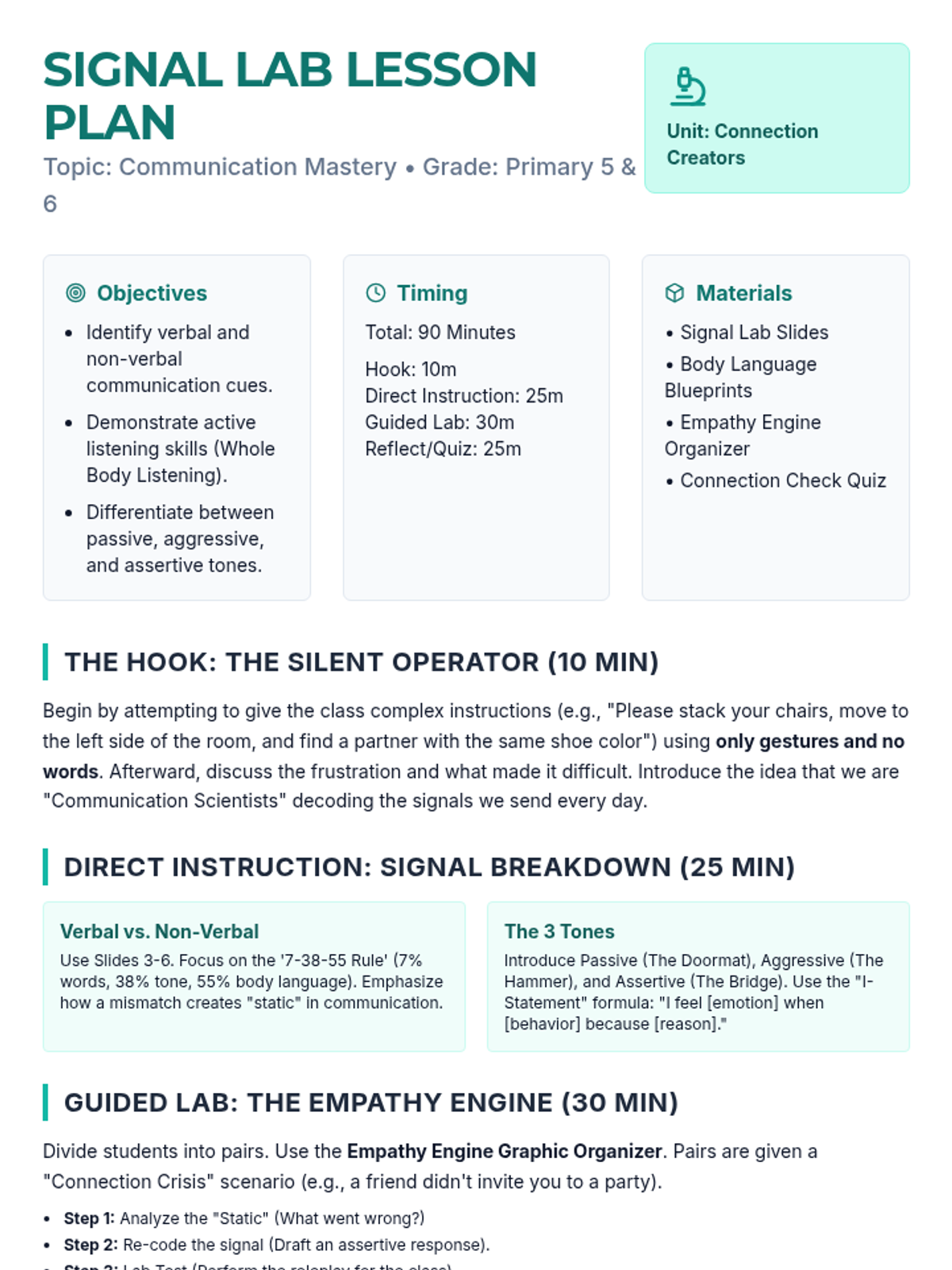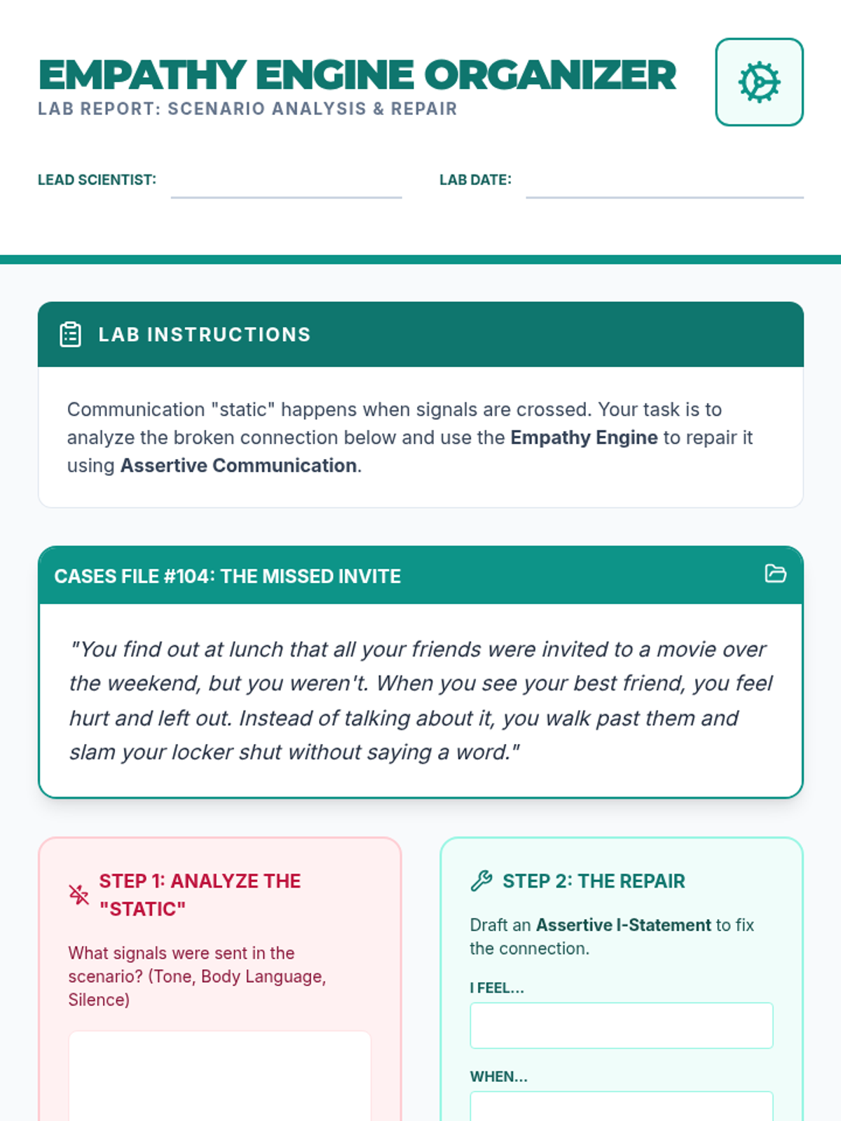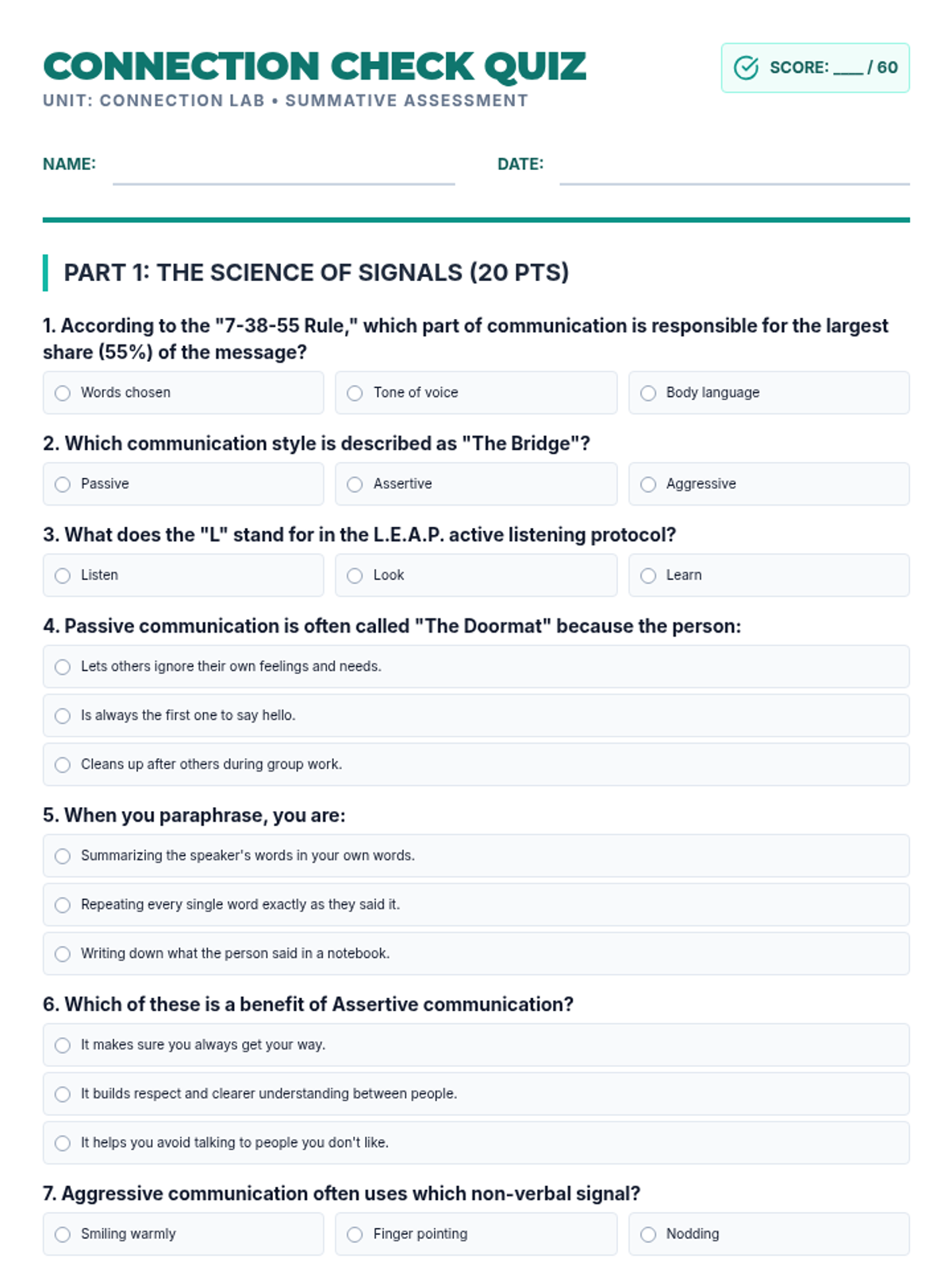 Students explore the mechanics of verbal and non-verbal communication, practice active listening techniques, and learn to navigate various social scenarios using assertive communication strategies.