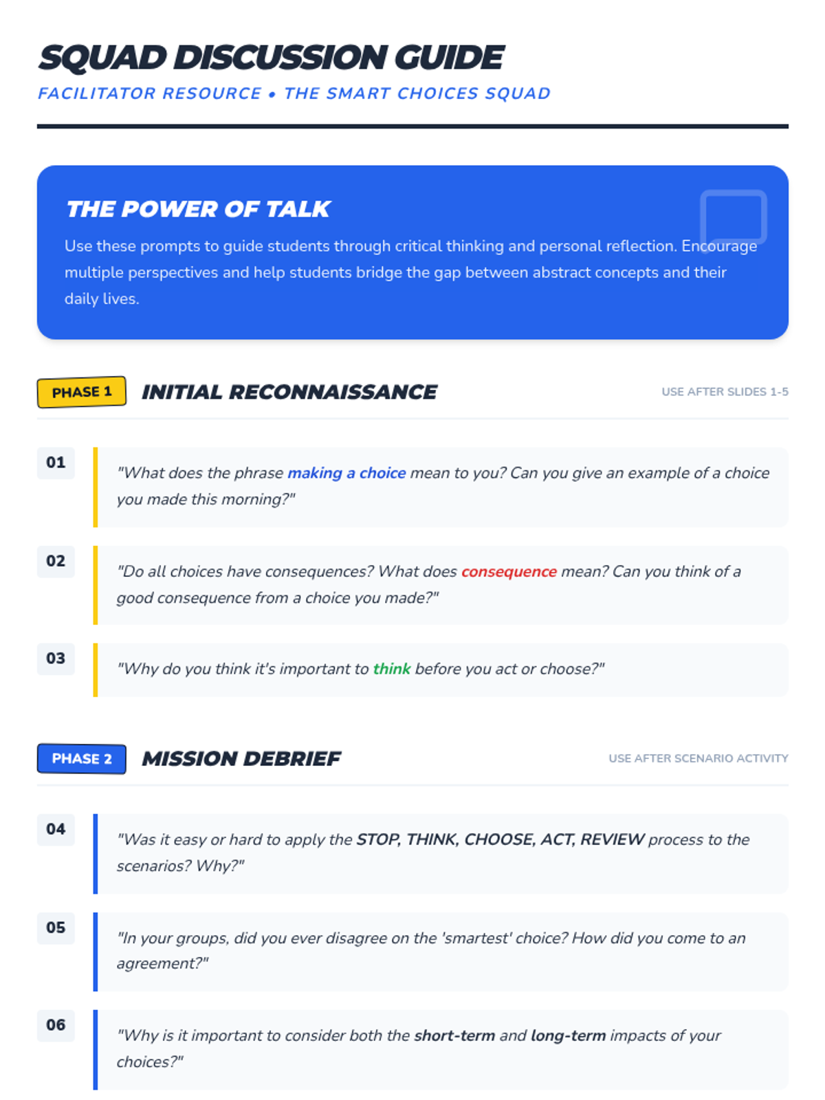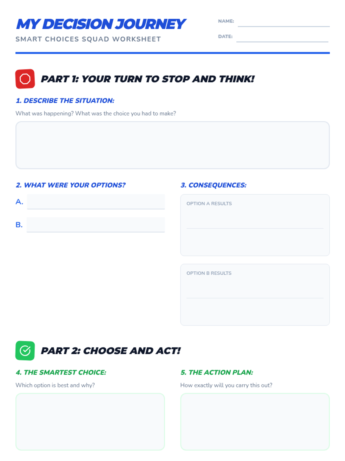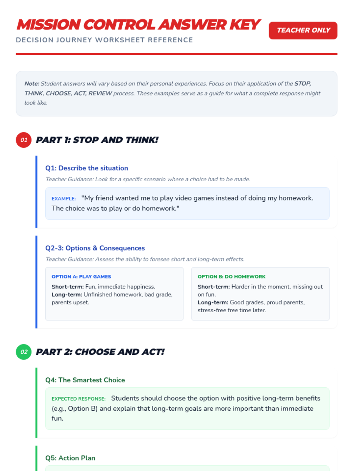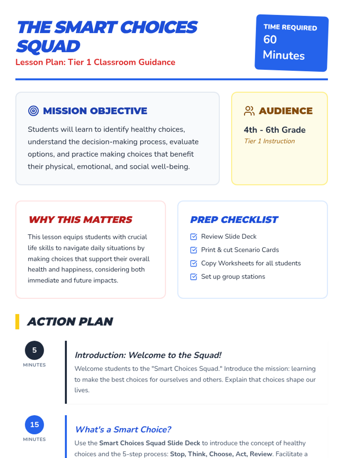 This lesson empowers 4th-6th grade students to identify and make healthy choices in various situations, considering short-term and long-term impacts. Students will learn the 'Stop, Think, Choose, Act, Review' process through interactive scenarios and group discussions.