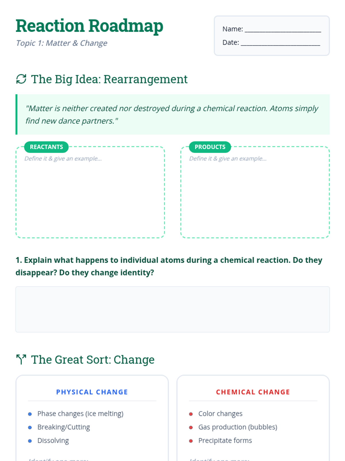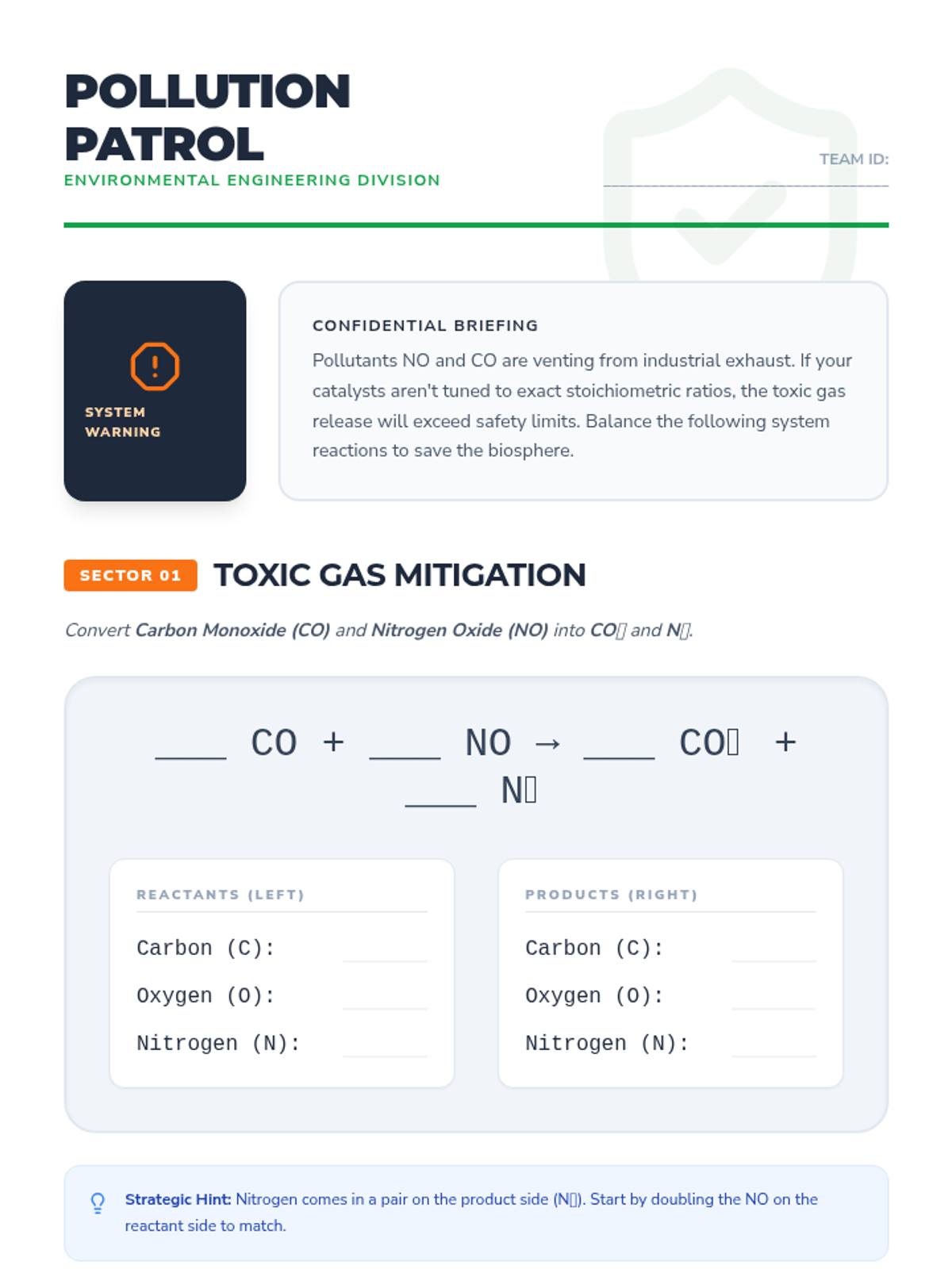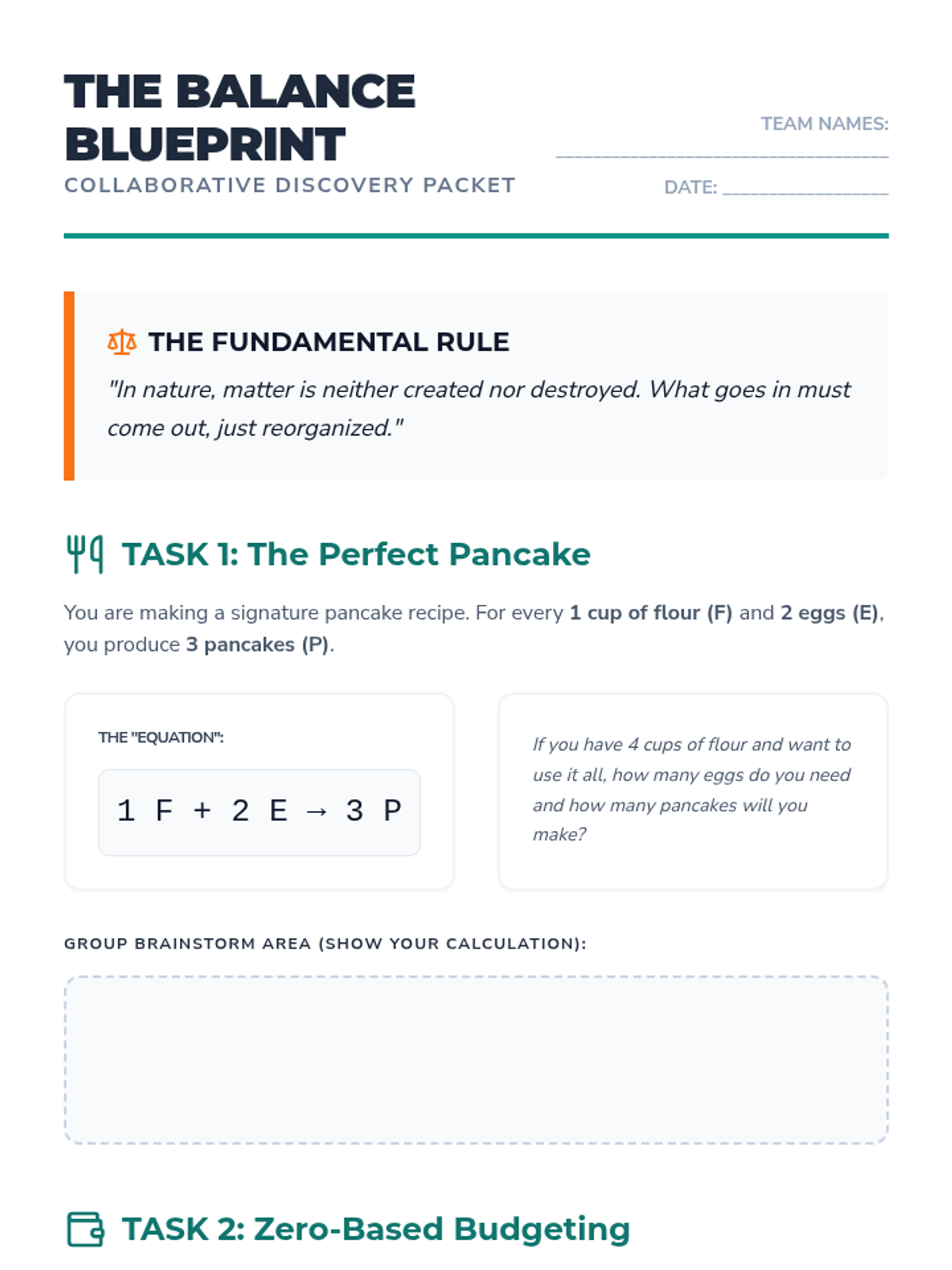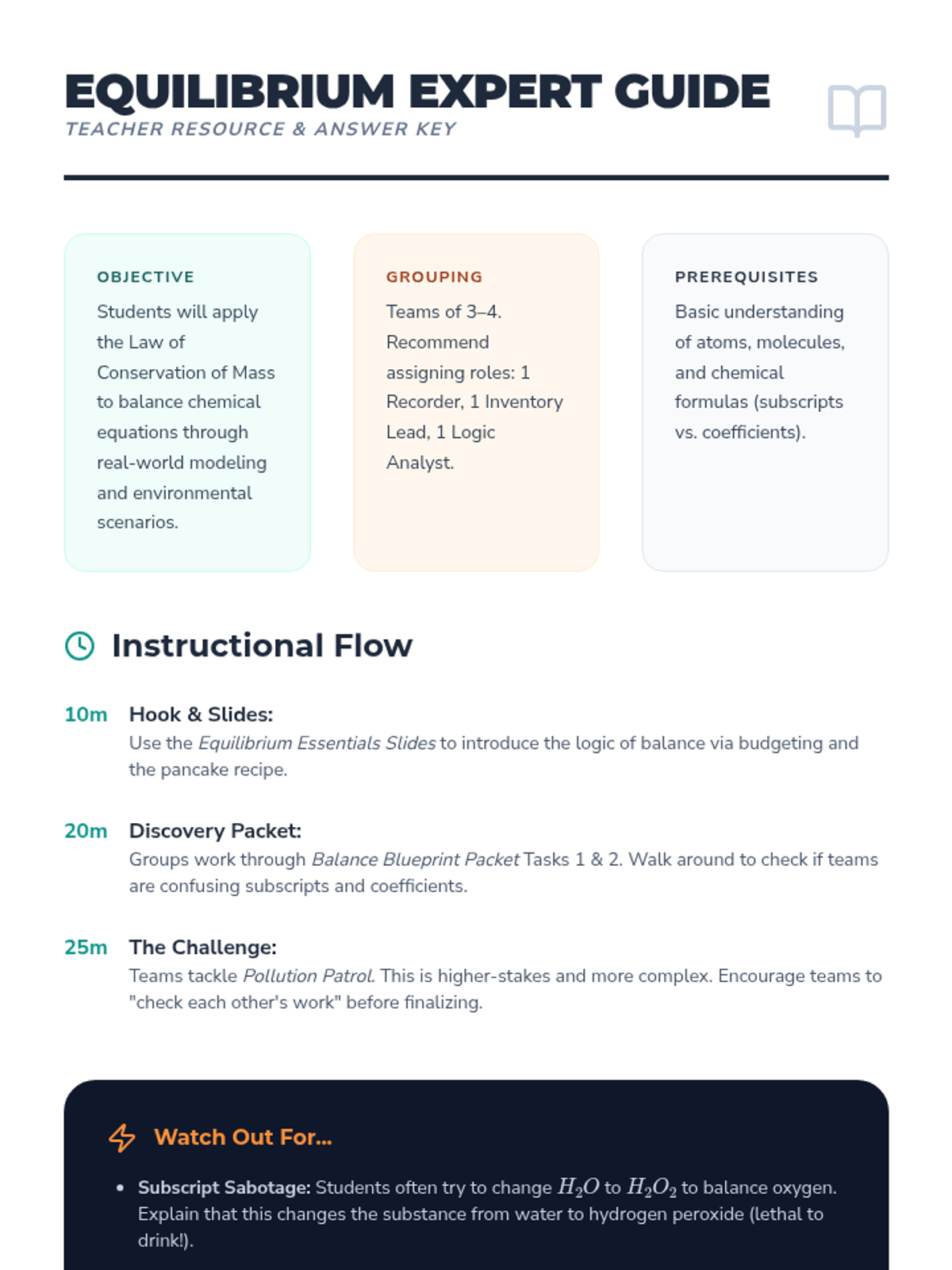 A collaborative high school lesson focused on the logic and application of balancing equations, moving from everyday scenarios to complex environmental chemistry.