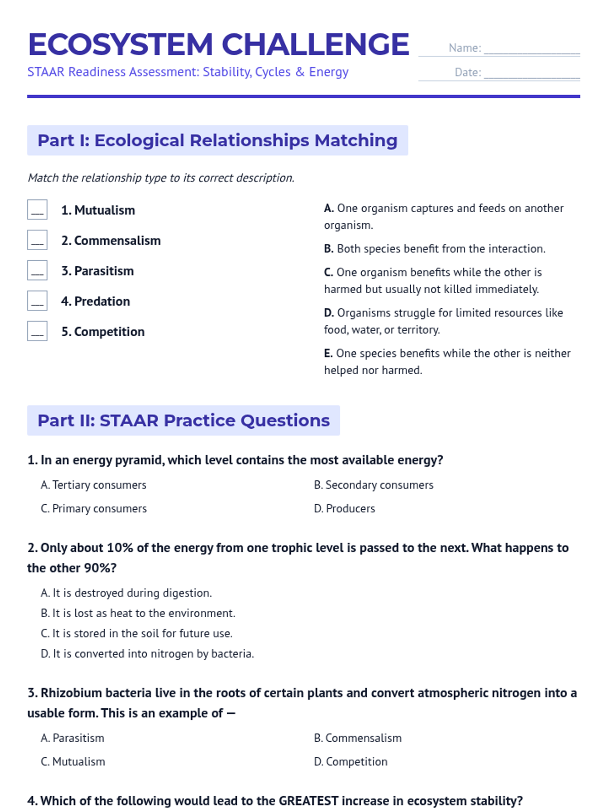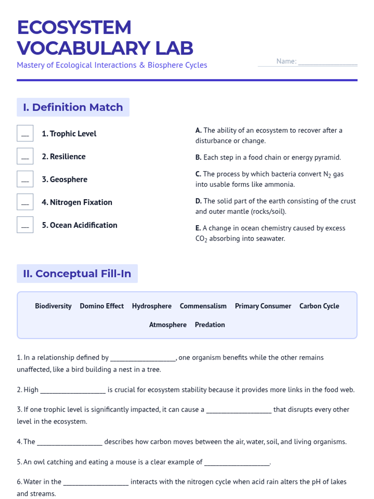 Examines ecological relationships, energy flow through trophic levels, and the cycling of matter within ecosystems.