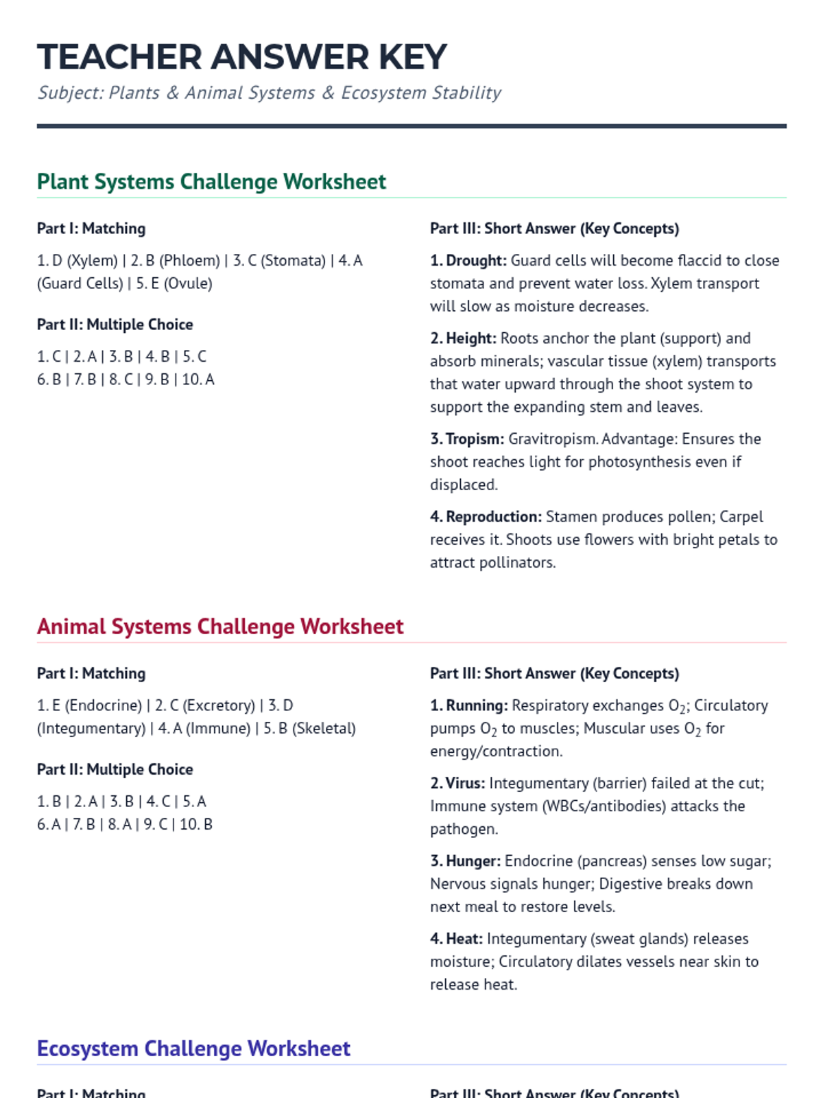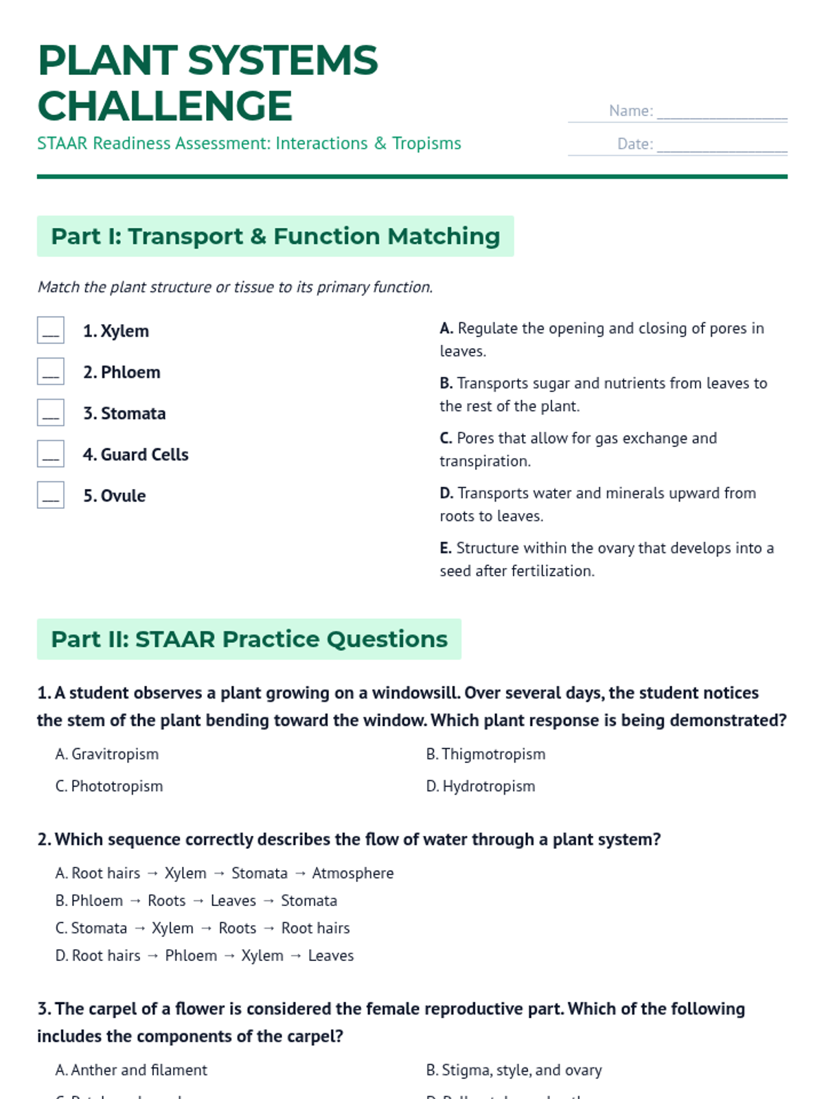 Focuses on plant systems including transport, reproduction, and response mechanisms like tropisms.