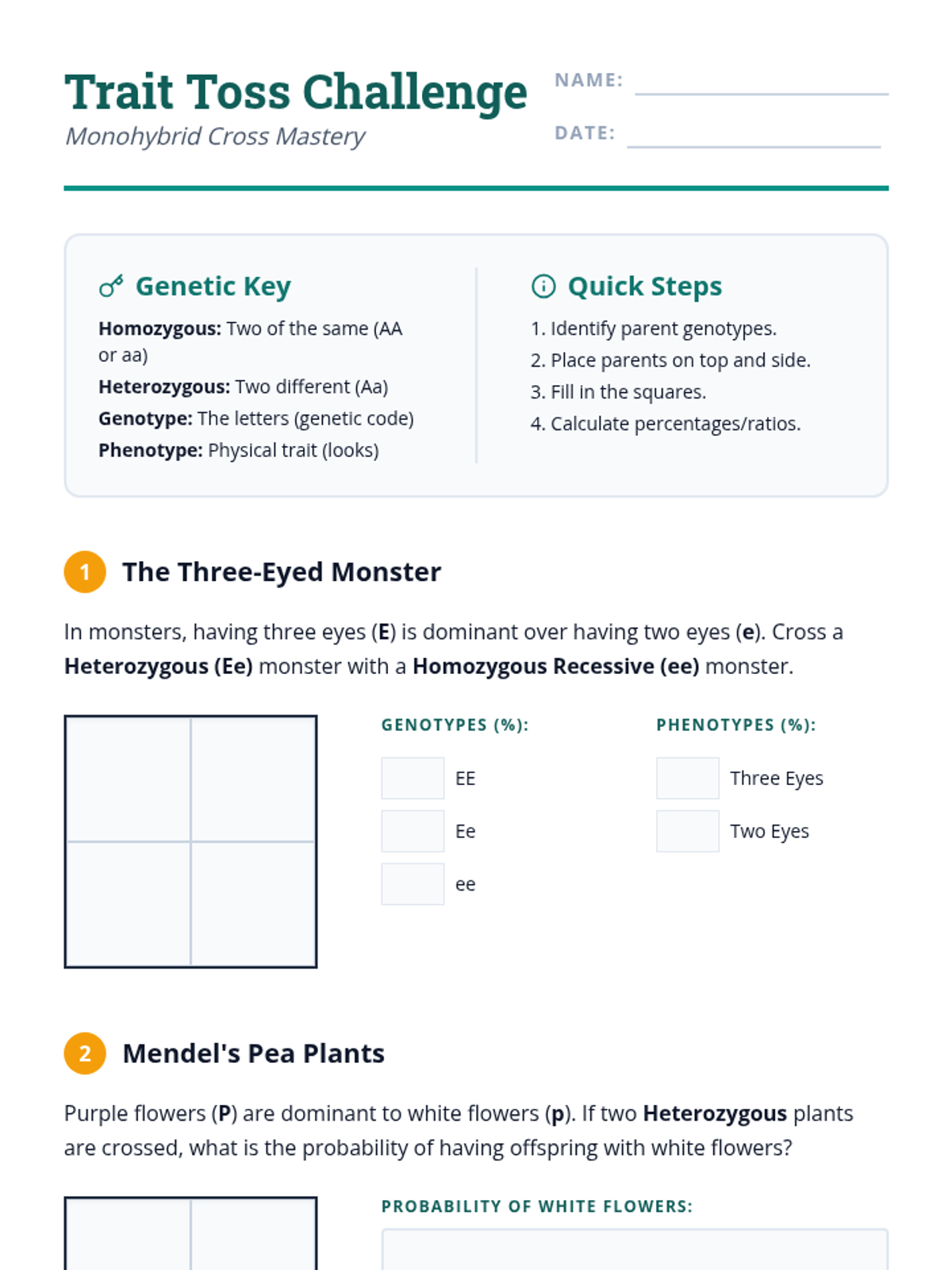 A focused lesson on predicting offspring genotypes and phenotypes using monohybrid crosses.