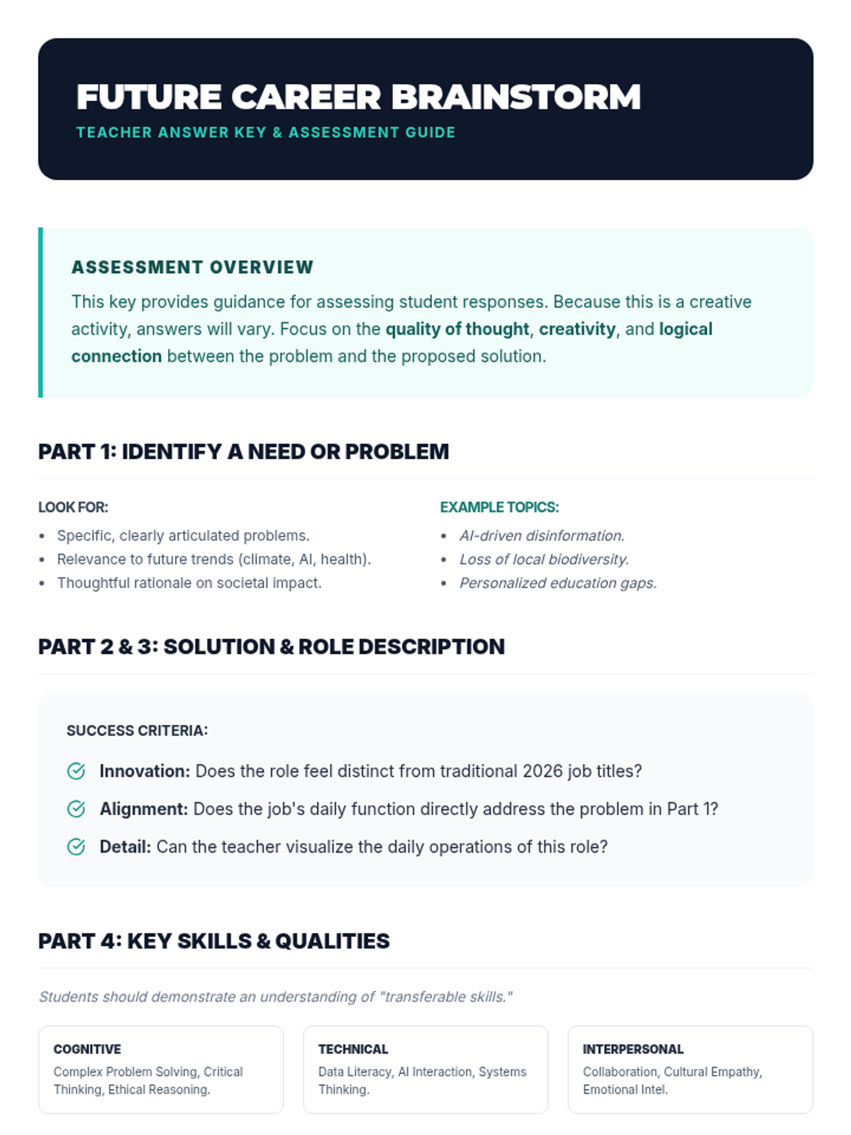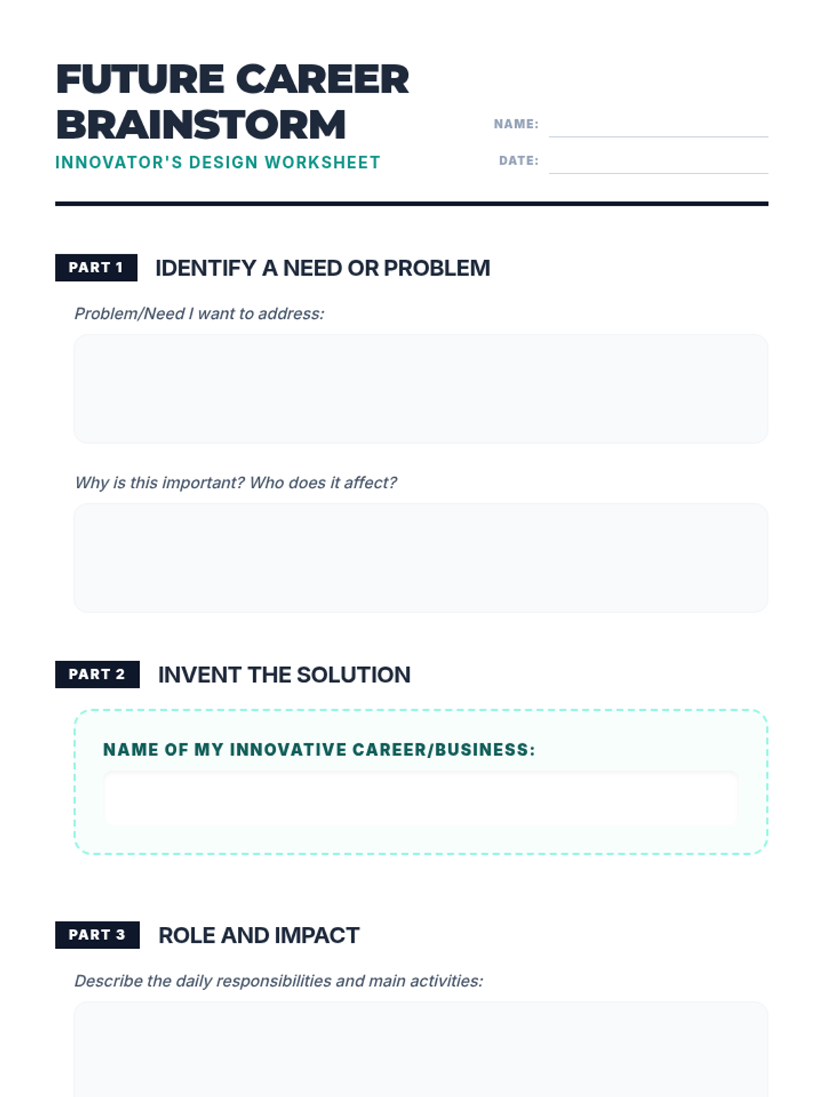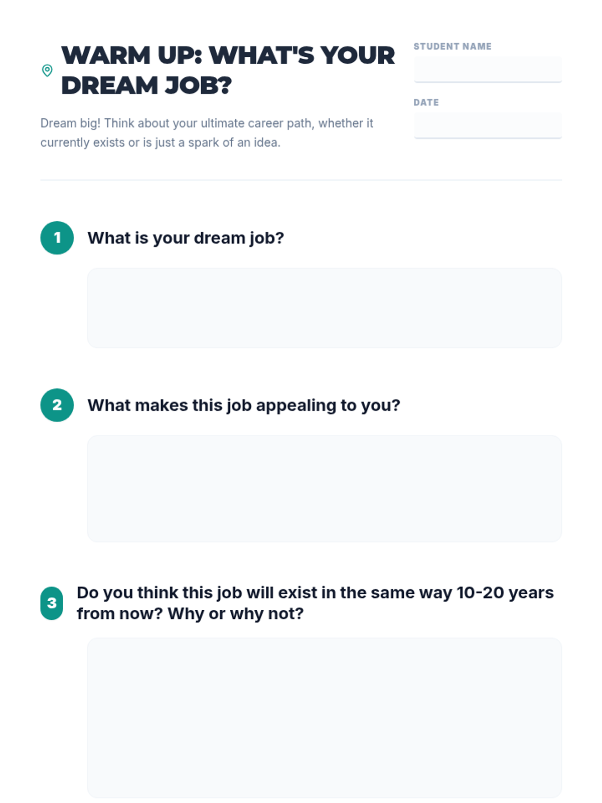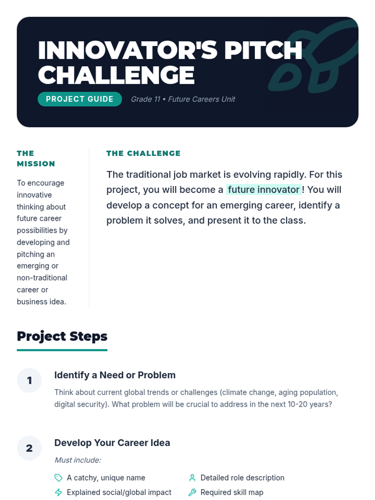 A 75-minute lesson for 11th-grade students to explore emerging and non-traditional career paths, fostering innovation and adaptability in a changing job market.