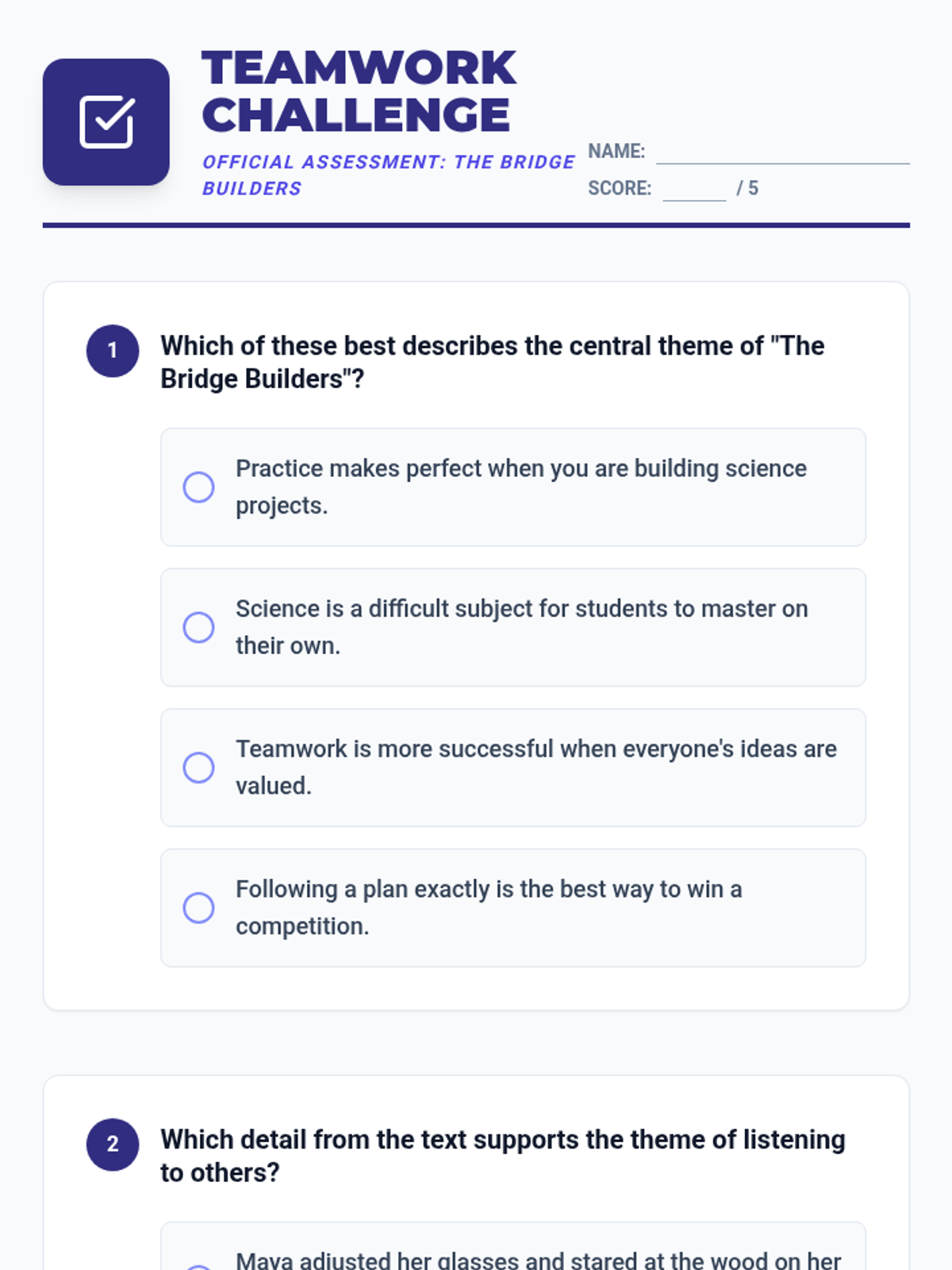 A comprehensive small-group lesson focused on the foundational skills of retelling and paraphrasing using short fiction. Students use blueprint-themed tools to identify story structure and practice restating ideas in their own words.