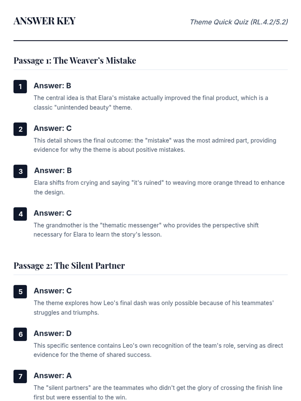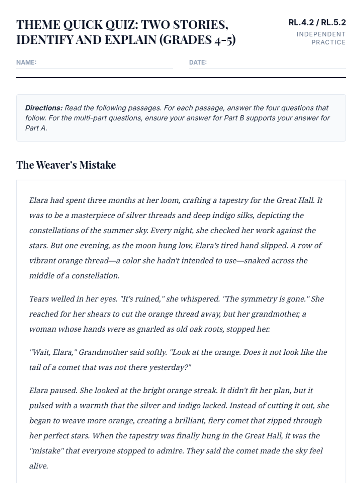A focused practice session for 4th and 5th grade students to identify themes in fiction and provide evidence-based explanations, aligned with NC EOG standards.