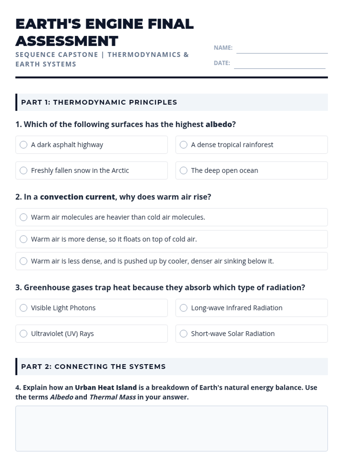 Students research the conversion of thermal energy from warm oceans into the mechanical energy of hurricanes, demonstrating the law of conservation of energy.