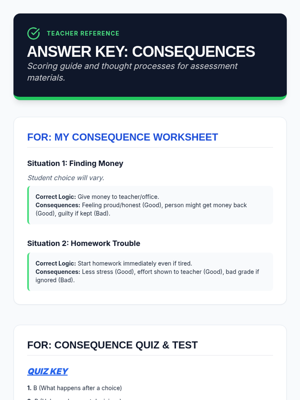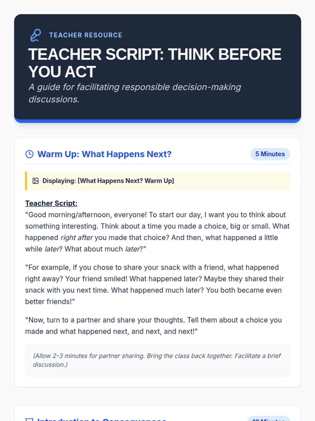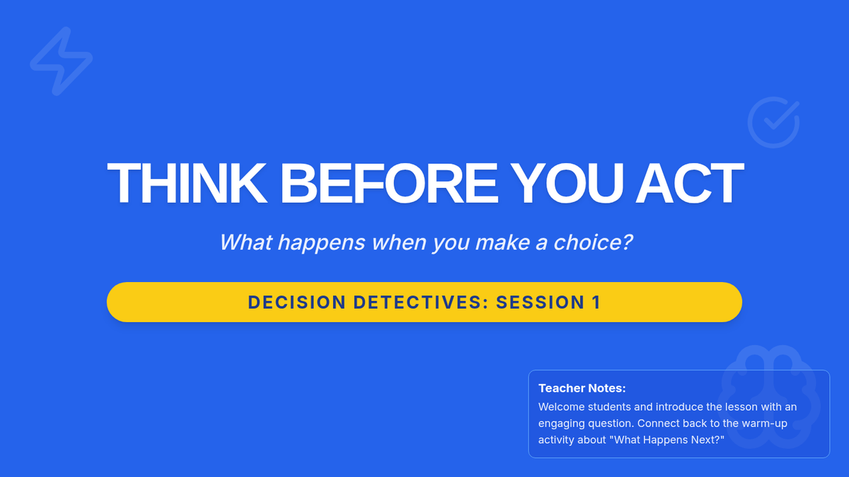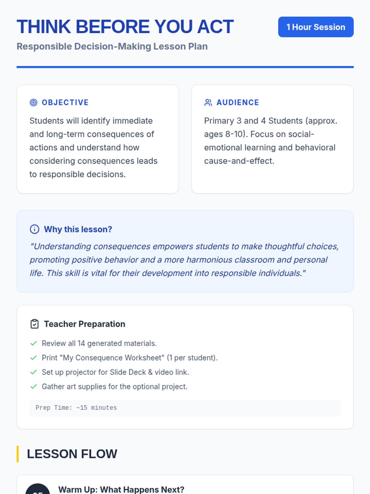 A single-session lesson for Primary 3-4 students focused on understanding immediate and long-term consequences to foster responsible decision-making.