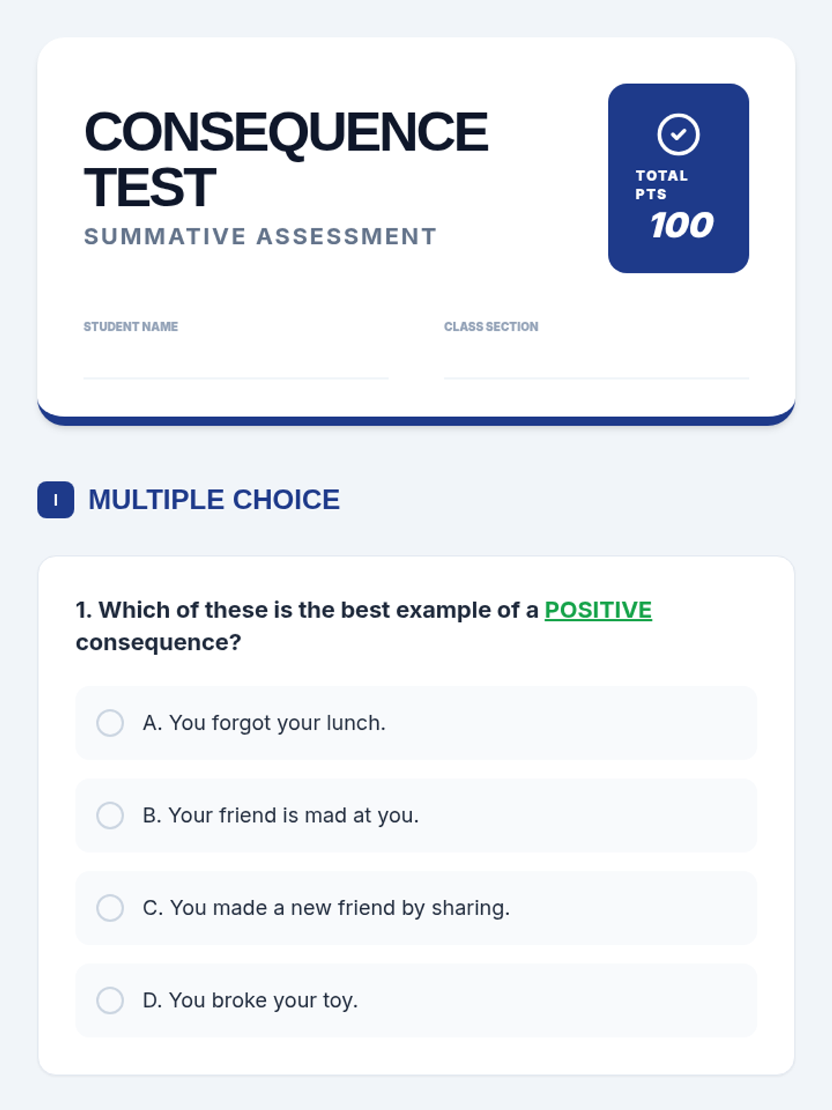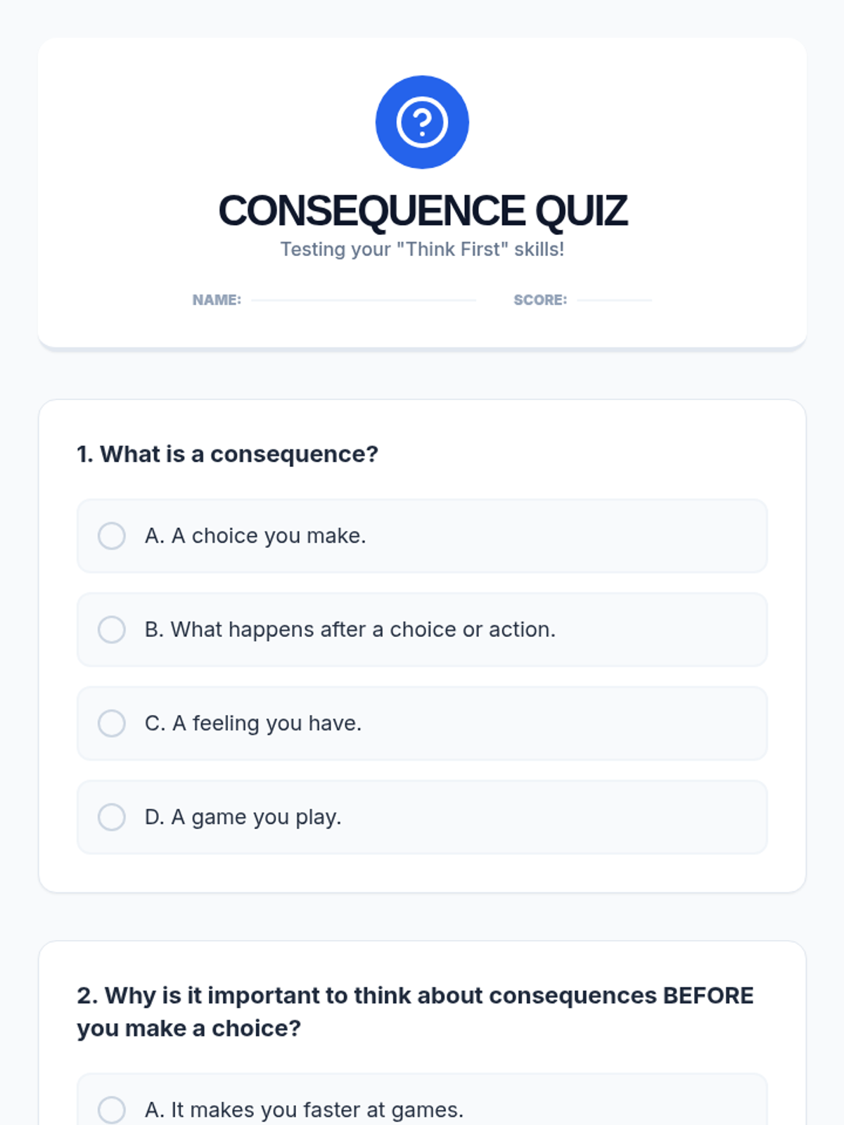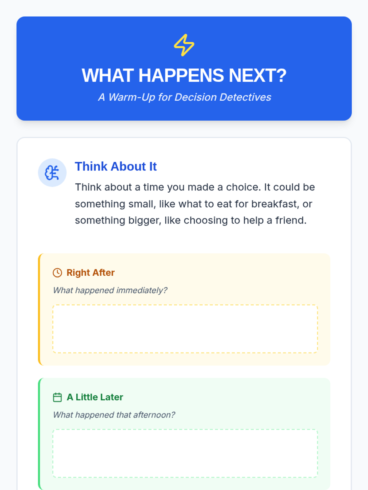 A single-session lesson for Primary 3-4 students focused on understanding immediate and long-term consequences to foster responsible decision-making.