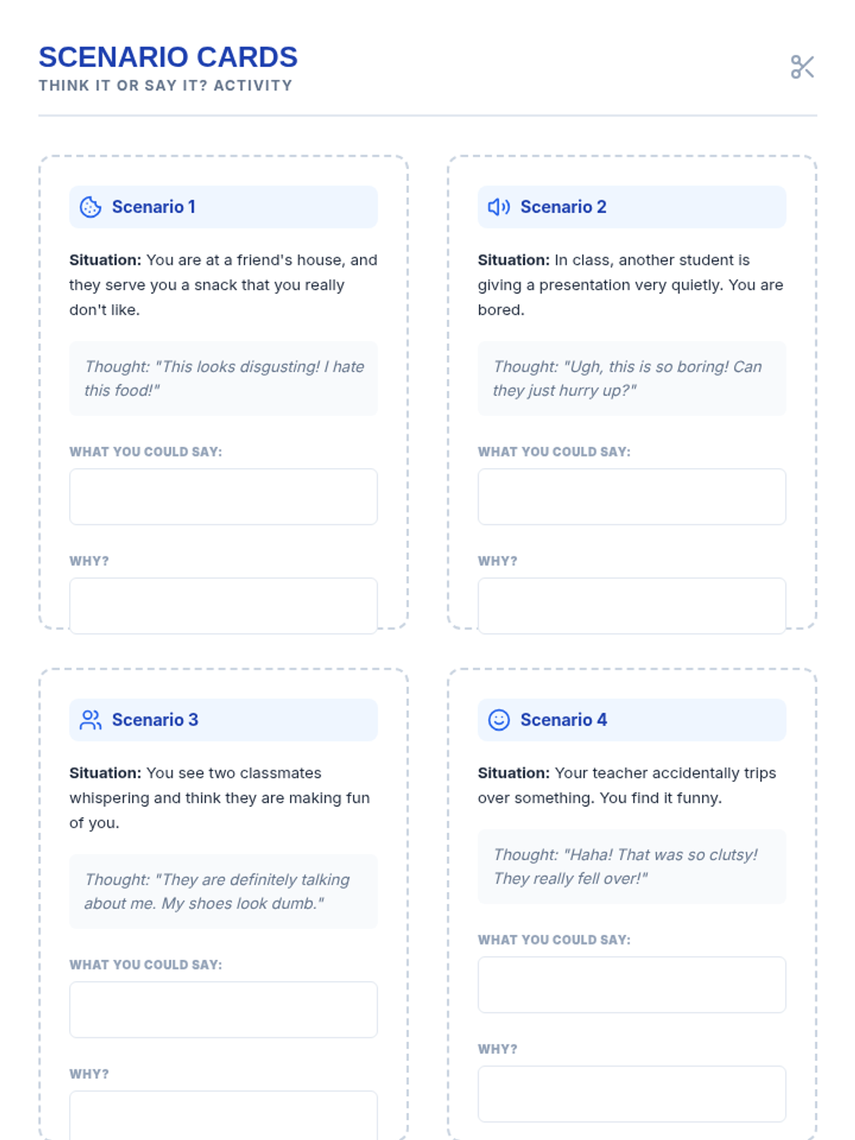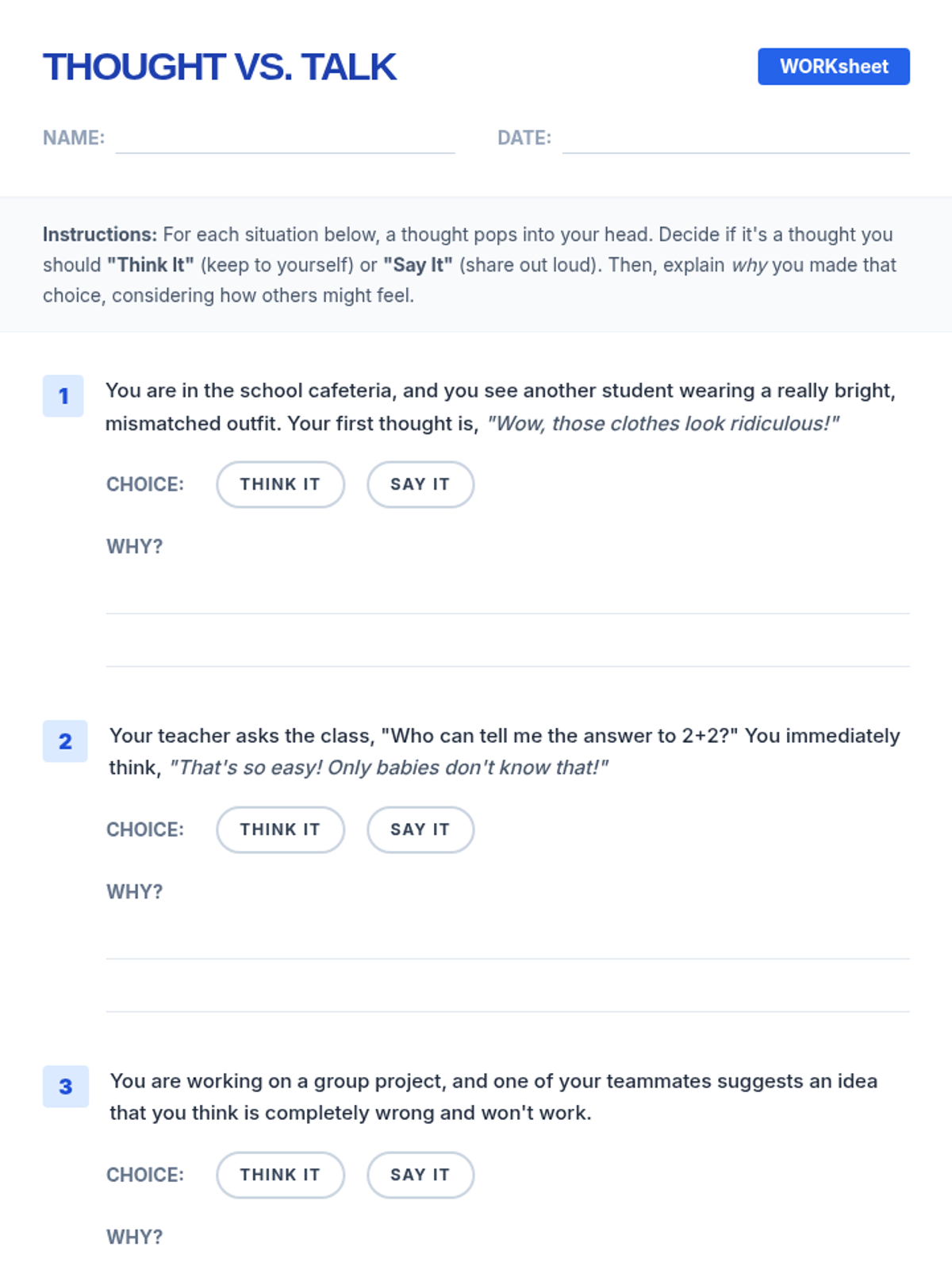 Financial literacy basics. Categorizing needs vs. wants to build long-term planning skills.