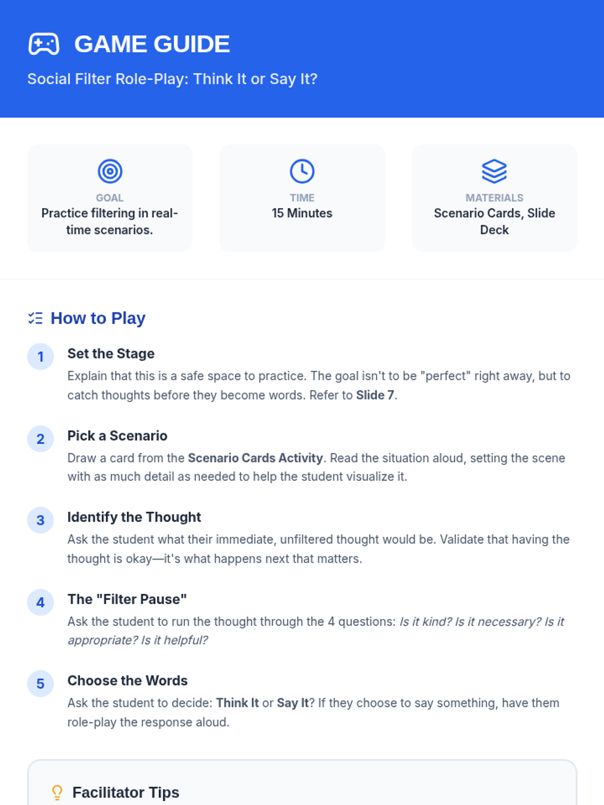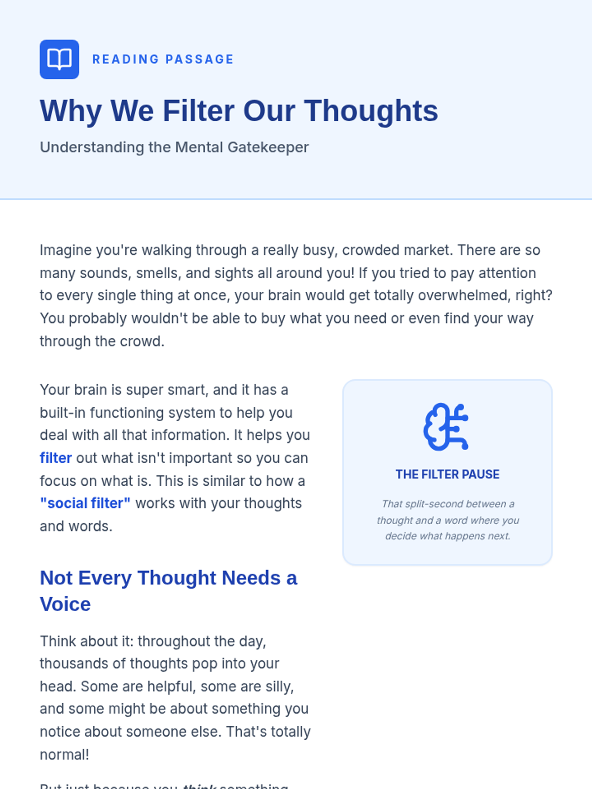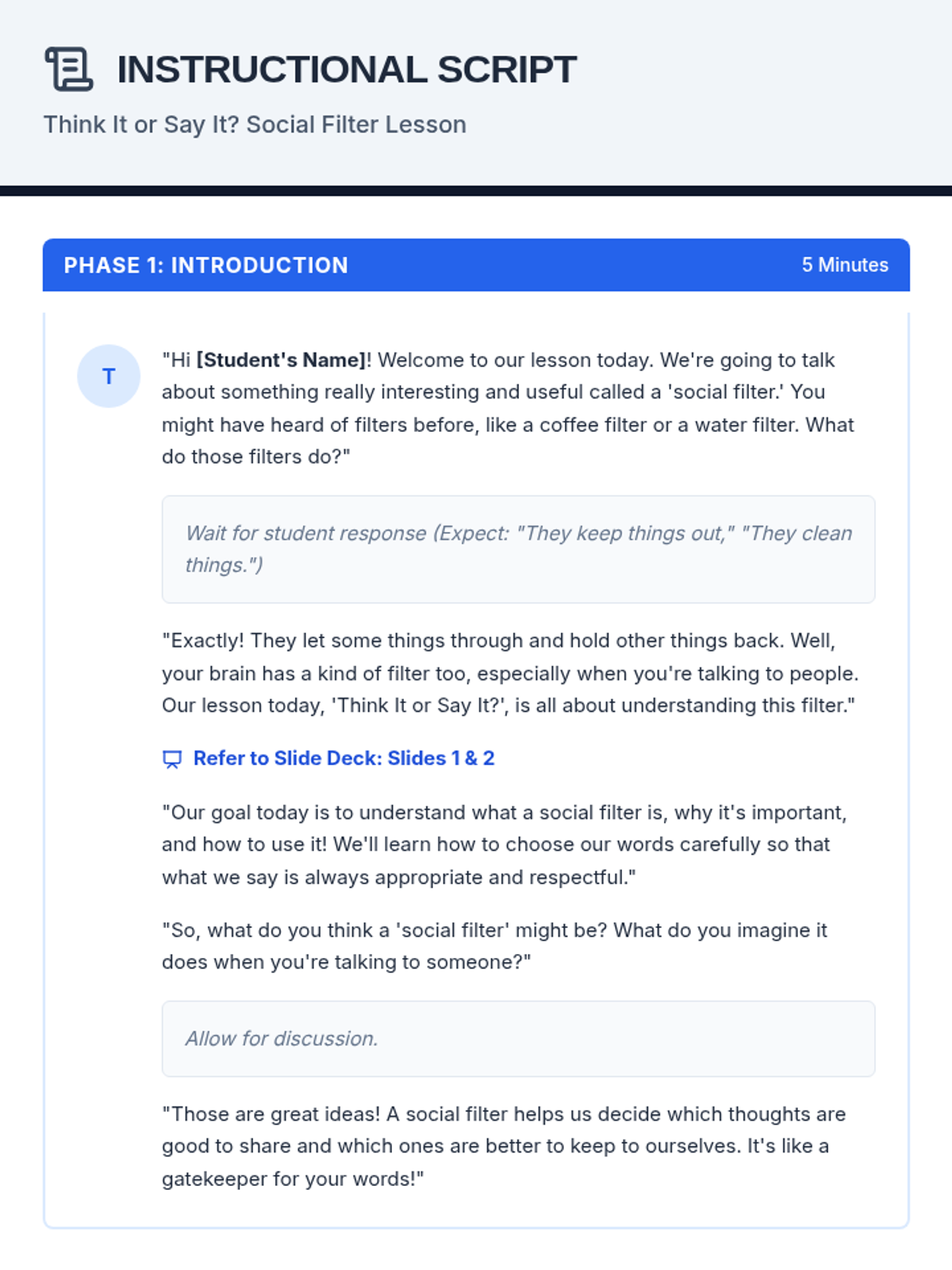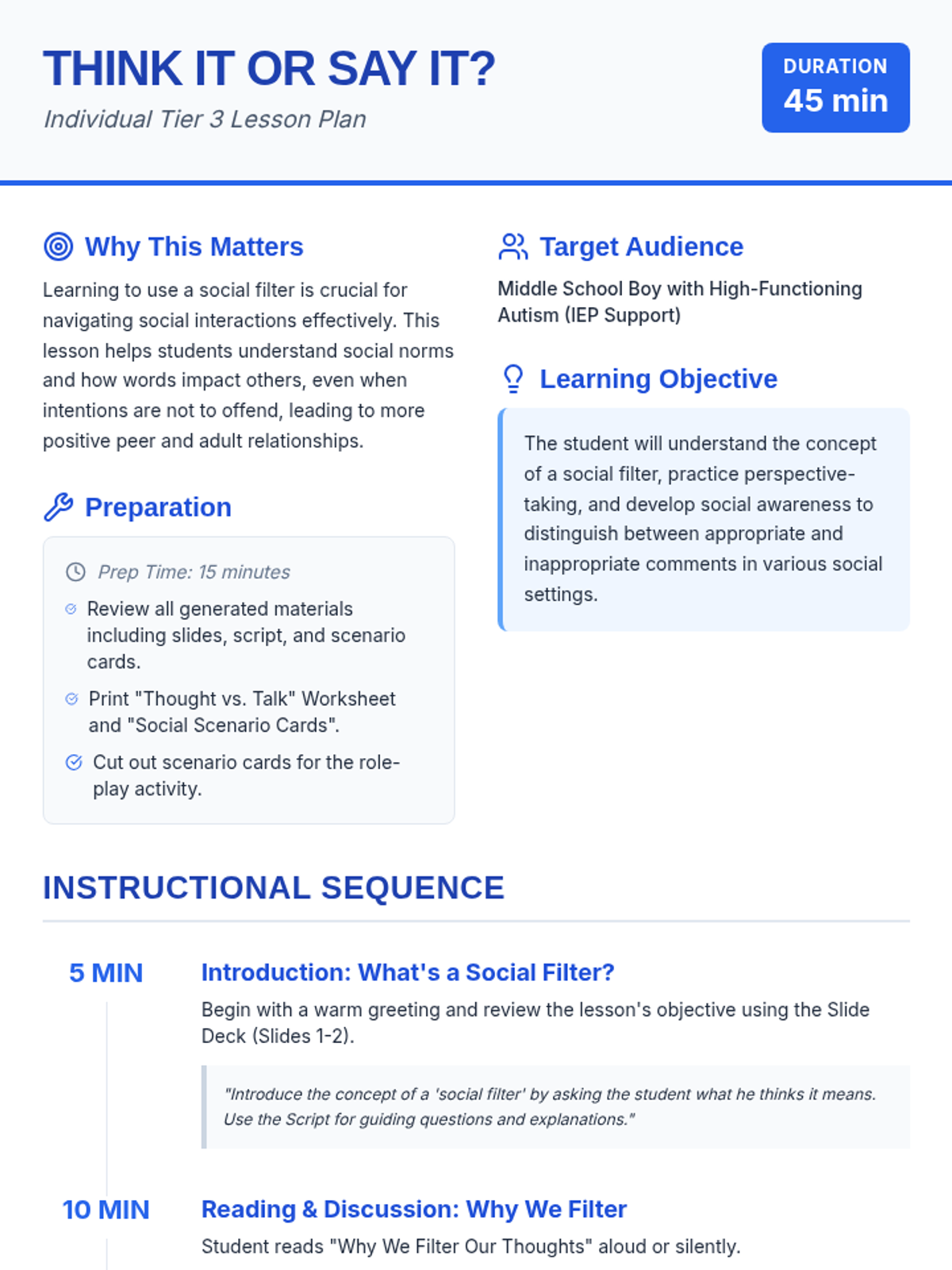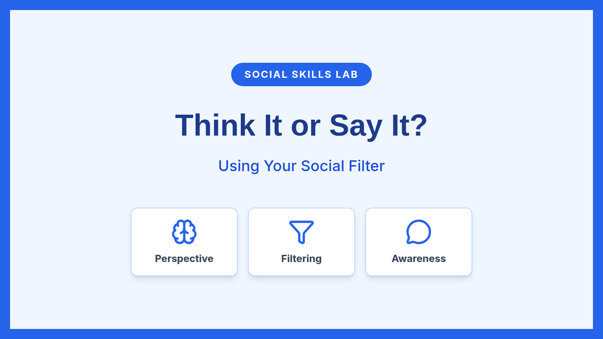 An individual Tier 3 lesson designed for a middle school student with high-functioning autism to understand and apply a social filter through perspective-taking and social awareness.