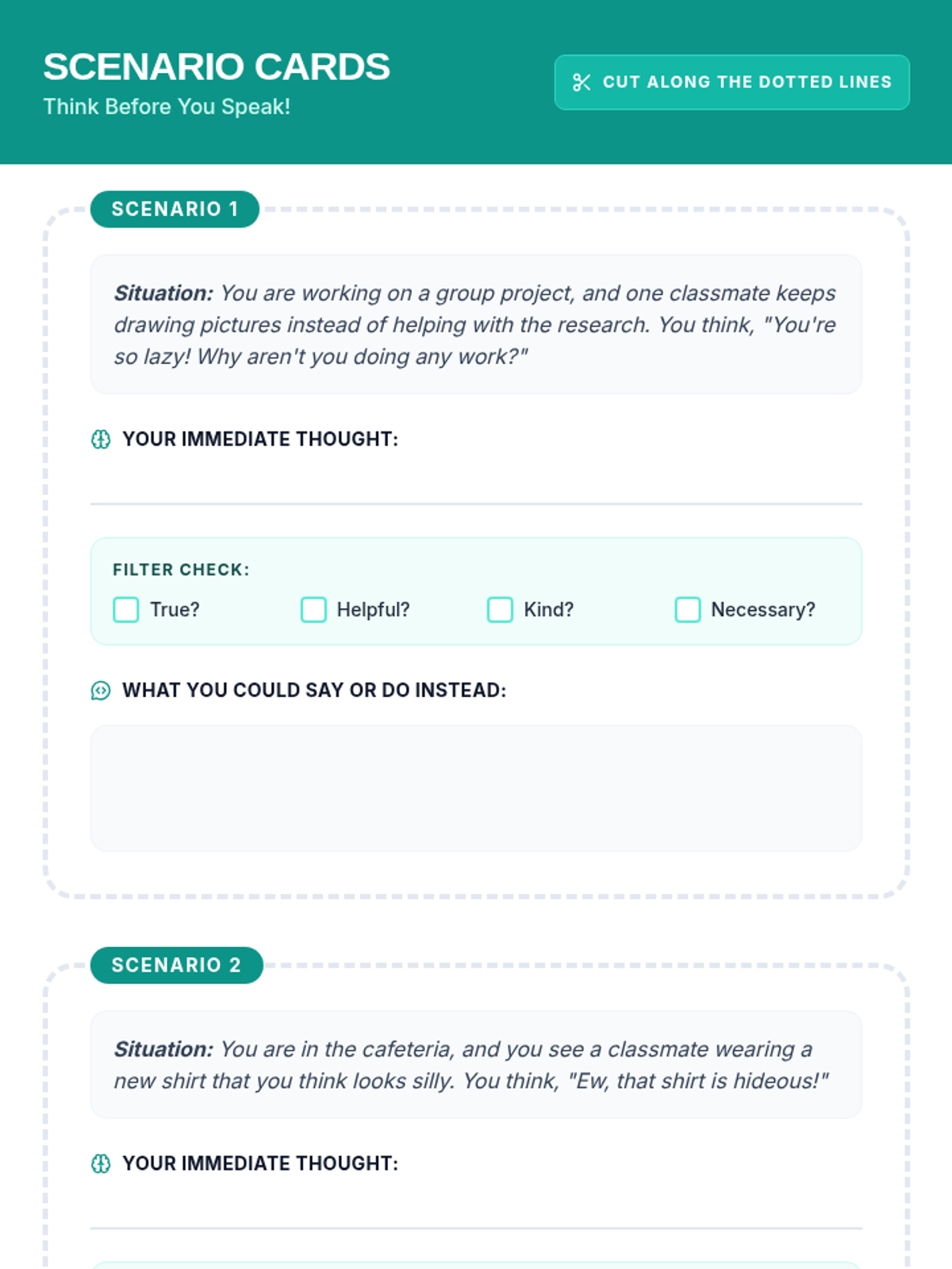 A lesson designed to empower students to understand their IEP goals and practice self-advocacy through scenario-based roleplay. Students will learn the 'Blueprinting' method for communicating their needs effectively to teachers and staff.