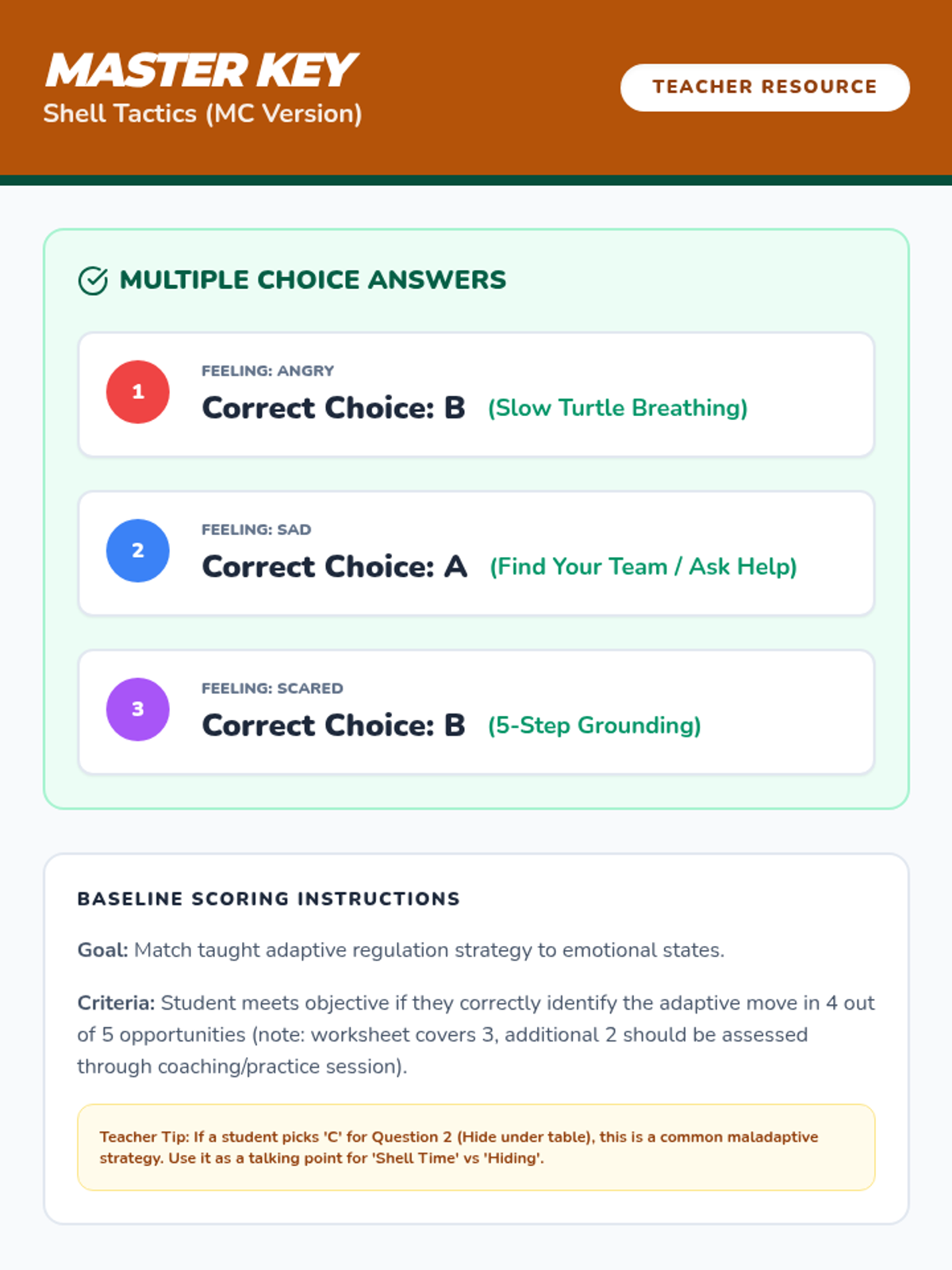 A CBT-based individual lesson for 2nd graders to help them identify big emotions and utilize effective coping strategies to regain calm.