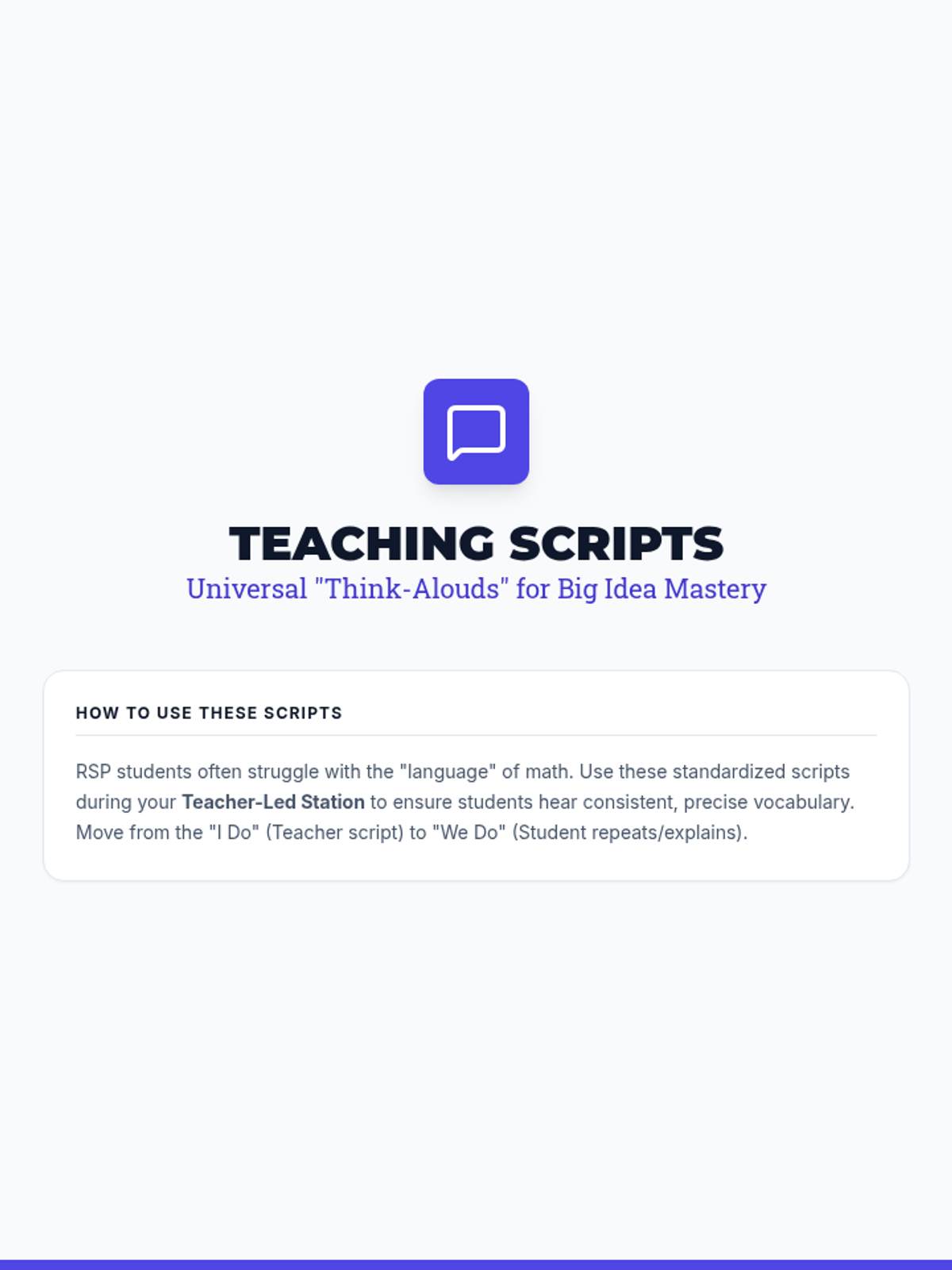A toolkit for RSP teachers to transform a scope and sequence into a functional daily curriculum. Includes instructional frameworks, diagnostic tools, and planning templates specifically designed for multi-grade math intervention.