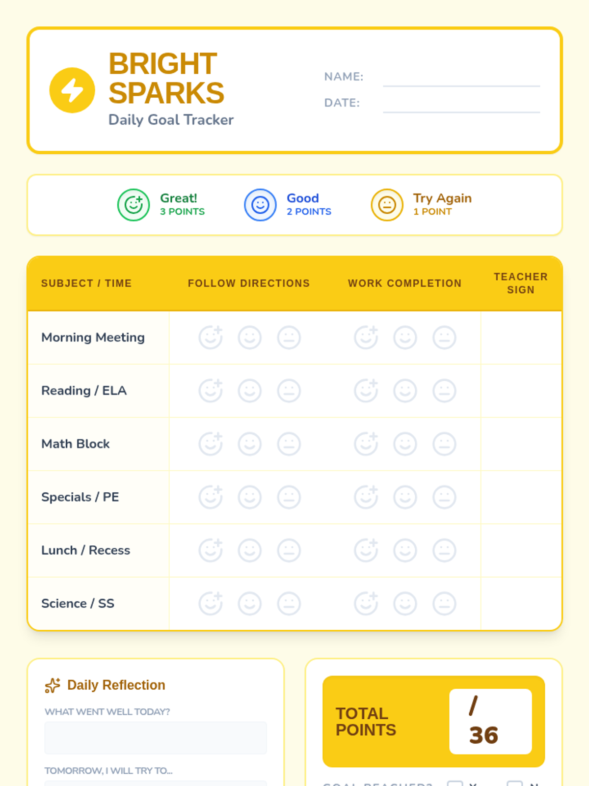 A set of positive reinforcement tools designed to track and encourage following directions, work completion, on-task behavior, and social-emotional skills.