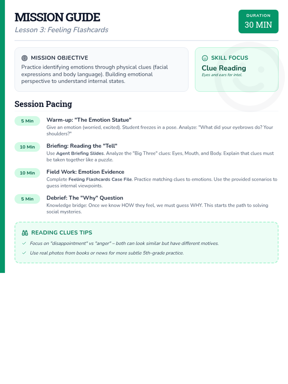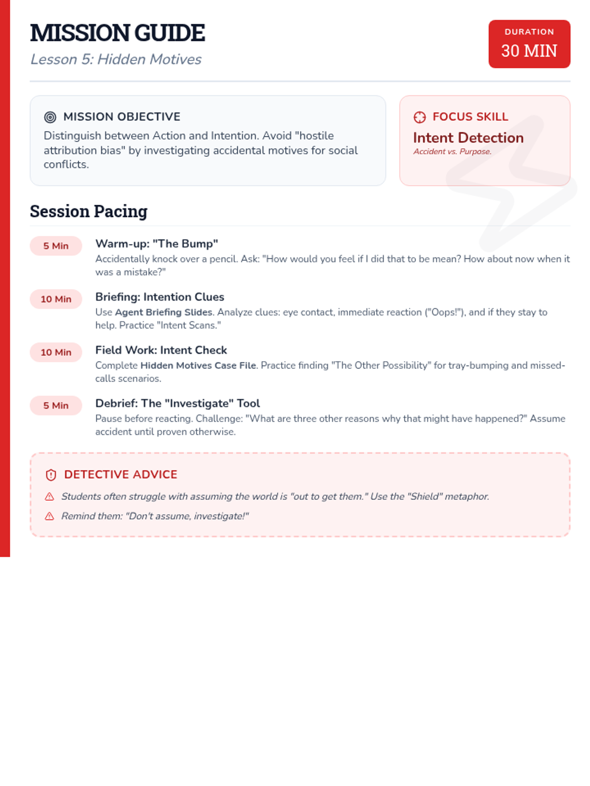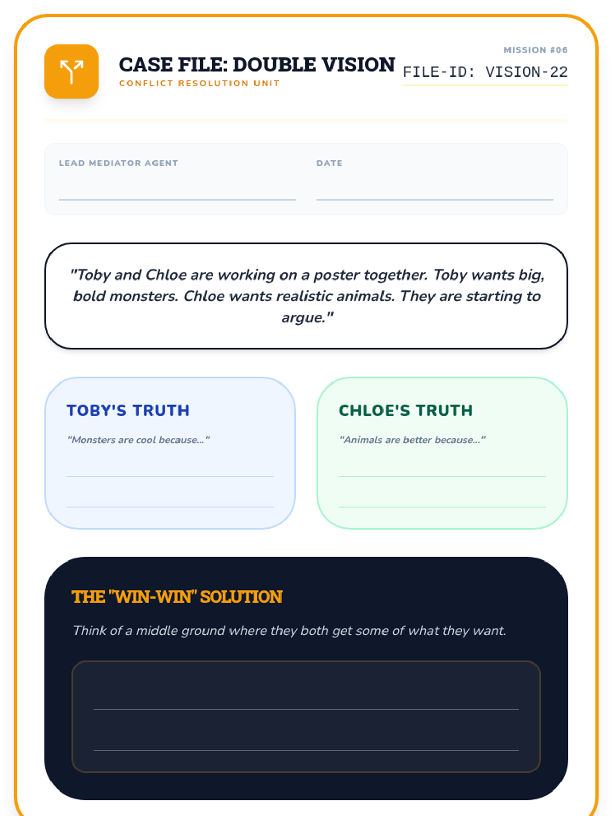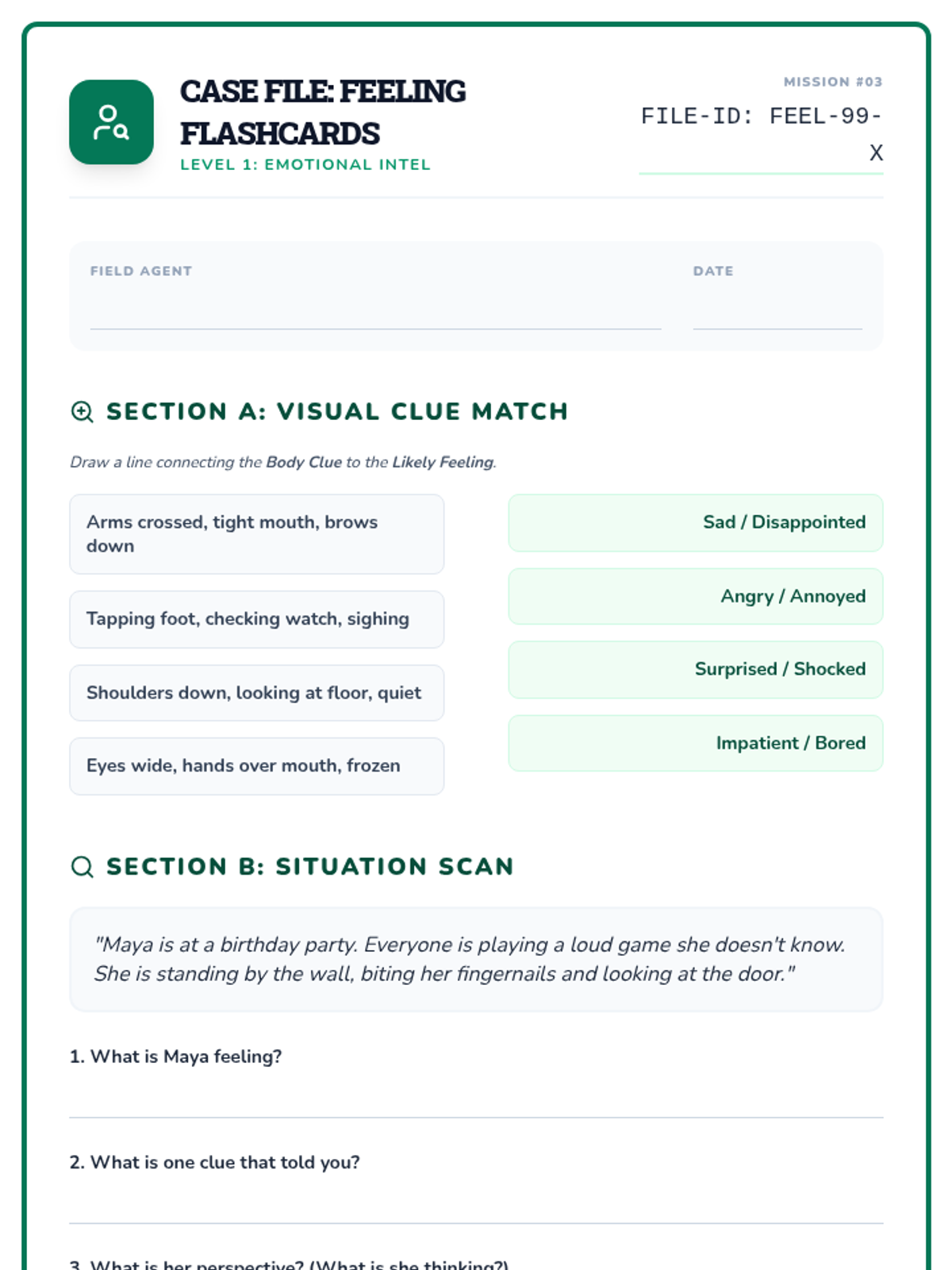 A final review and synthesis of all perspective-taking skills. Students solve a complex "Social Mystery" using all the tools in their detective kit.