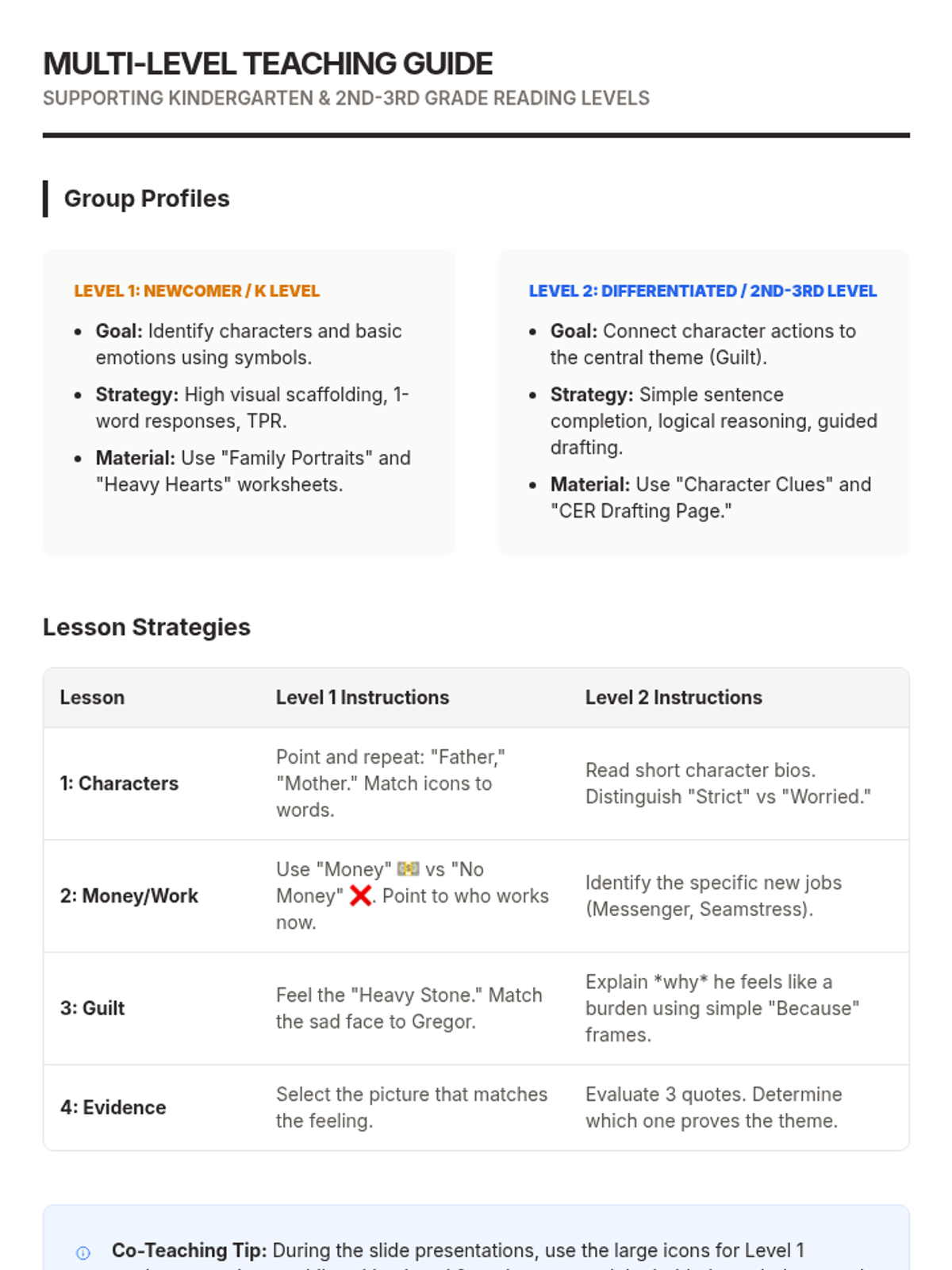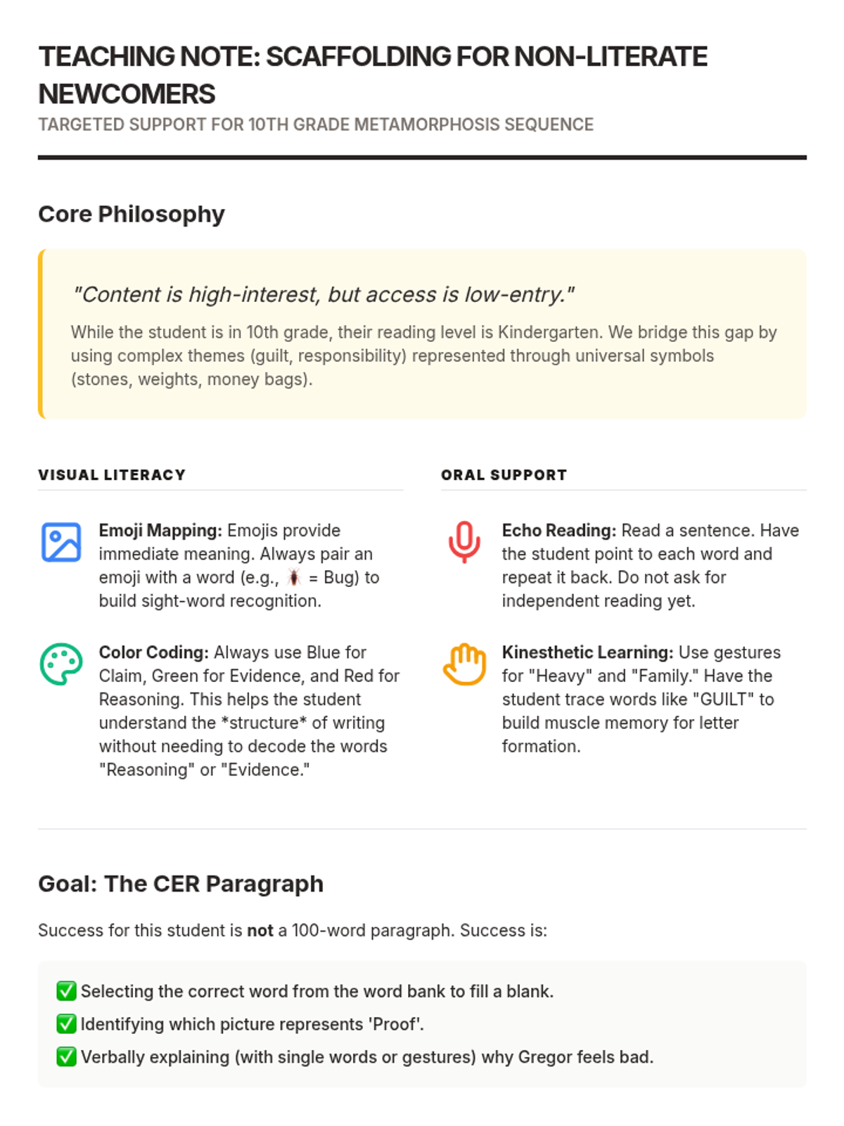 A comprehensive set of quick-reference strategies and monitoring tools for supporting students with low processing speed and oral language challenges in general education and small group settings.