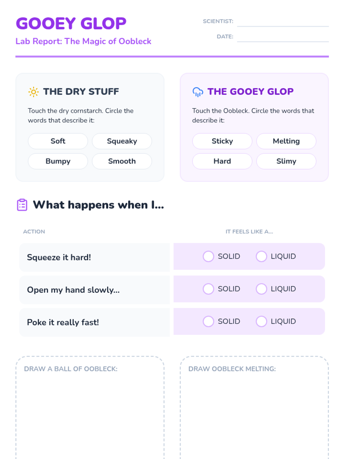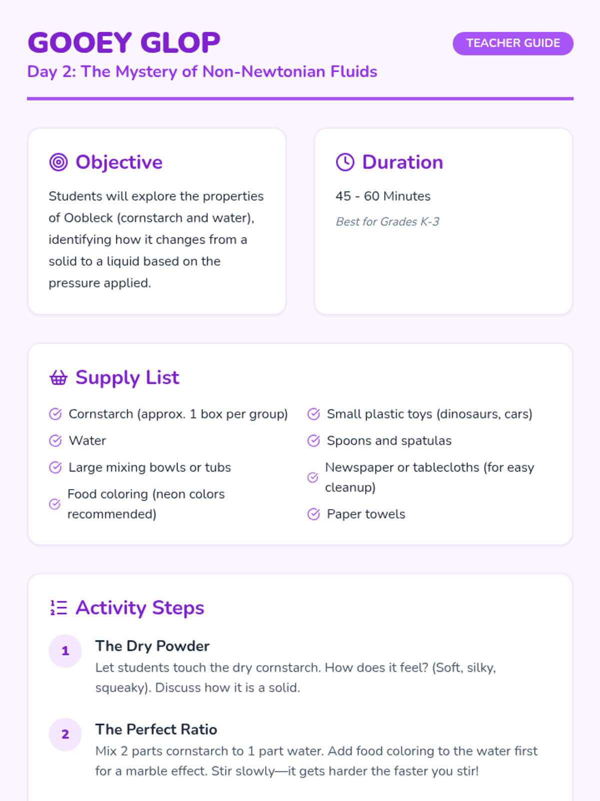 A deep dive into non-Newtonian fluids as students mix cornstarch and water to create oobleck, exploring how it changes from solid to liquid.