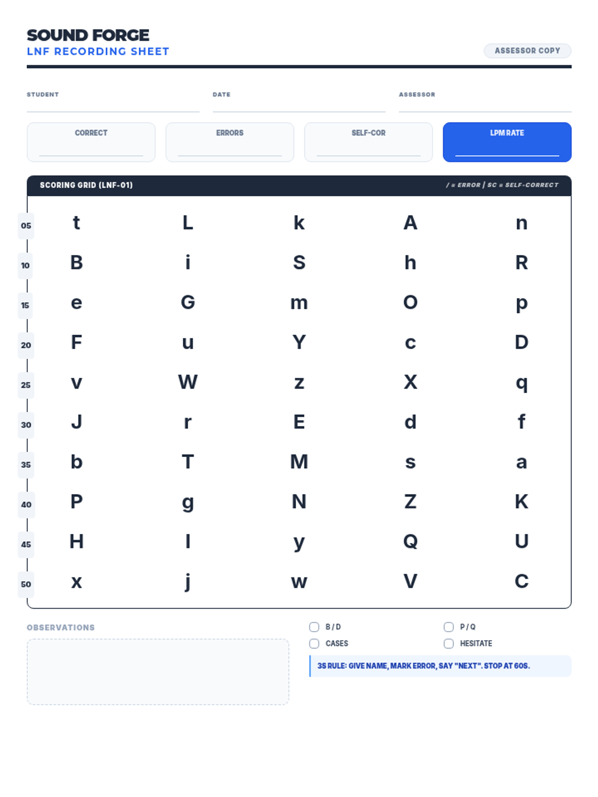 Practical activities and instructional materials for 40 weeks of intervention, including Elkonin boxes and nonsense word flashcards.