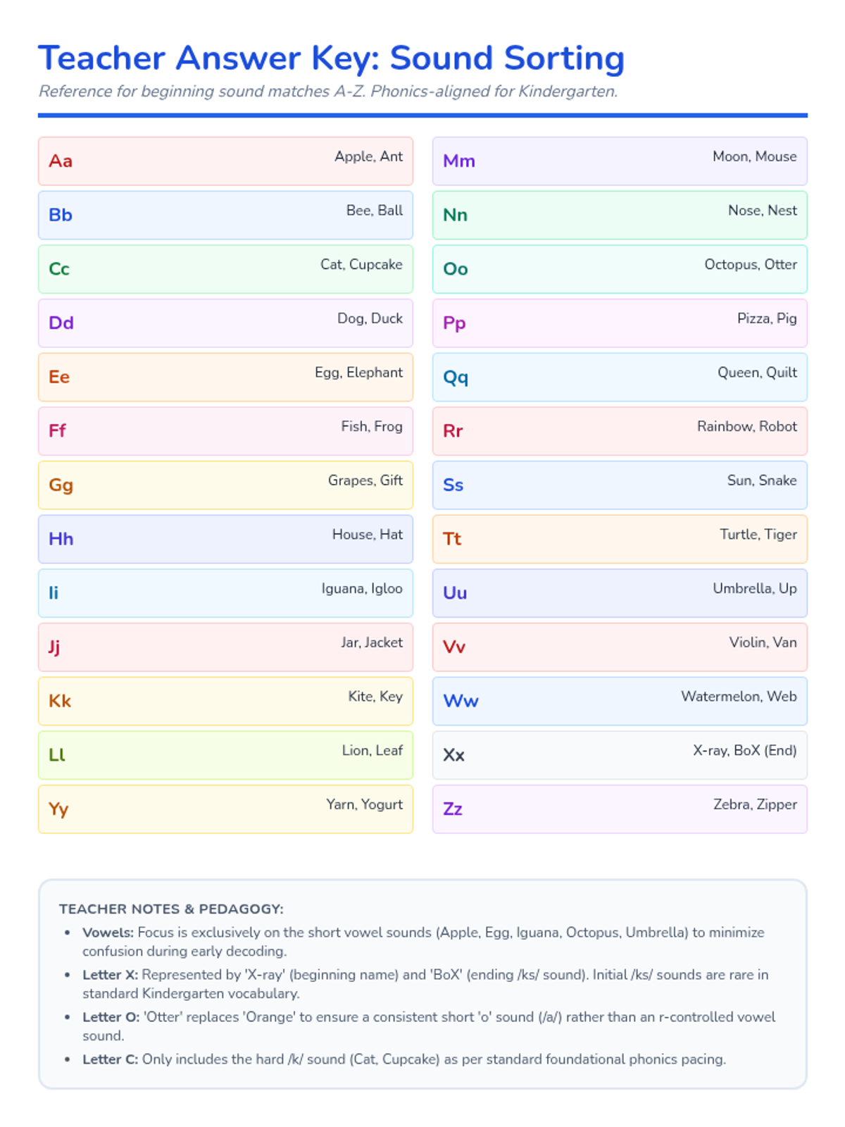 A foundational phonics lesson focusing on identifying beginning sounds for all 26 letters of the alphabet, specifically designed with visuals to support Multilingual Learners.