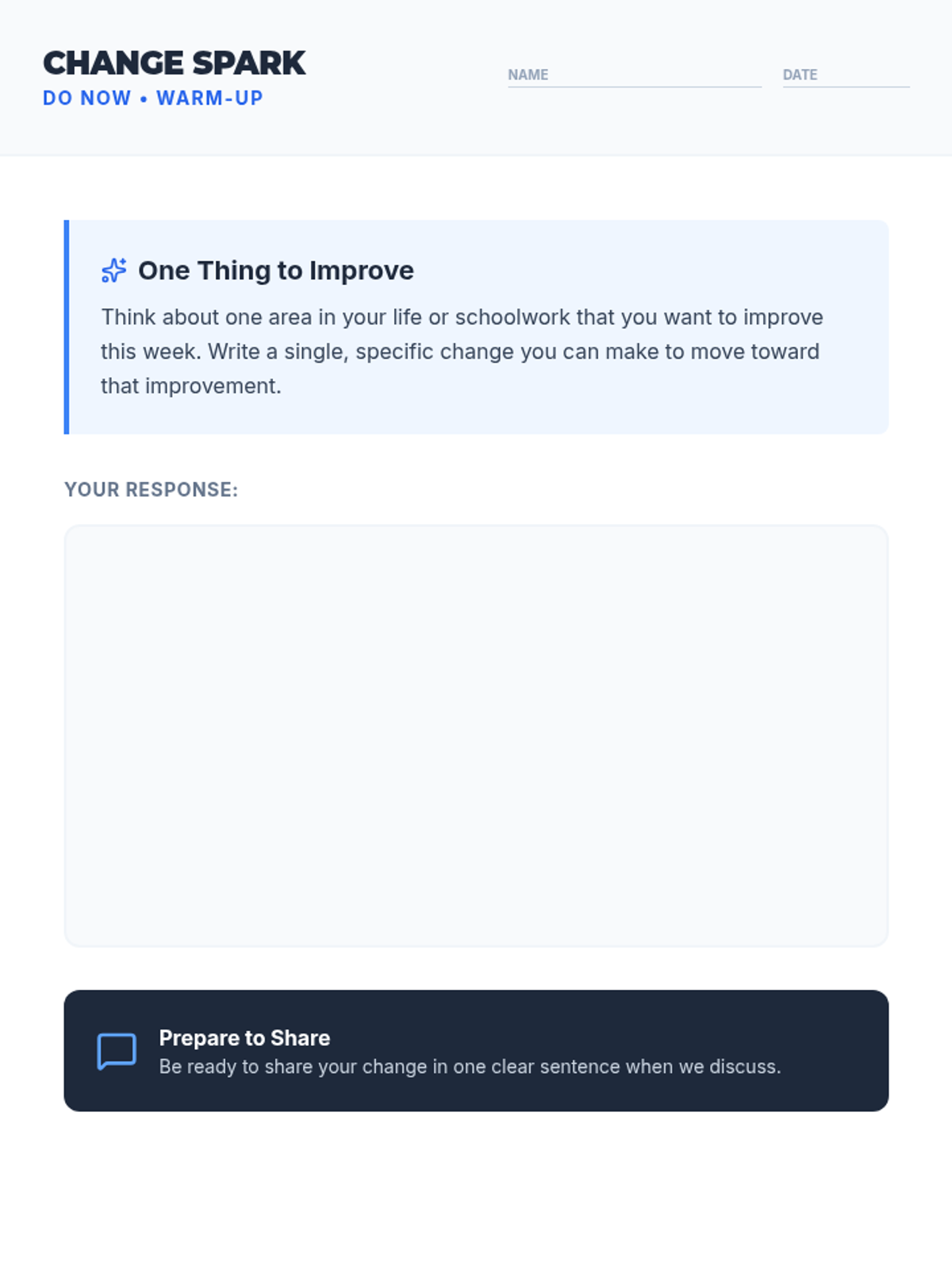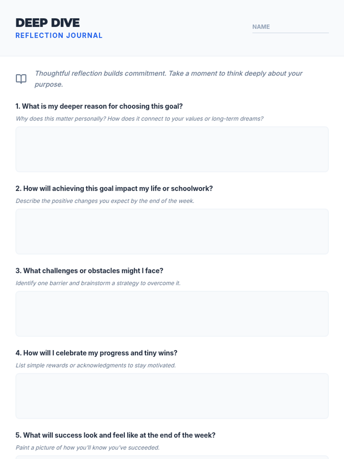 Focuses on the second 'P' (Purpose), guiding students to connect their daily actions to their deeper 'Why' to sustain effort when things get tough.