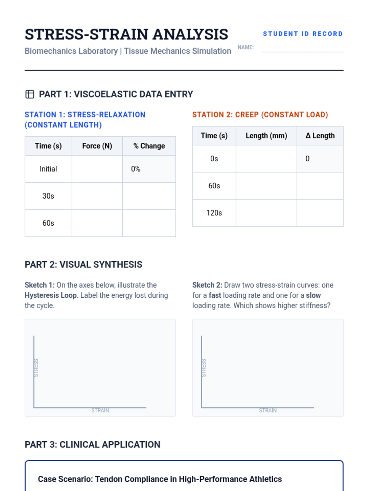 Analyze the viscoelastic properties of connective tissue, including stress-strain curves, hysteresis, and the effects of temperature and loading rates.