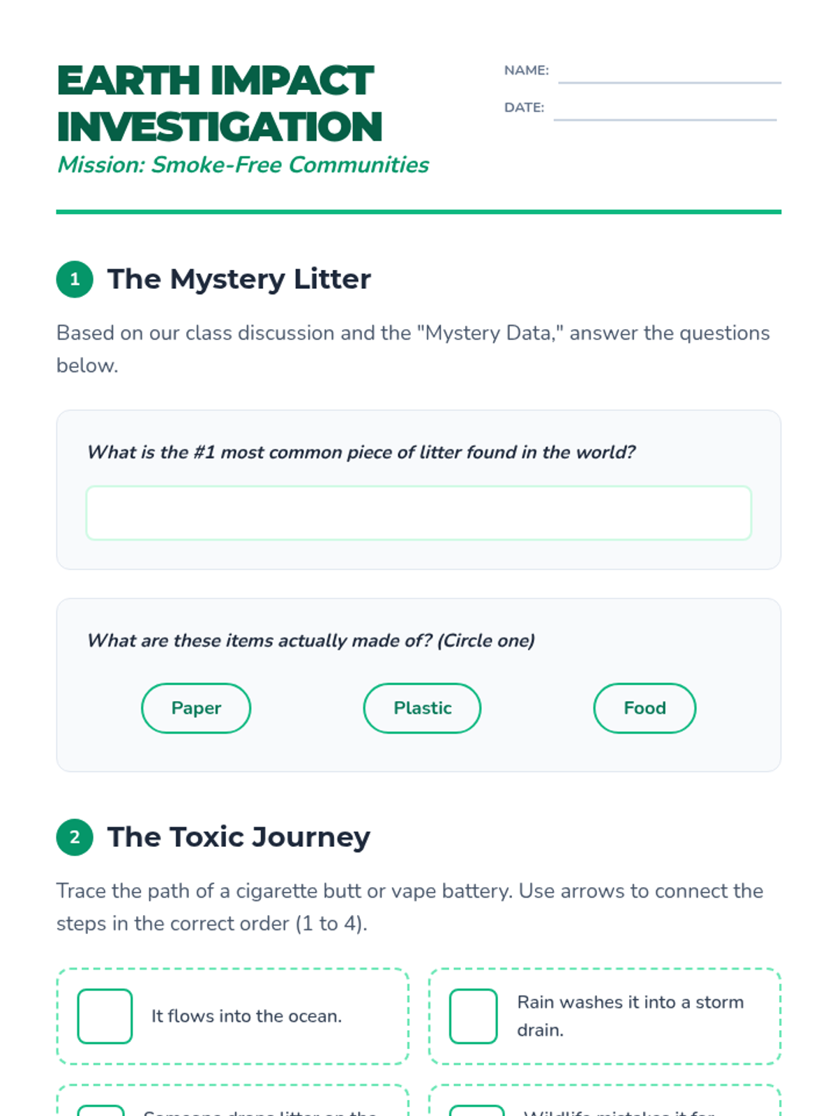 Students investigate how cigarette butts and vape waste damage local ecosystems and wildlife, shifting the focus of tobacco awareness to environmental stewardship.