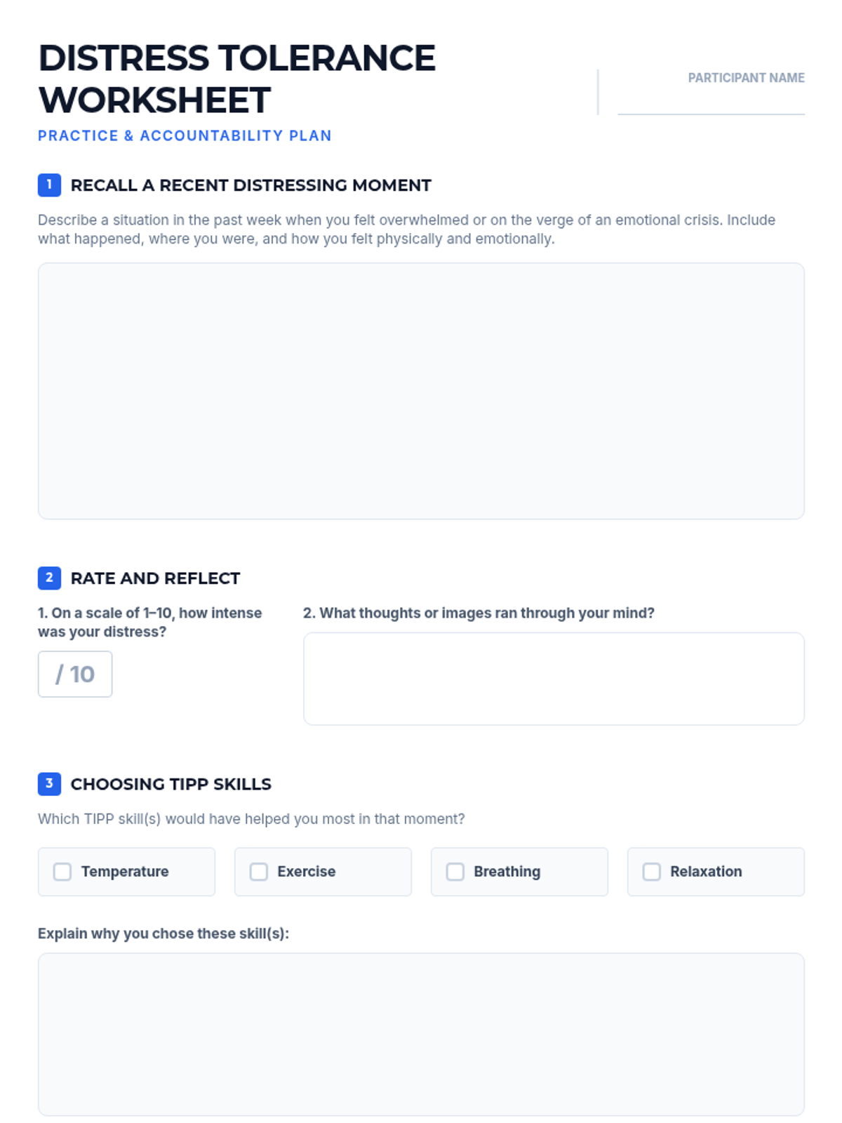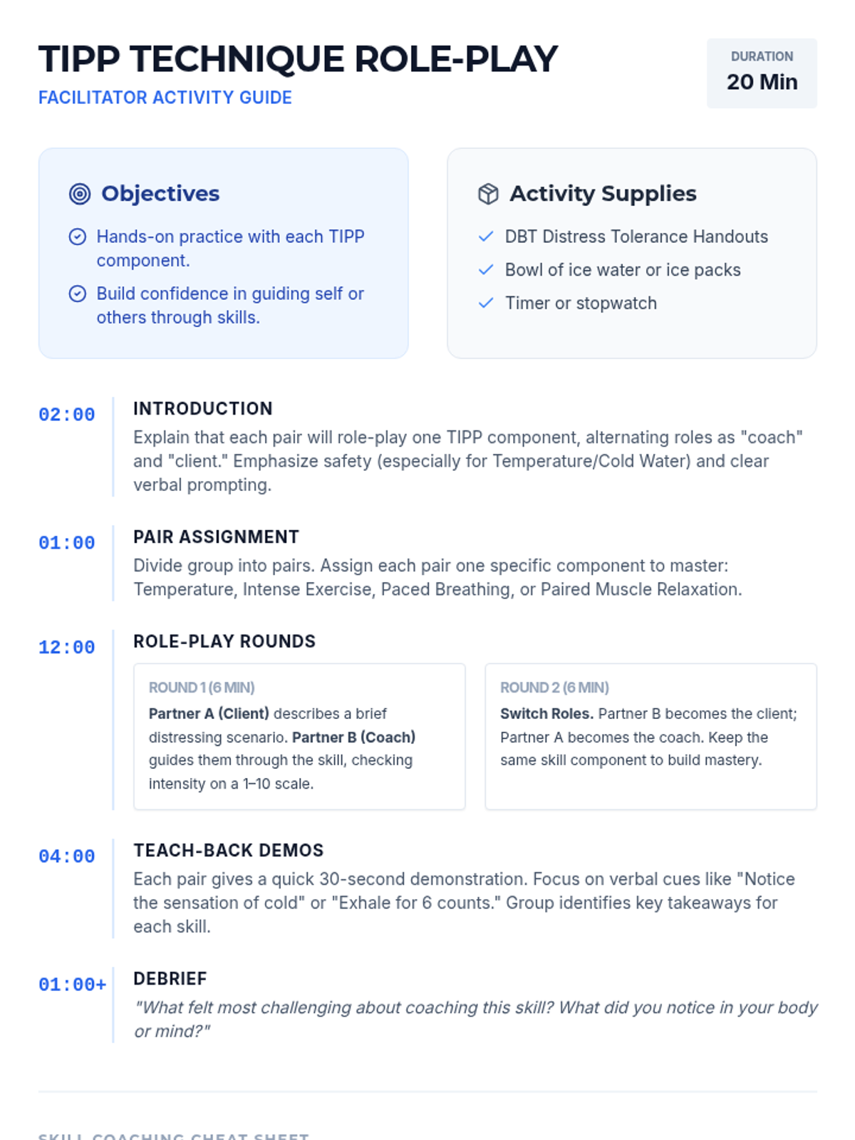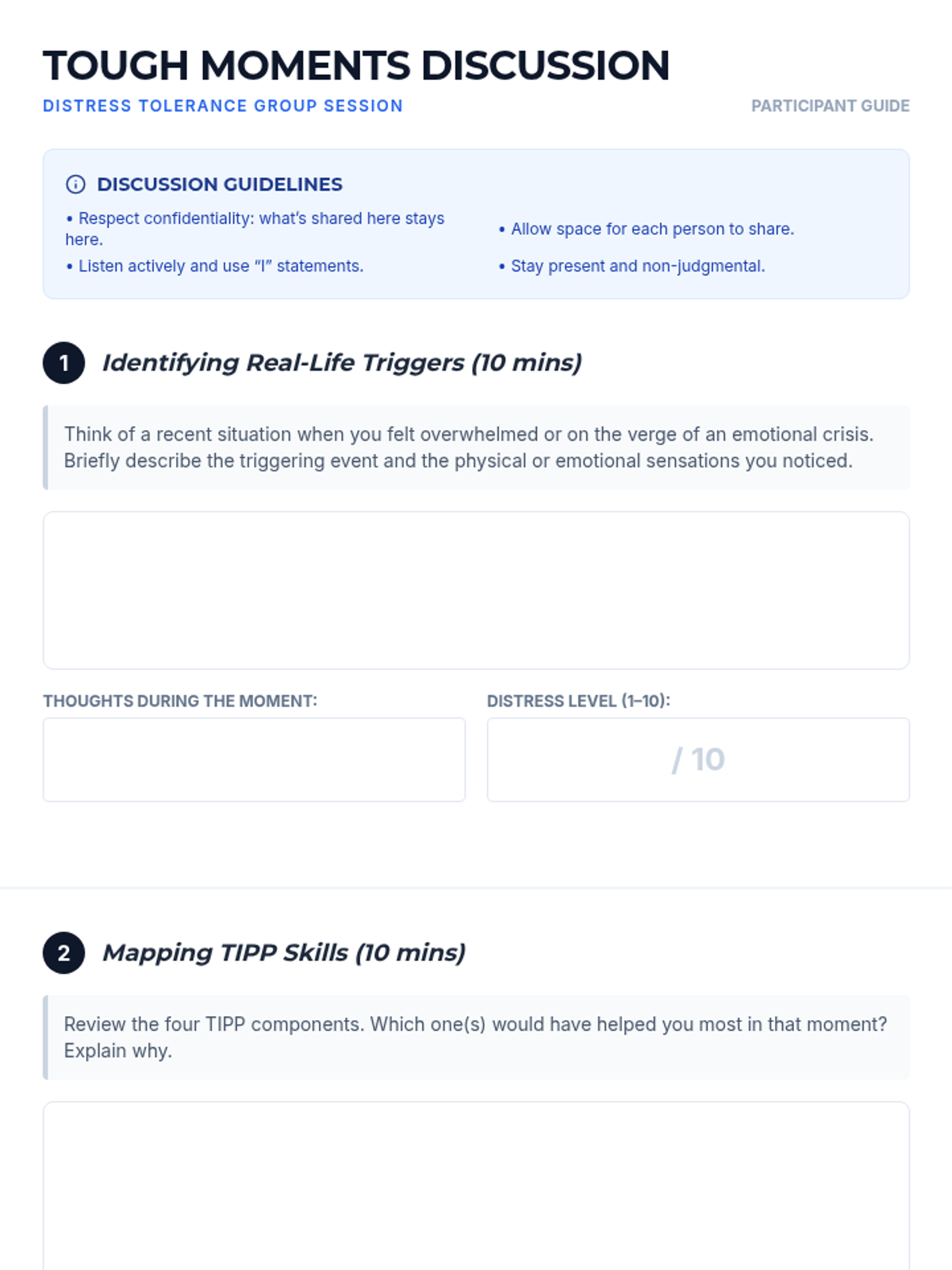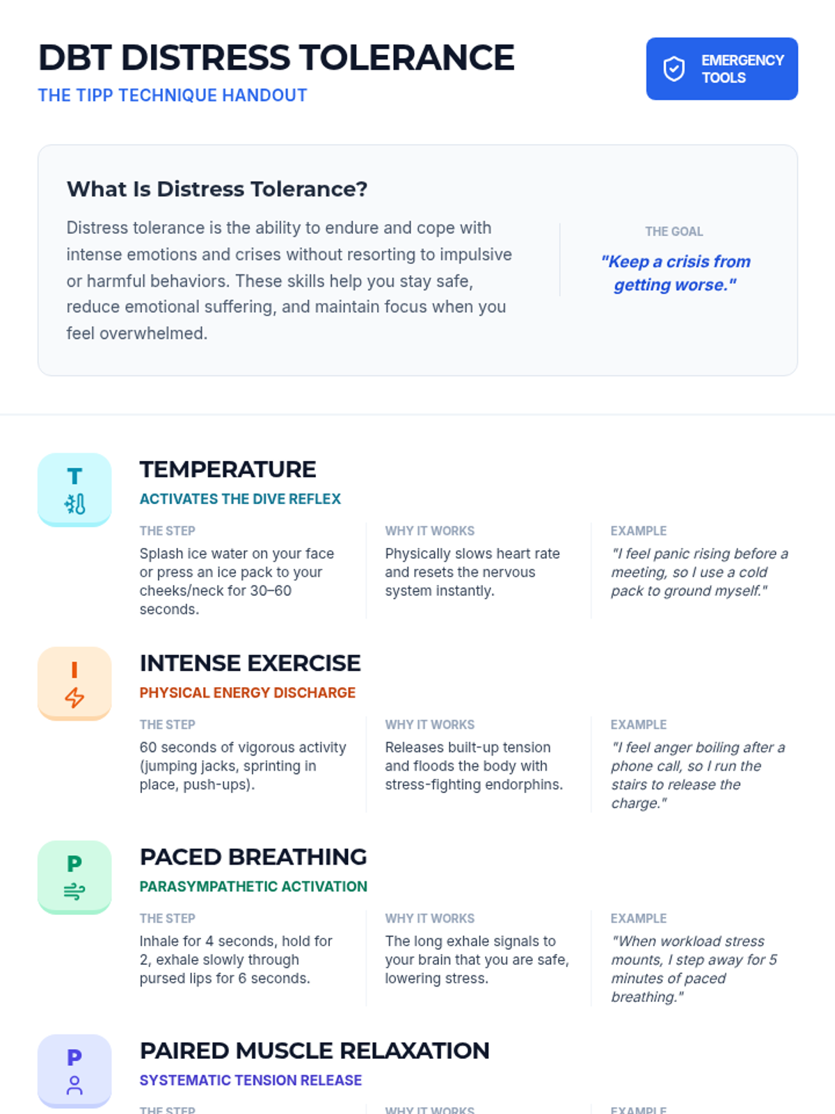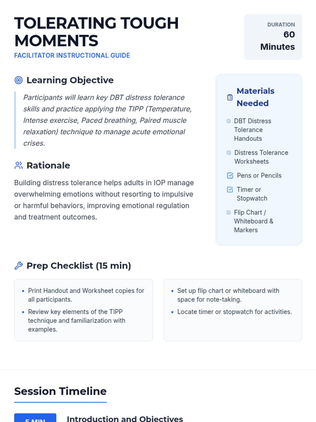 A 60-minute adult IOP group session focused on DBT Distress Tolerance skills, specifically the TIPP technique, to help participants manage intense emotions and prevent impulsive reactions.
