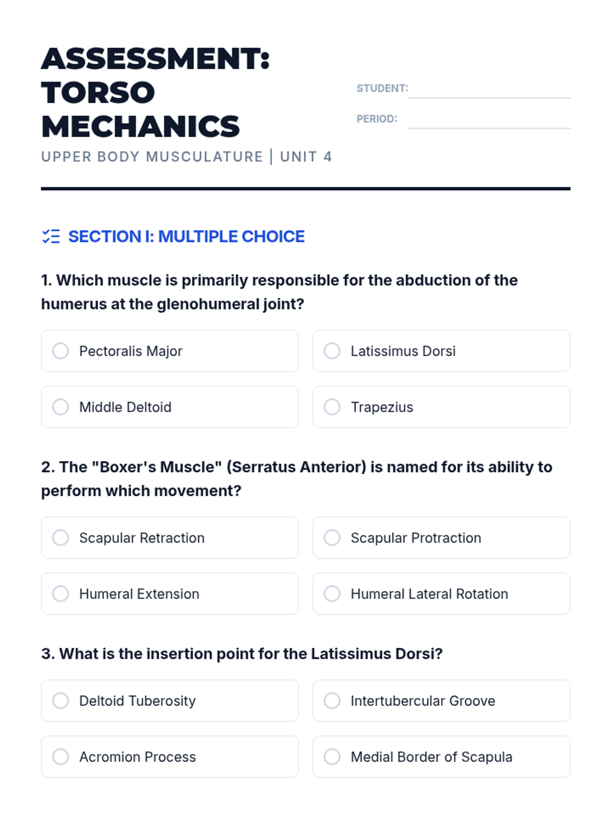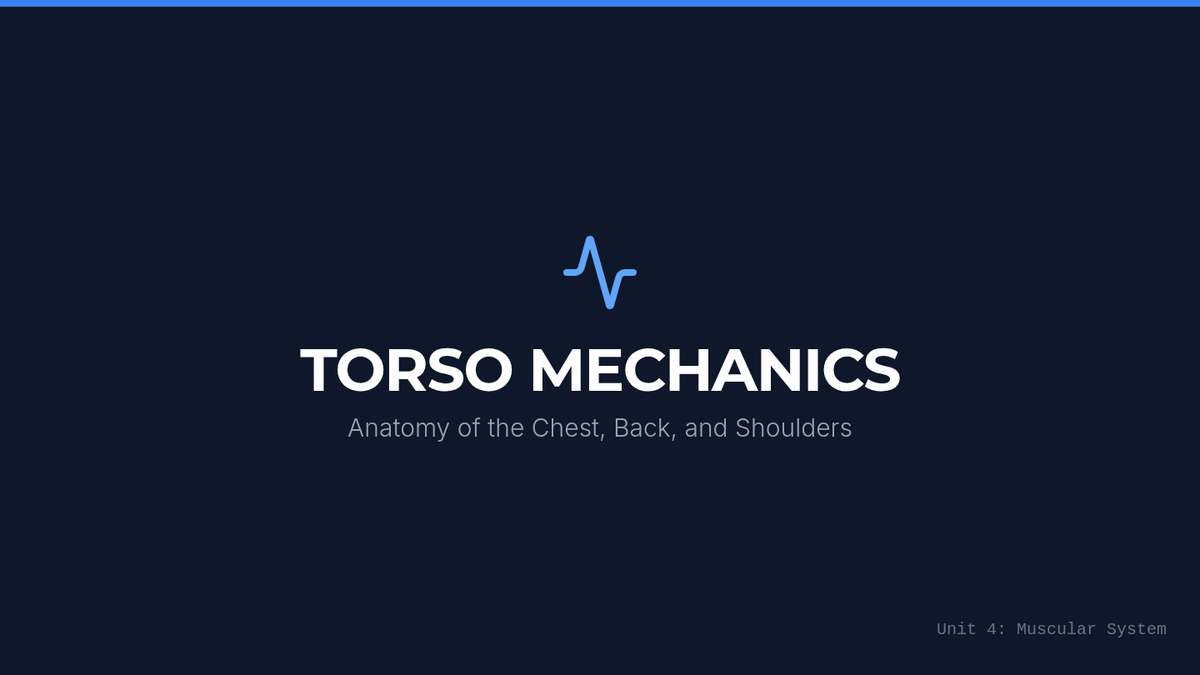 A comprehensive exploration of the muscular system focusing on the pectorals, deltoids, and the complex musculature of the back for 11th and 12th grade anatomy students.