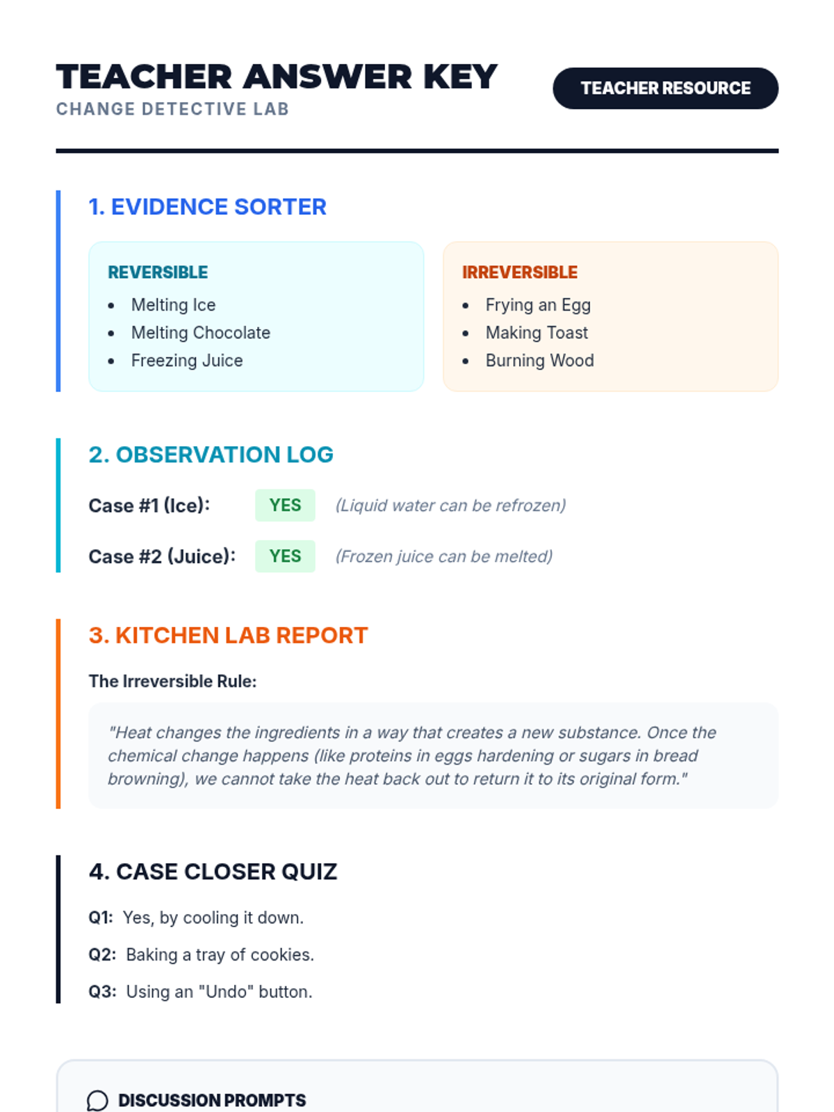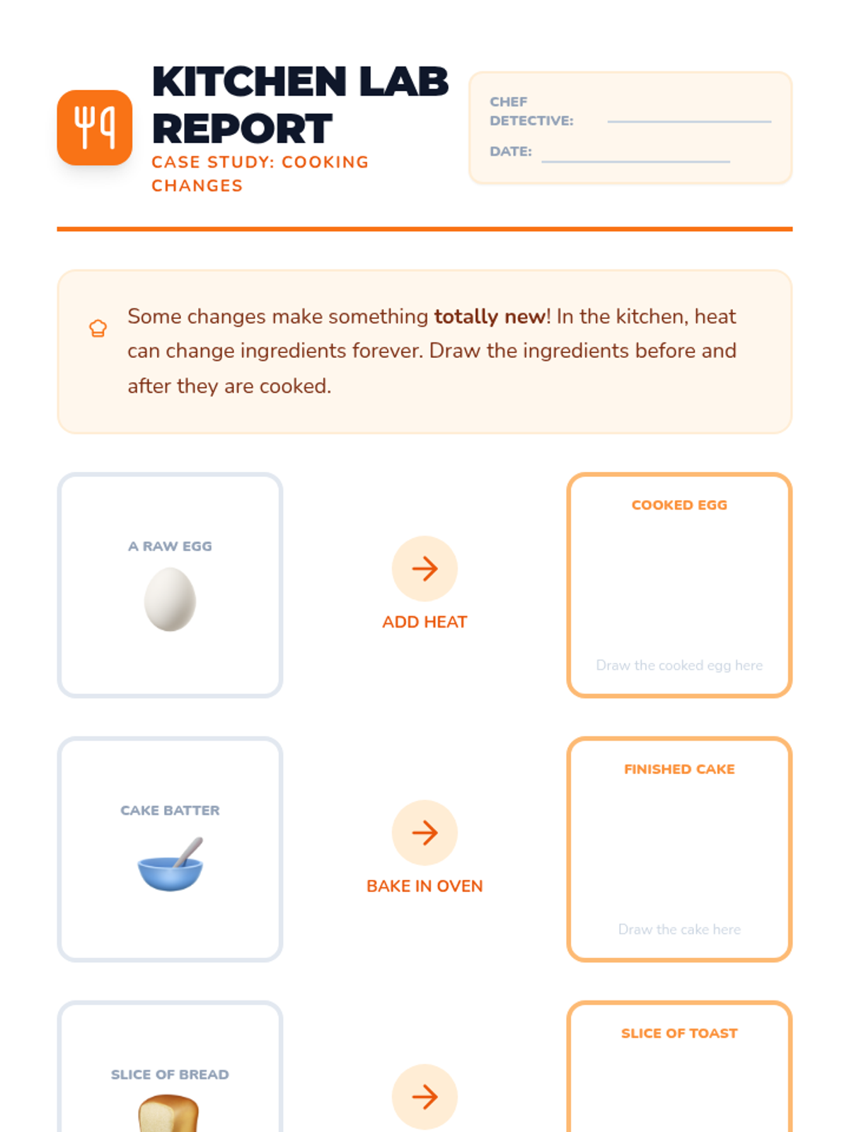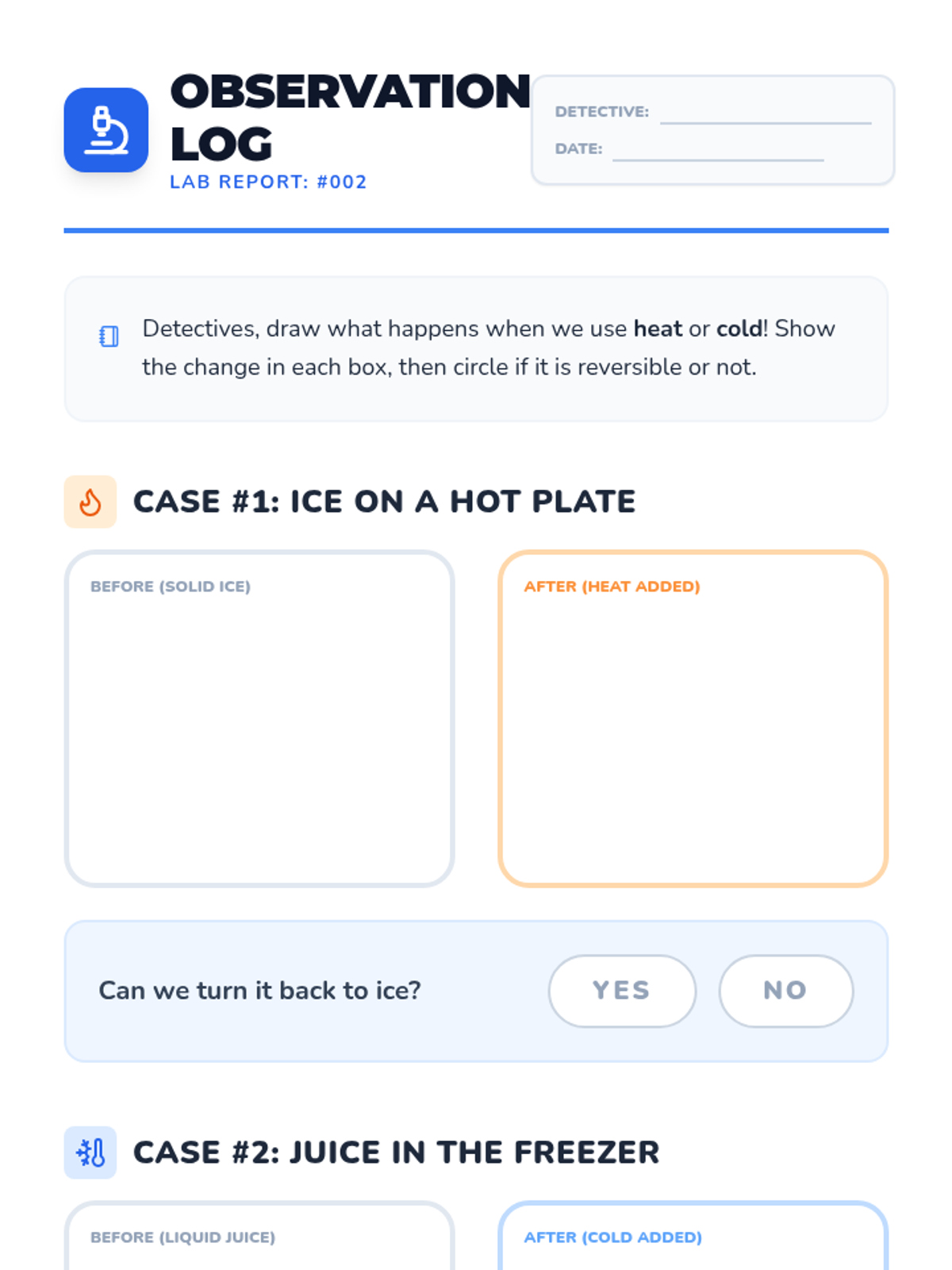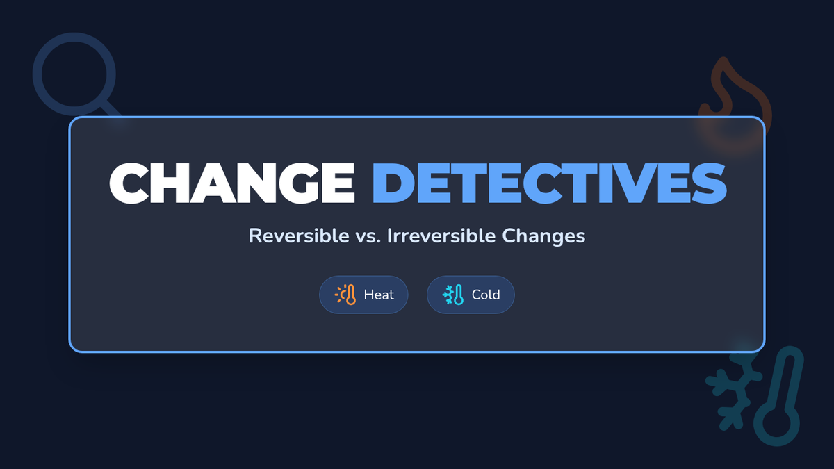 A hands-on exploration of how matter can change through heating and cooling. Students act as 'Change Detectives' to identify which changes can be undone and which are permanent.