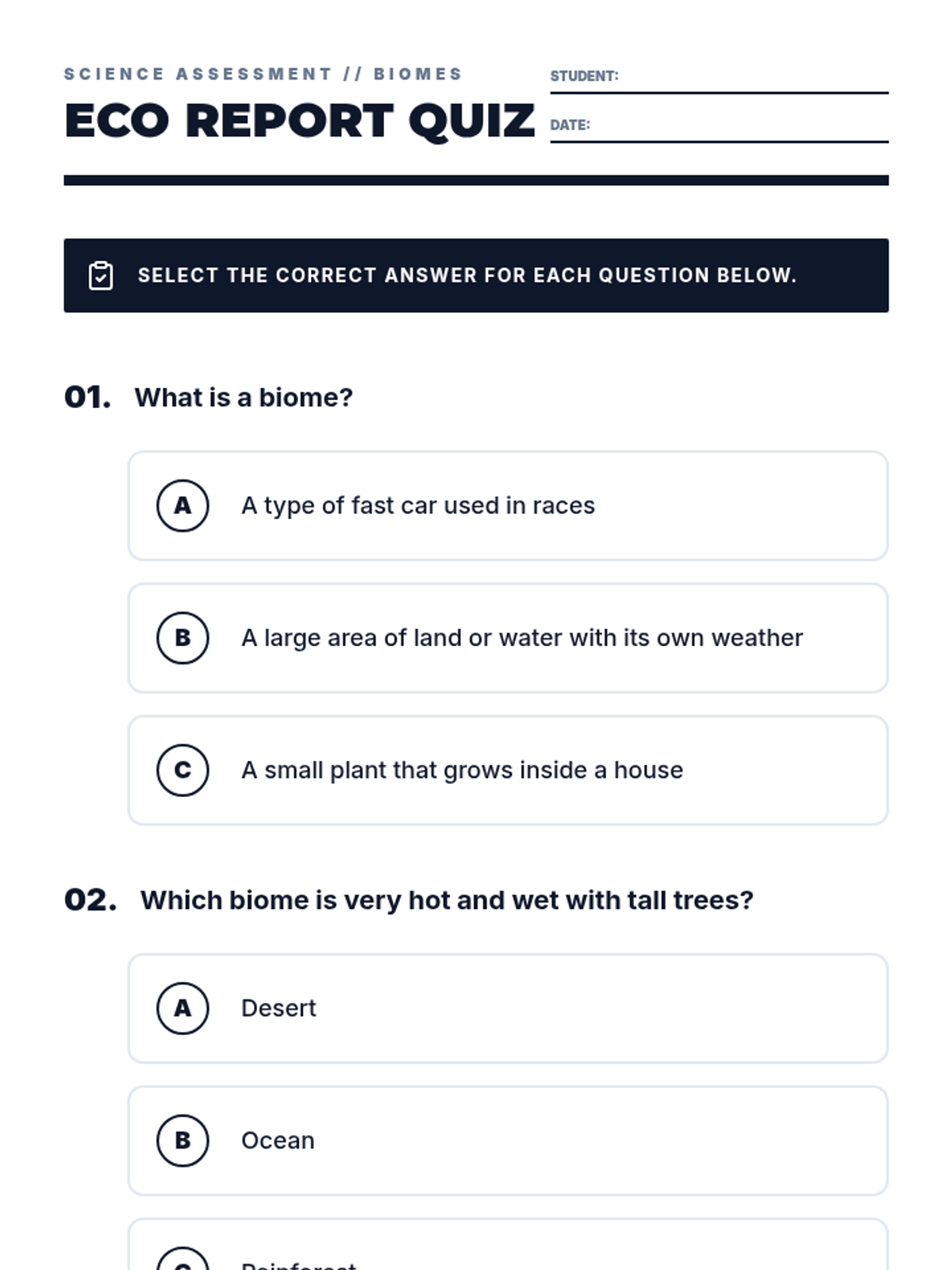 A lesson introducing four major biomes (Rainforest, Desert, Grassland, and Ocean) designed for high-interest, low-readability (Hi-Lo) instruction. This lesson bridges 2nd-grade reading levels with content suitable for a 14-year-old student.