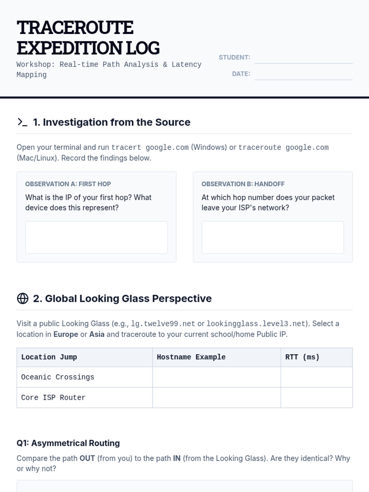 Using diagnostic tools like traceroute to visualize and analyze the physical and logical paths packets take across the globe.