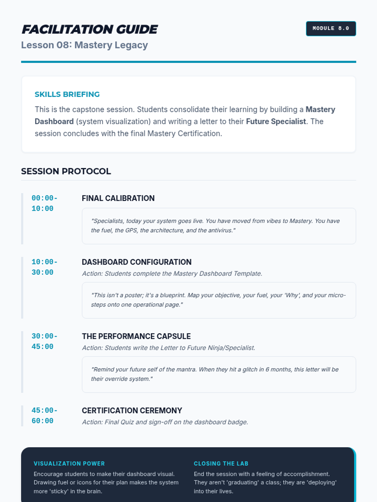 The capstone session where students consolidate their learning, create a vision board, and write a letter to their future professional self.