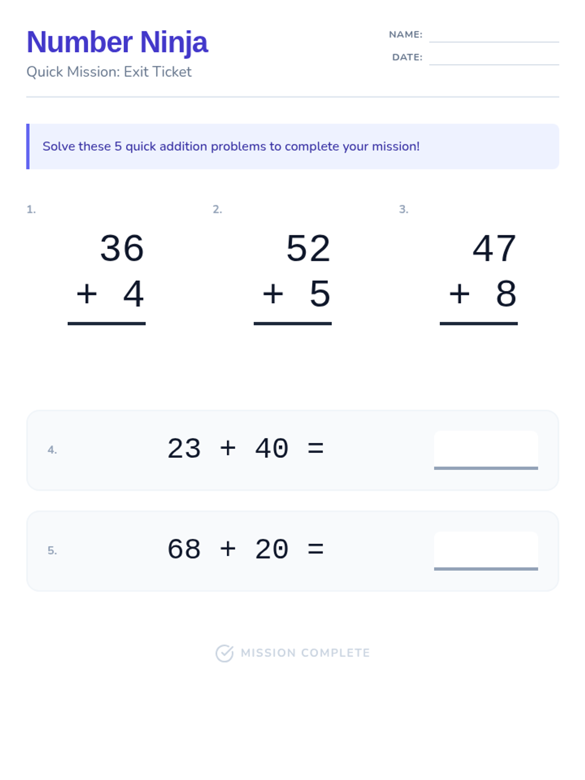 A quick assessment lesson for second-grade students to demonstrate mastery of addition and subtraction within 20 through a lab-themed exit ticket.