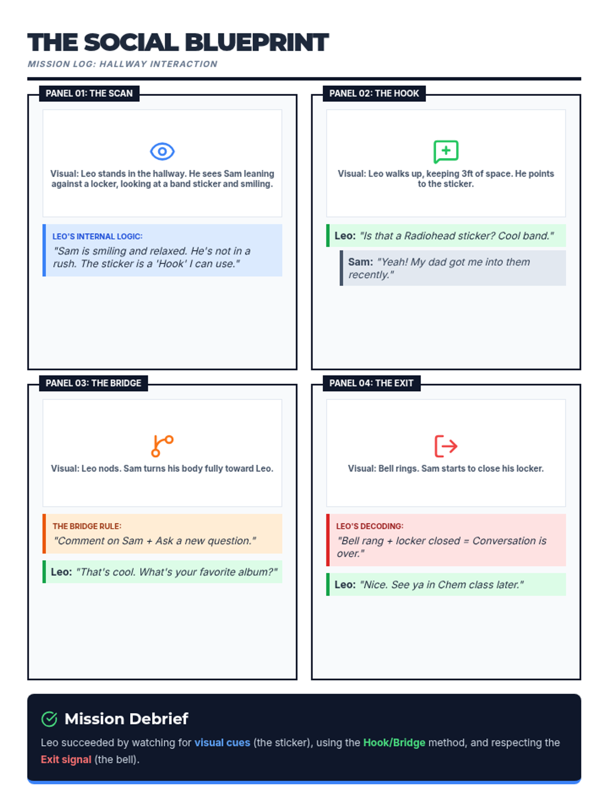 This lesson covers the fundamentals of interpreting non-verbal cues and the step-by-step process of starting and maintaining engaging conversations.