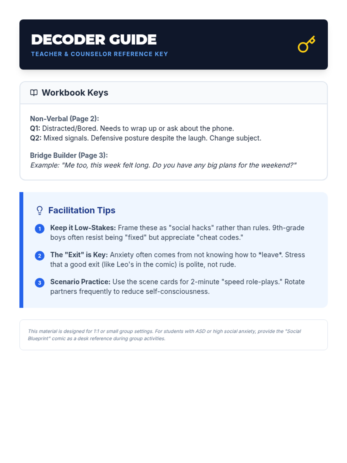 A 30-minute 1-on-1 session designed to help 11th-grade students navigate a new medical diagnosis by focusing on emotional processing, communication strategies with loved ones, and building self-advocacy skills.