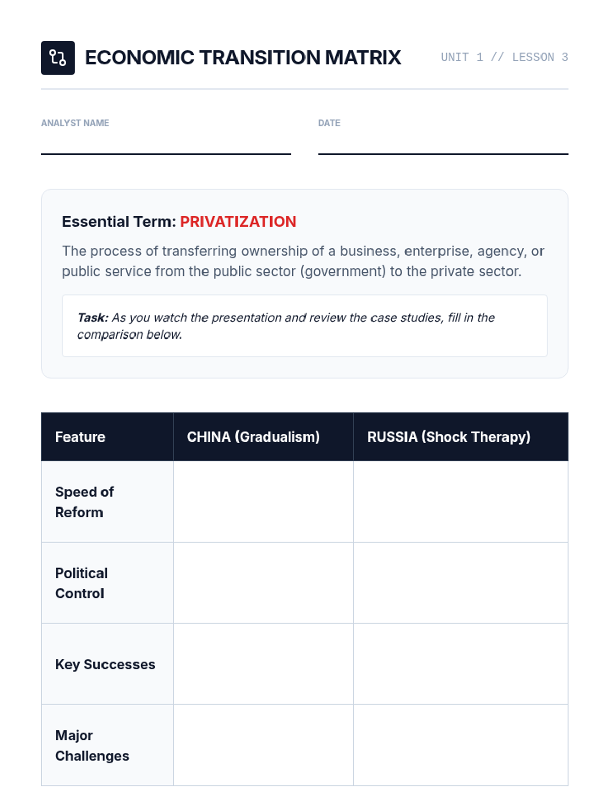 An exploration of how command economies like China and the former Soviet Union transition toward market systems, highlighting the challenges of privatization.
