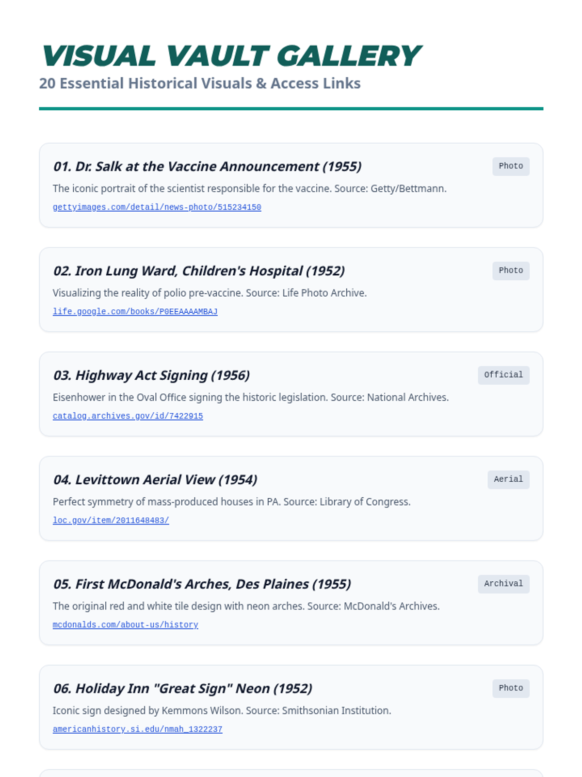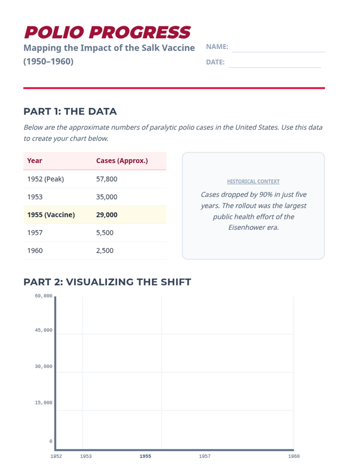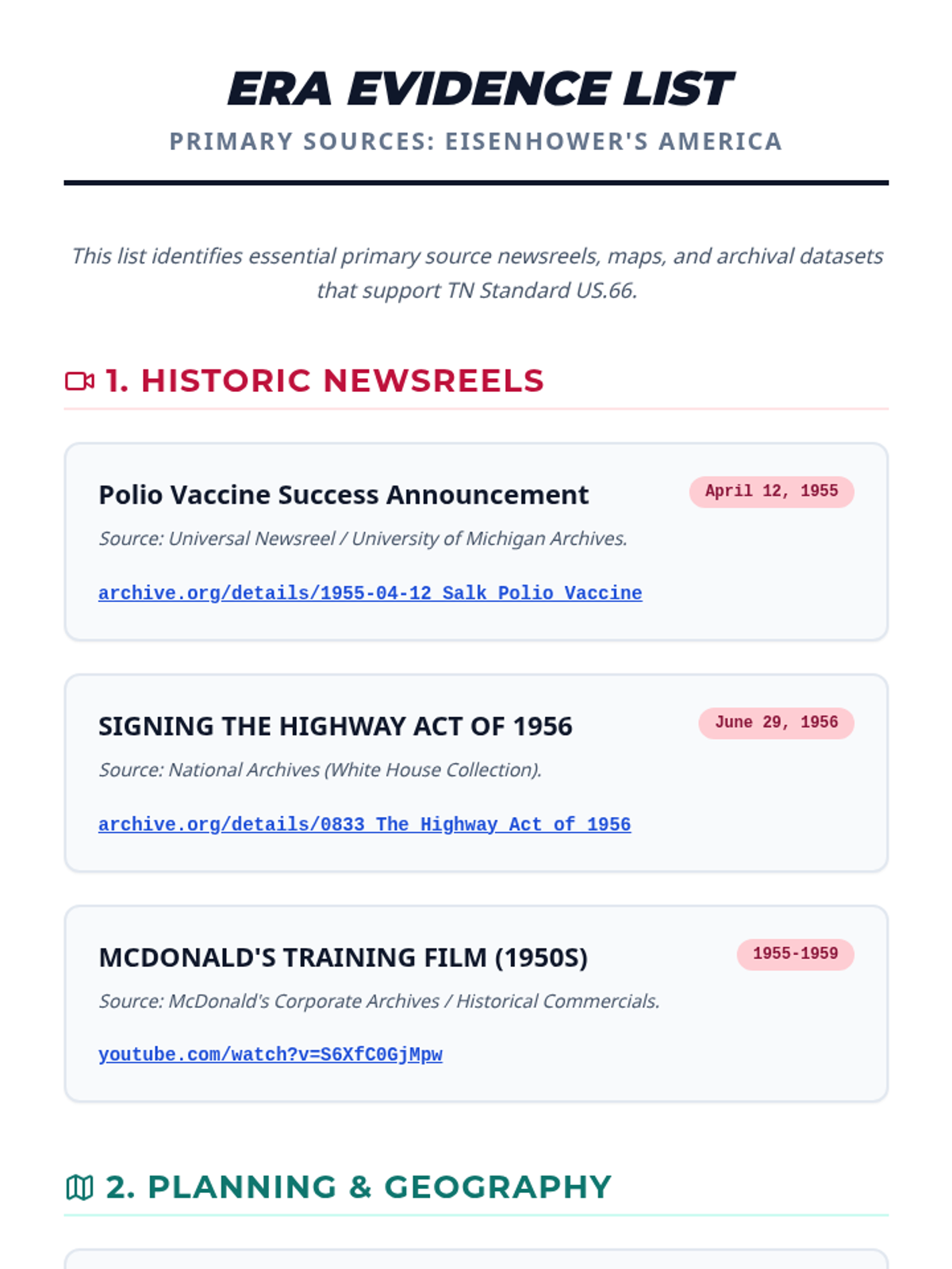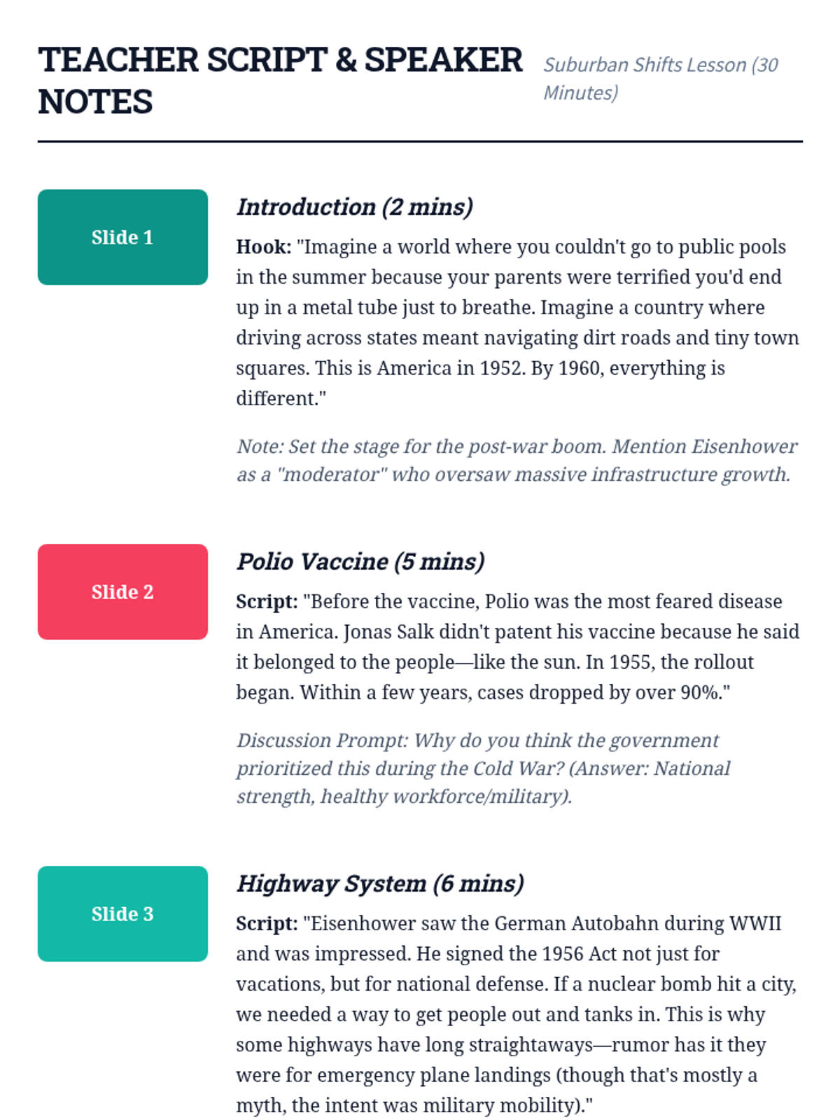 A comprehensive 30-minute lesson on domestic developments during the Eisenhower administration, covering the polio vaccine, interstate highways, suburbia, and the rise of franchising.