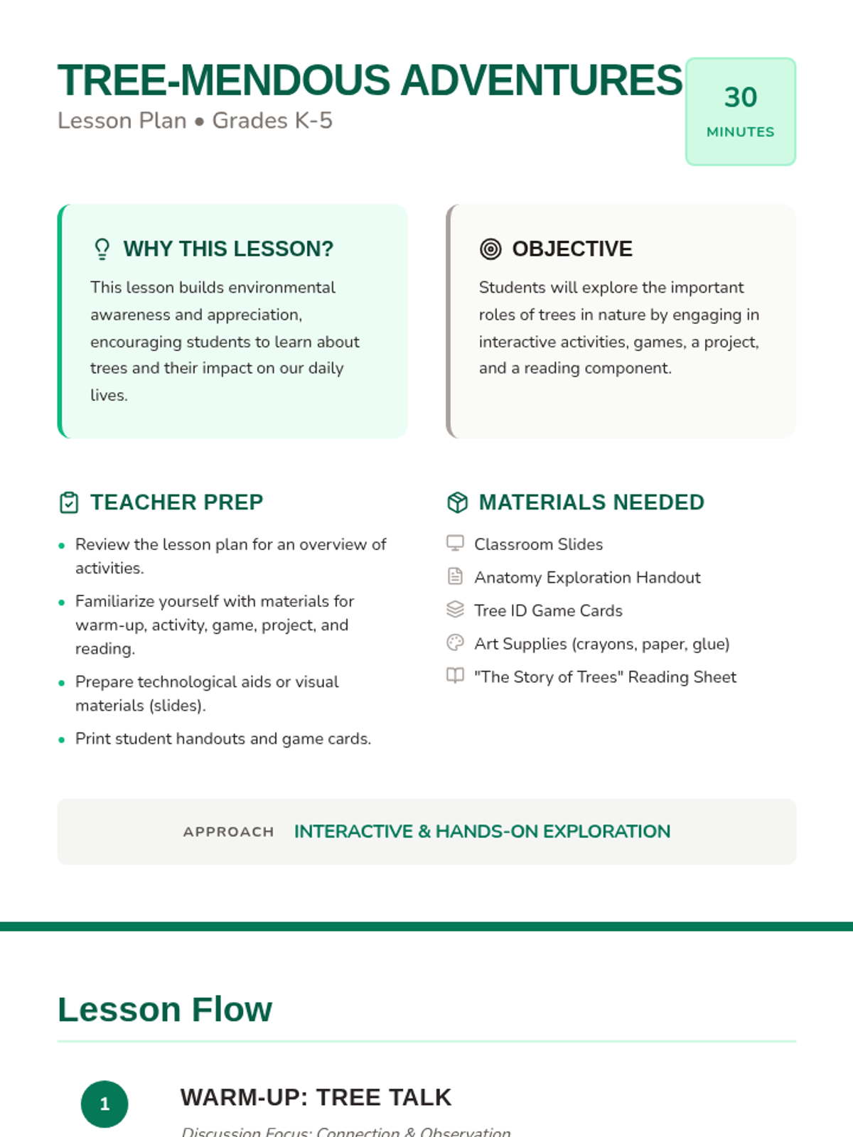A lesson focused on how living things depend on trees for survival, utilizing visual sentence frames to support Kindergarten oral language development.
