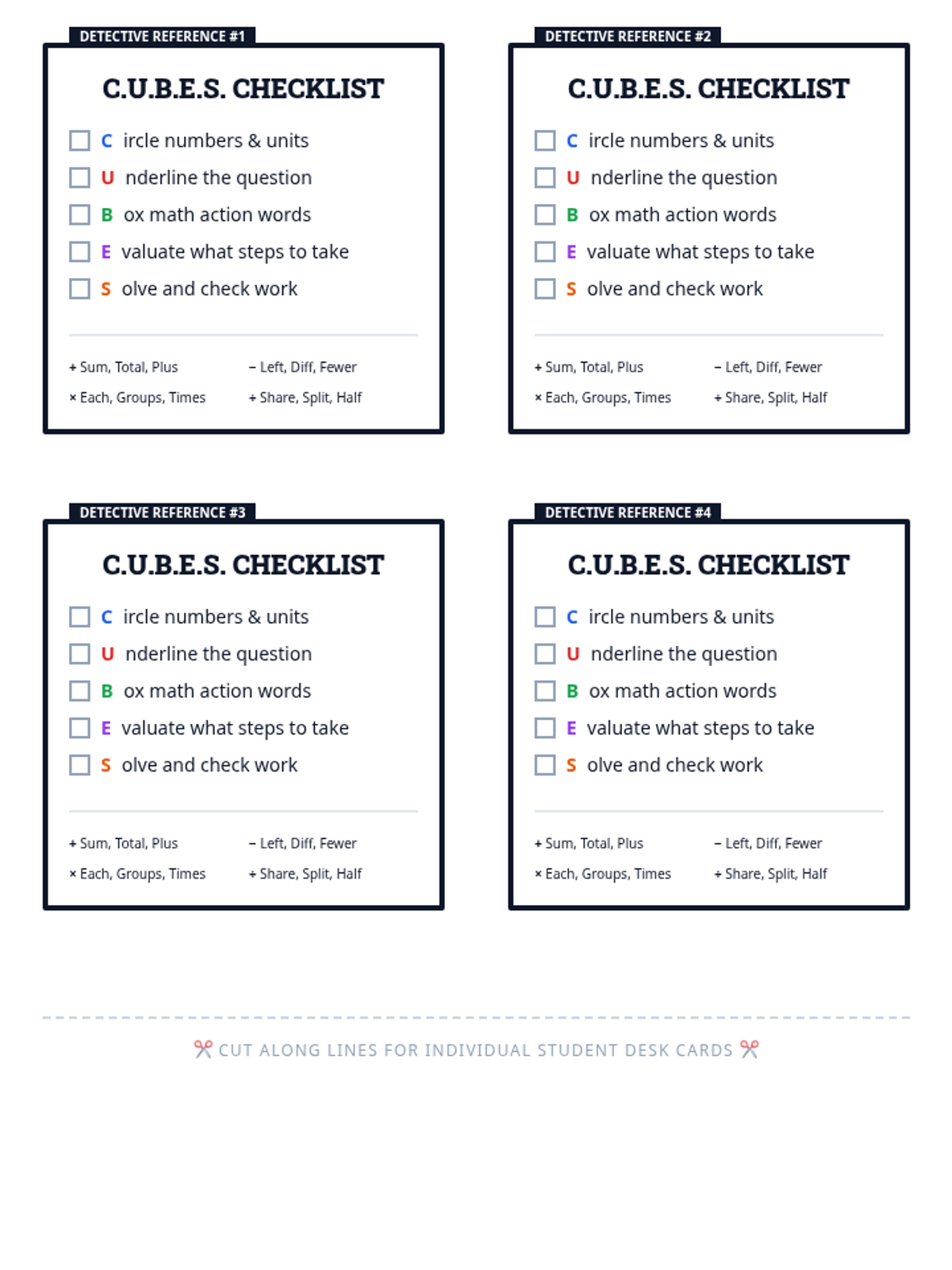 This lesson introduces students to the 'CUBES' strategy and operation-specific keywords to turn complex word problems into solvable equations.