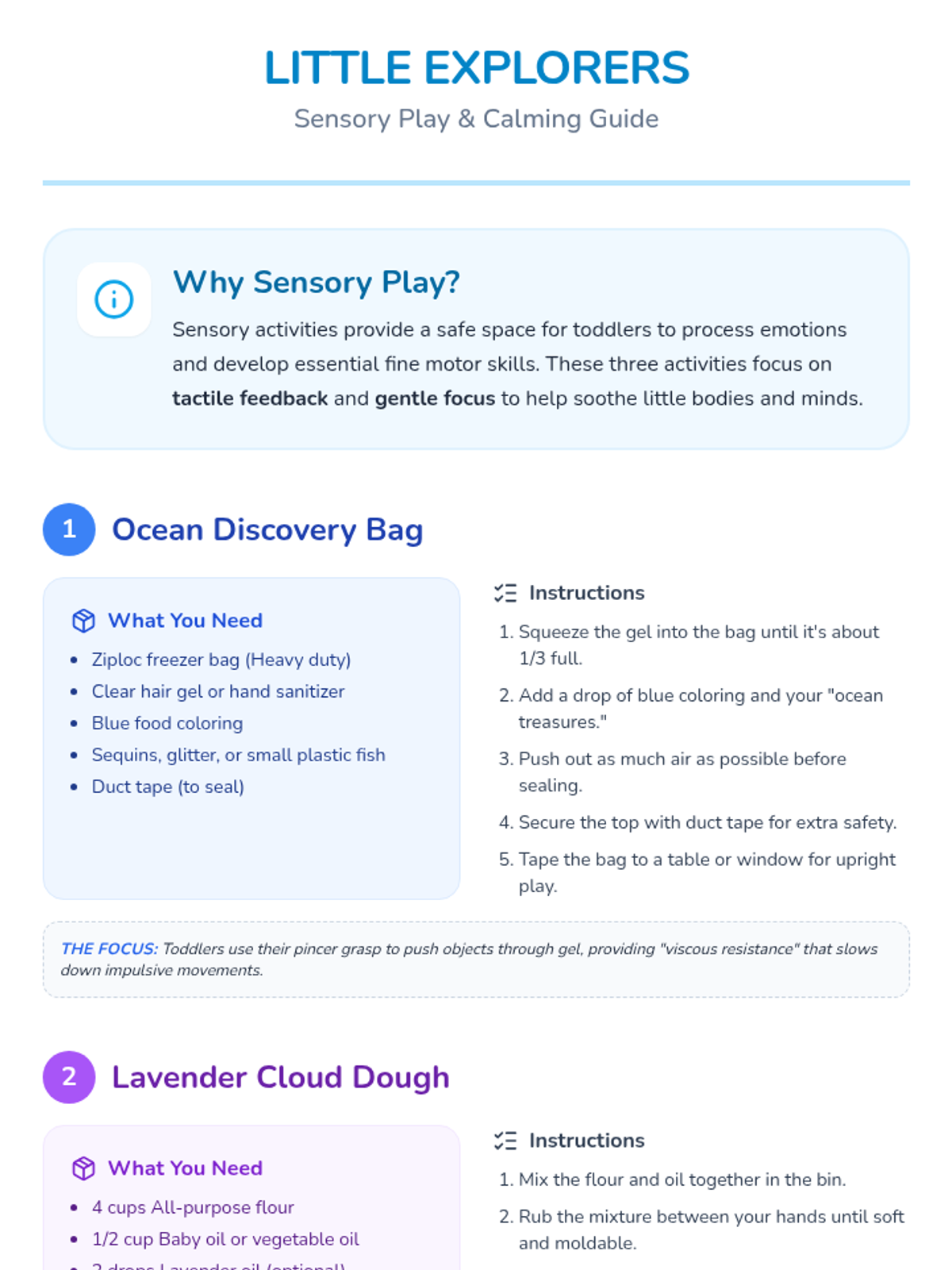 A collection of low-prep, homemade sensory activities designed to enhance fine motor skills and promote emotional regulation in toddlers through tactile exploration.