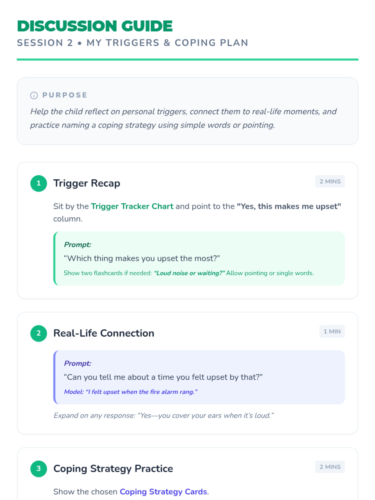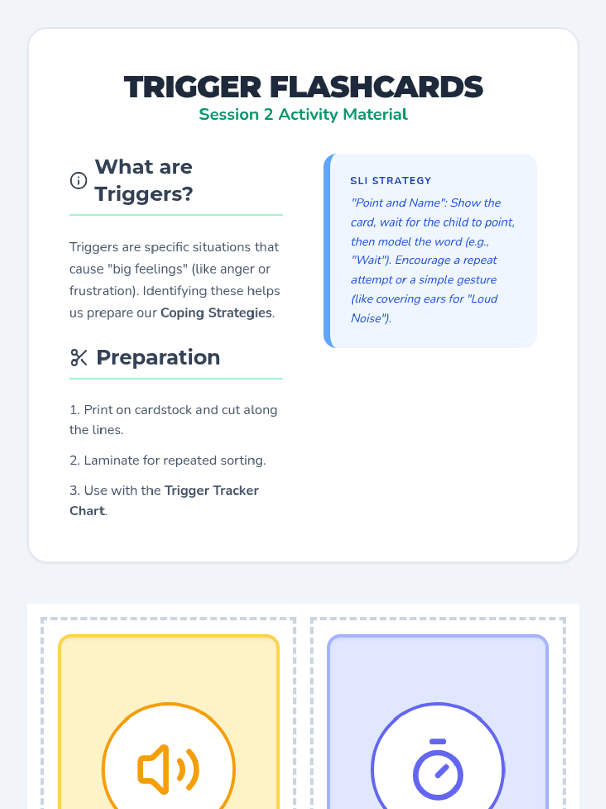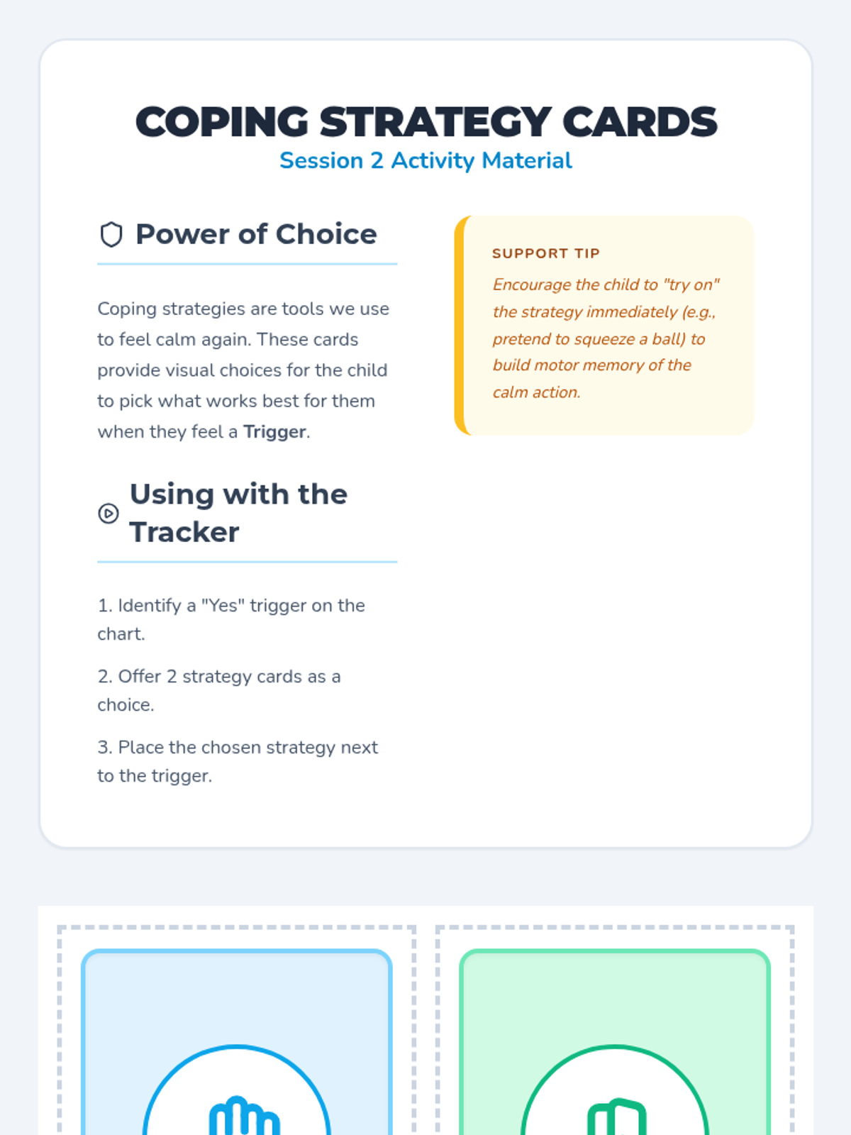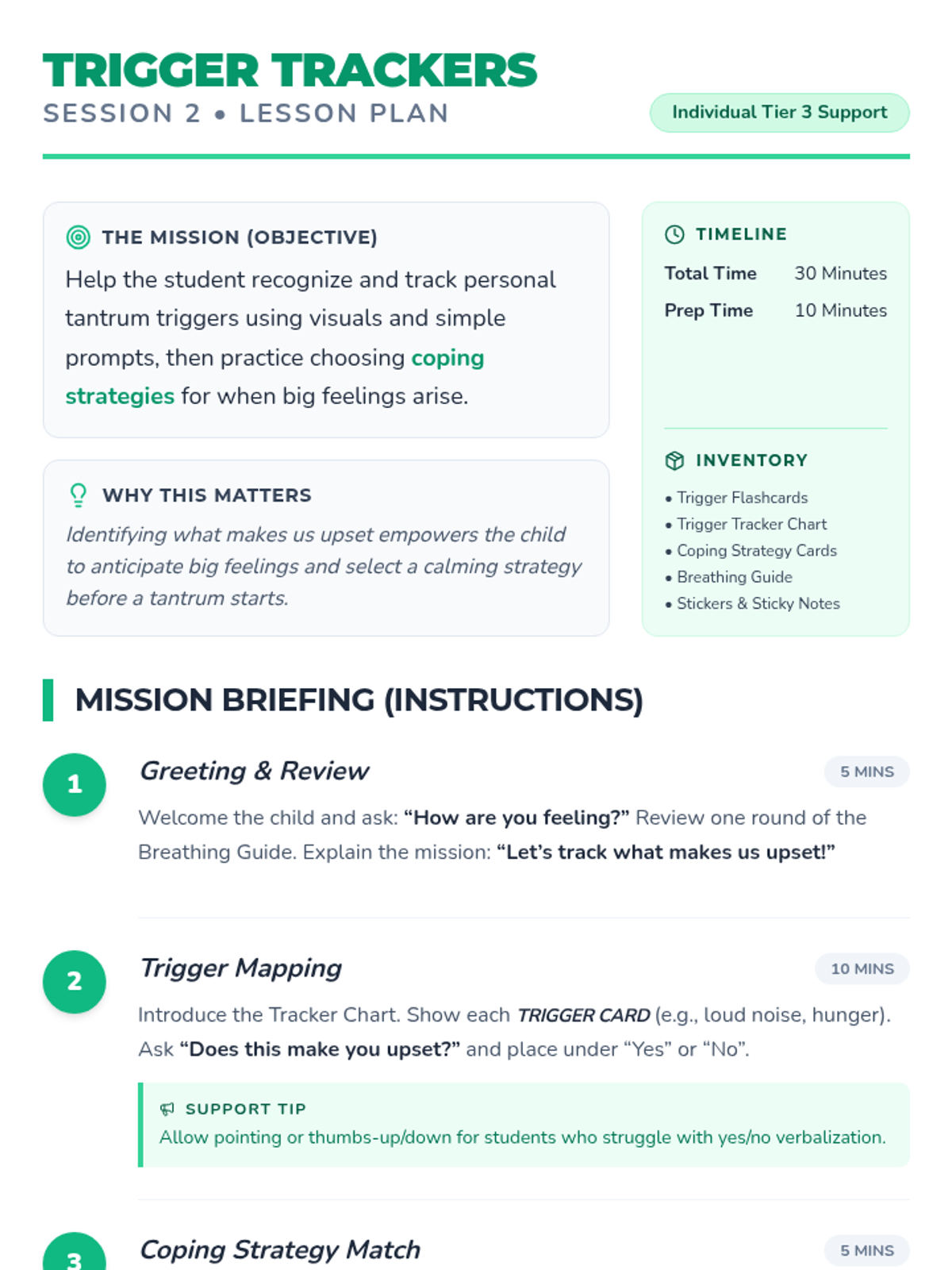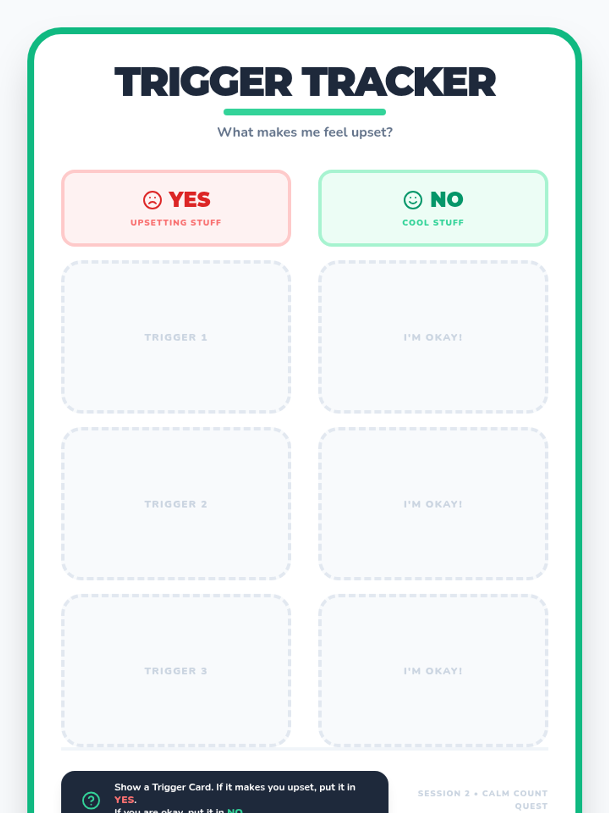 Students identify specific situations that cause big feelings and match them with appropriate coping strategies using a Trigger Tracker Chart.