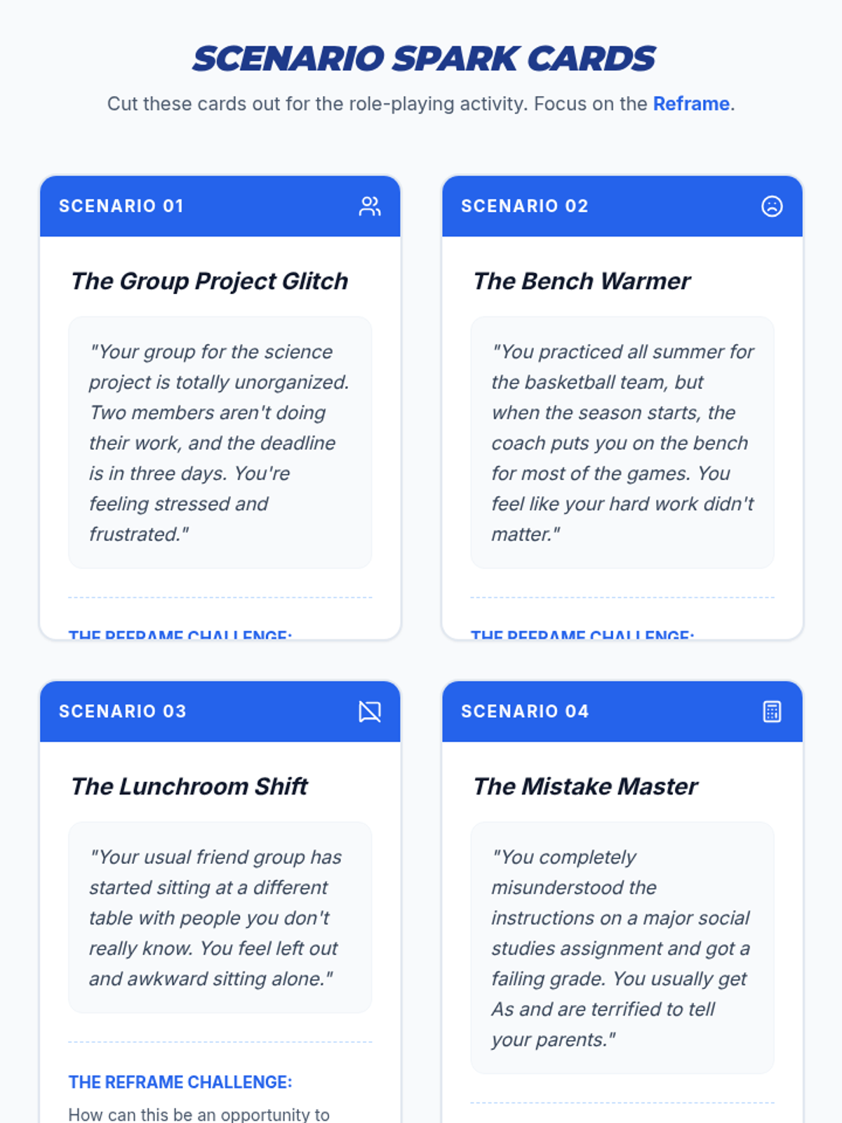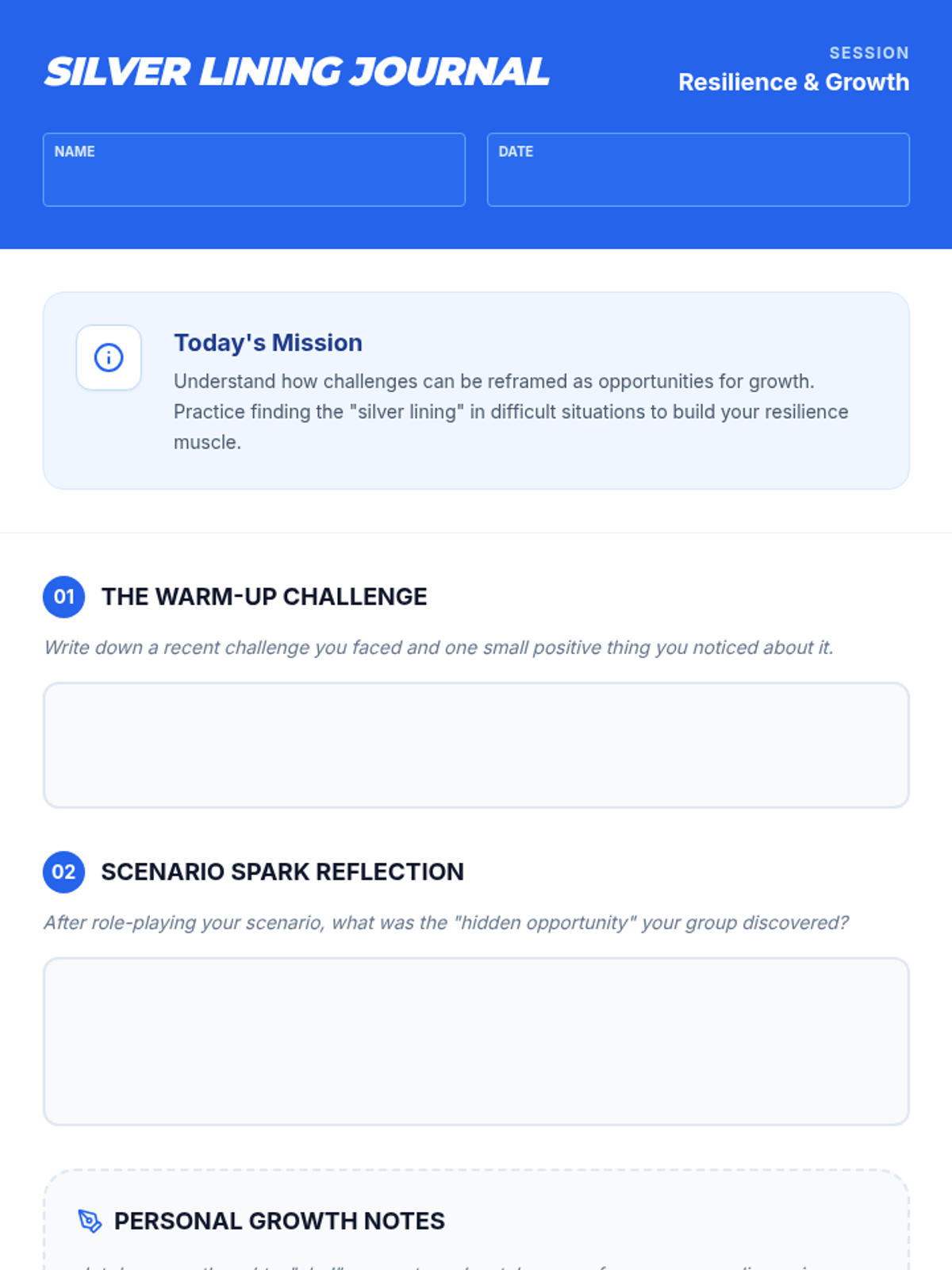 Teaches emotional regulation through the Notice-Name-Breathe method and building a resilience toolkit.