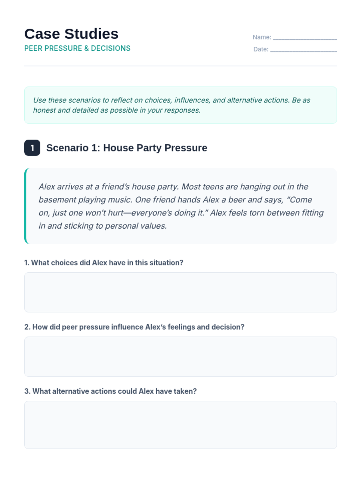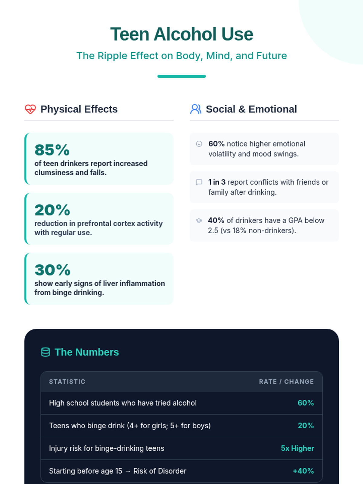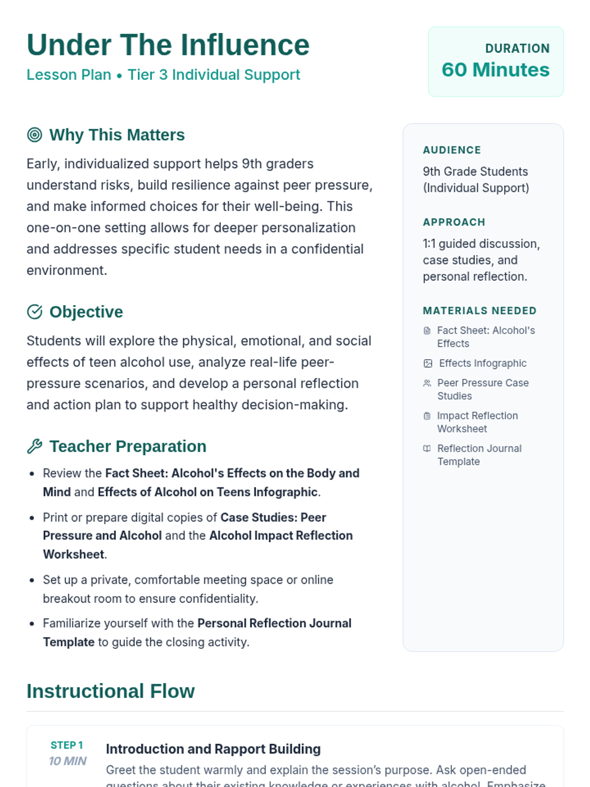 A 60-minute one-on-one session for 9th graders exploring the physical, emotional, and social impacts of alcohol to support healthy decision-making.